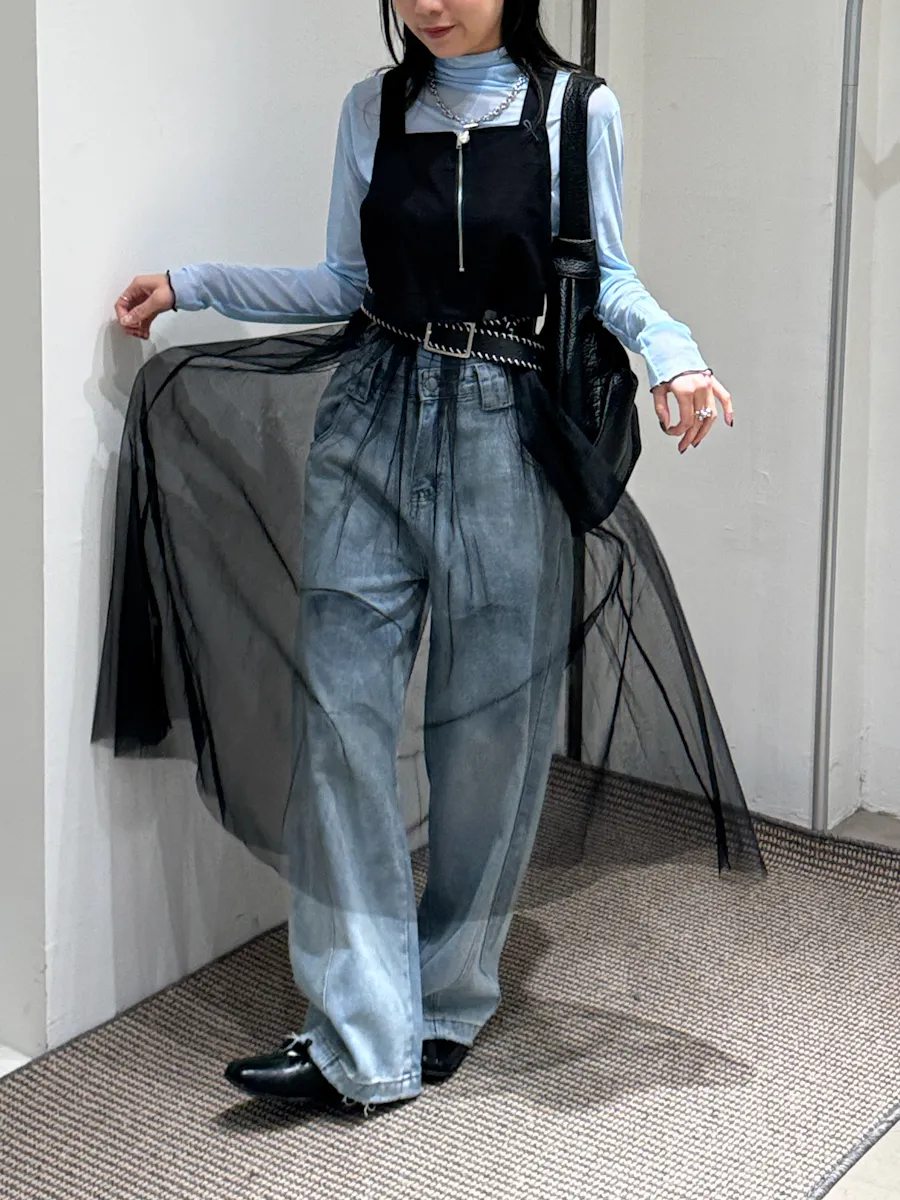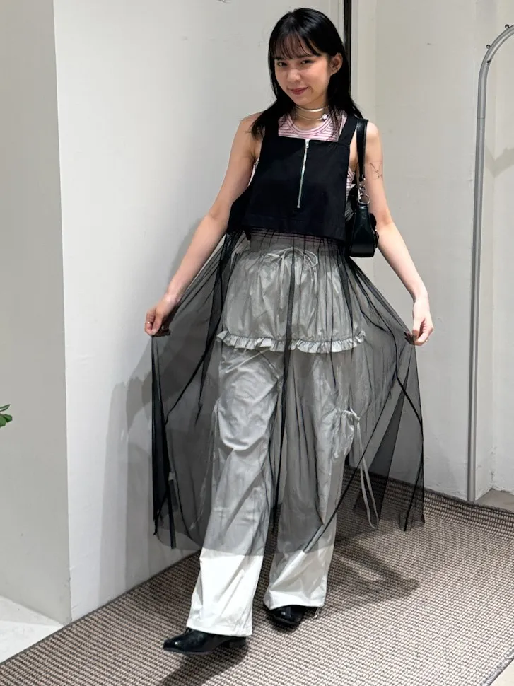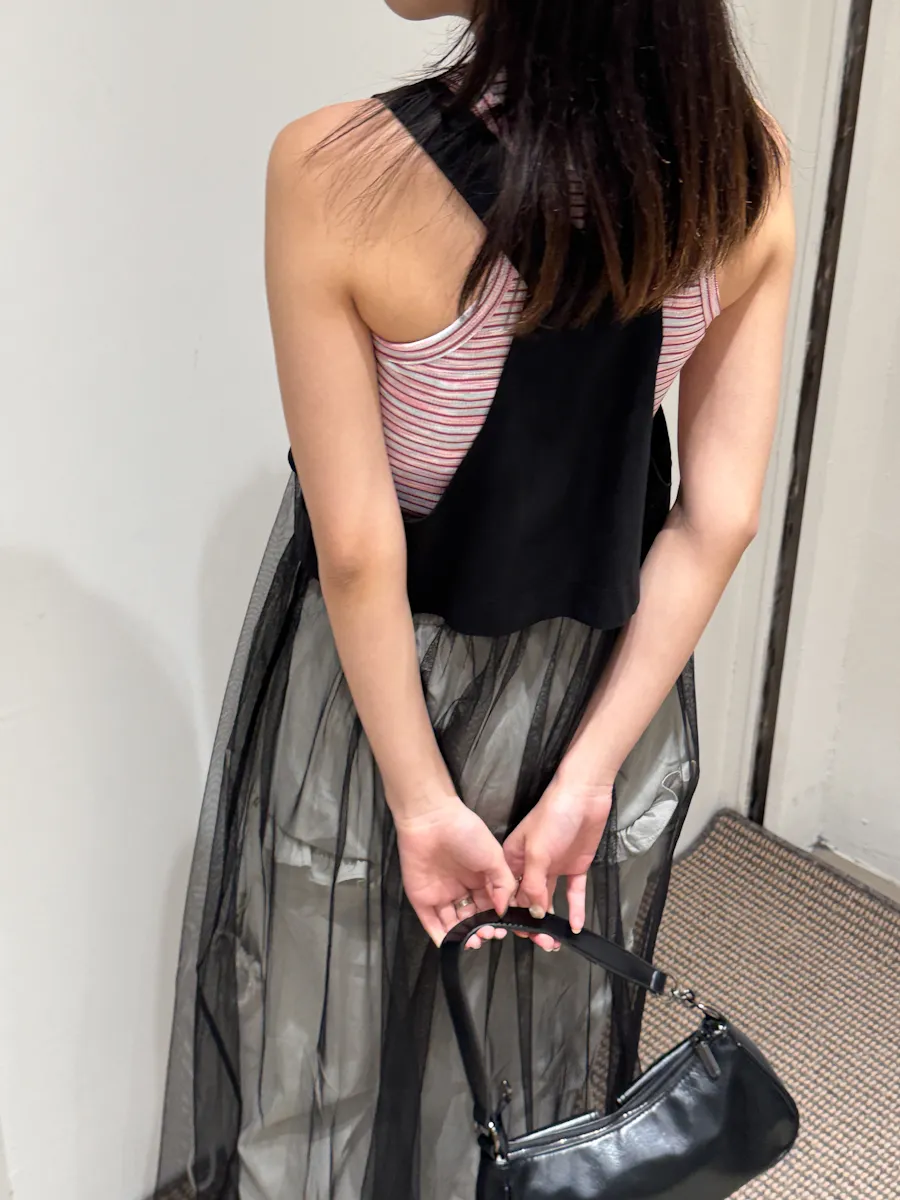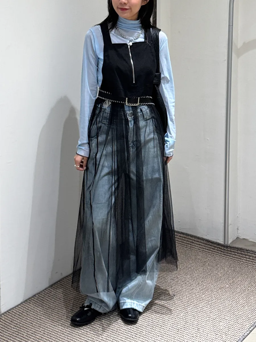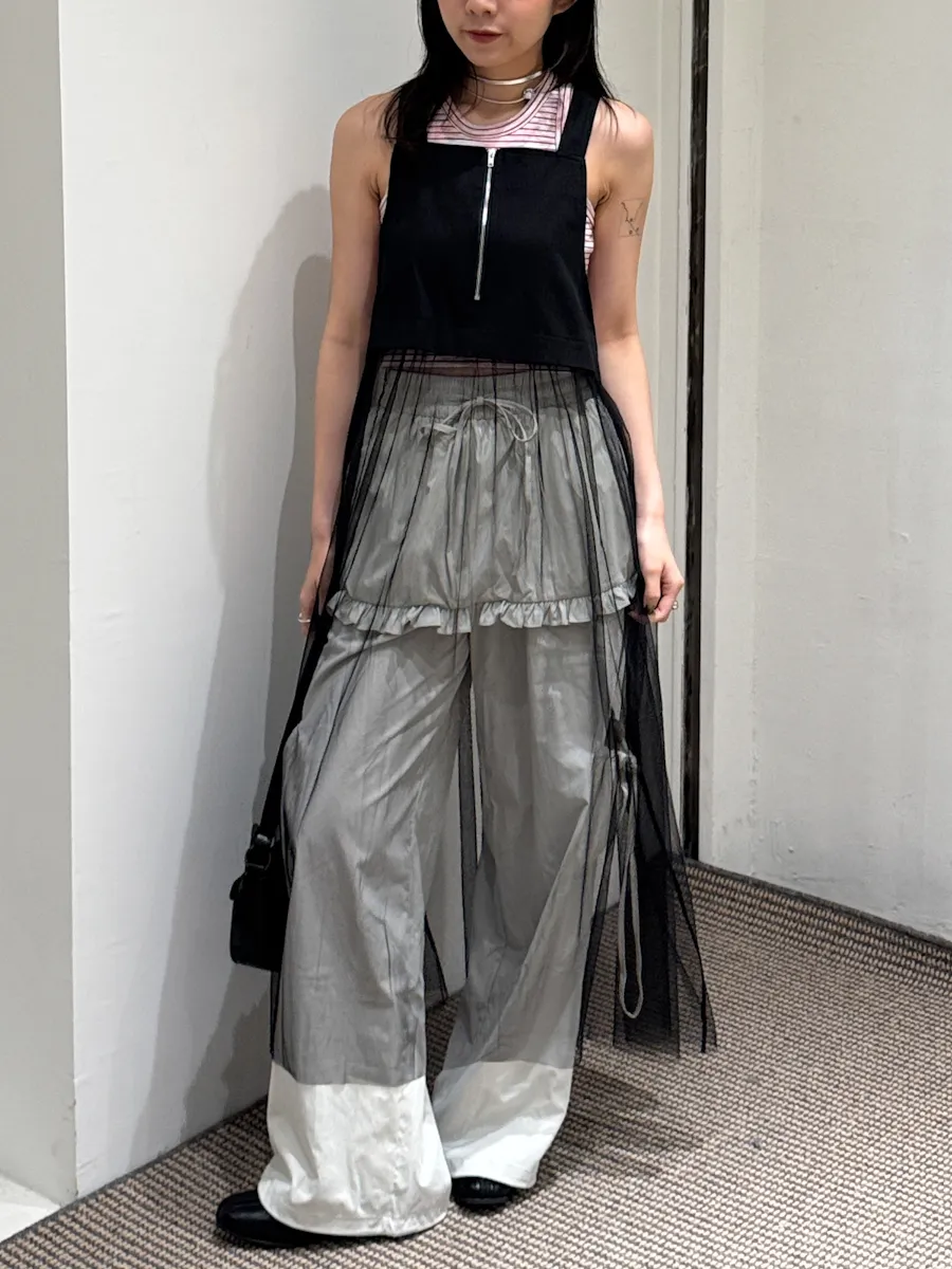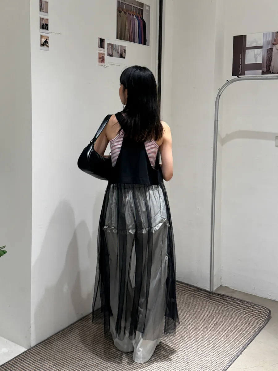 日系 吊帶前拉鏈下襬拼接紗長洋裝 2color