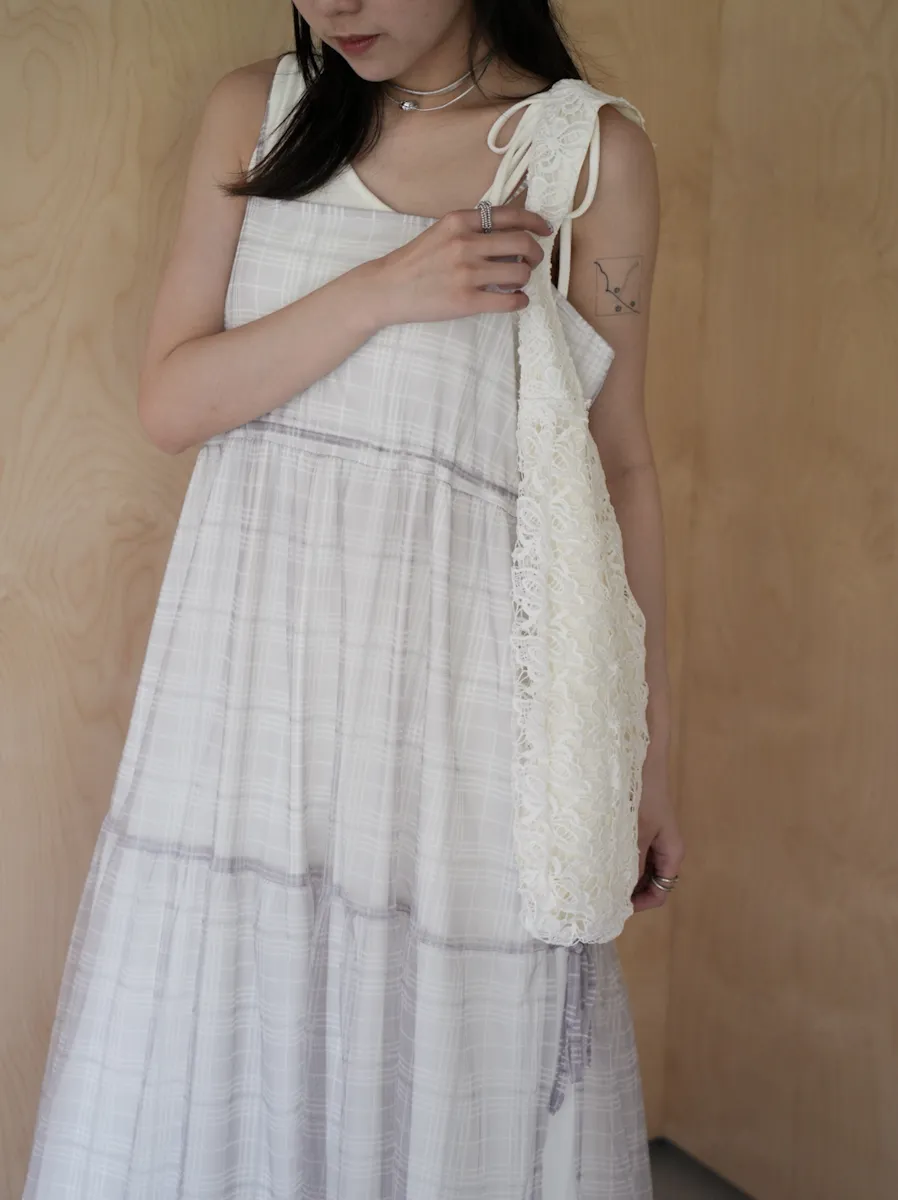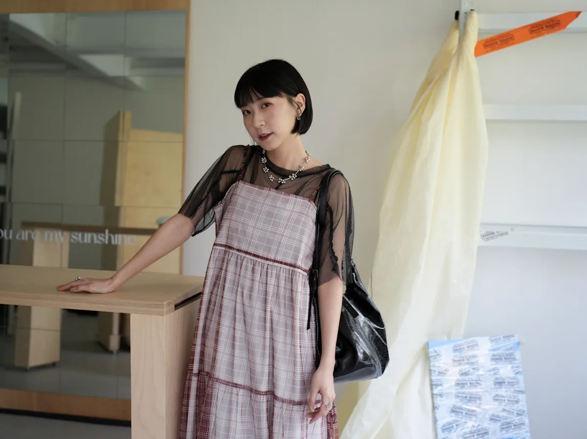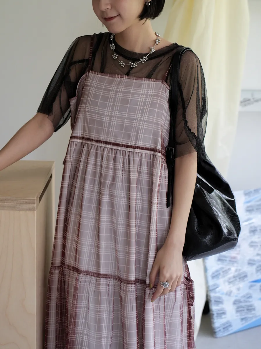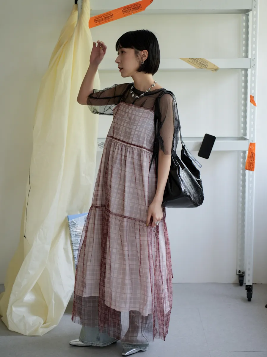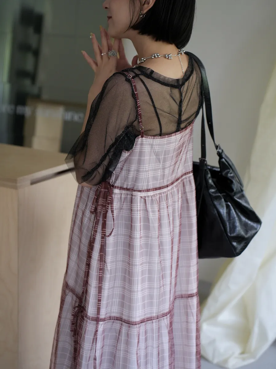 回復元氣 線格雙層拼接抽繩長洋裝 3color