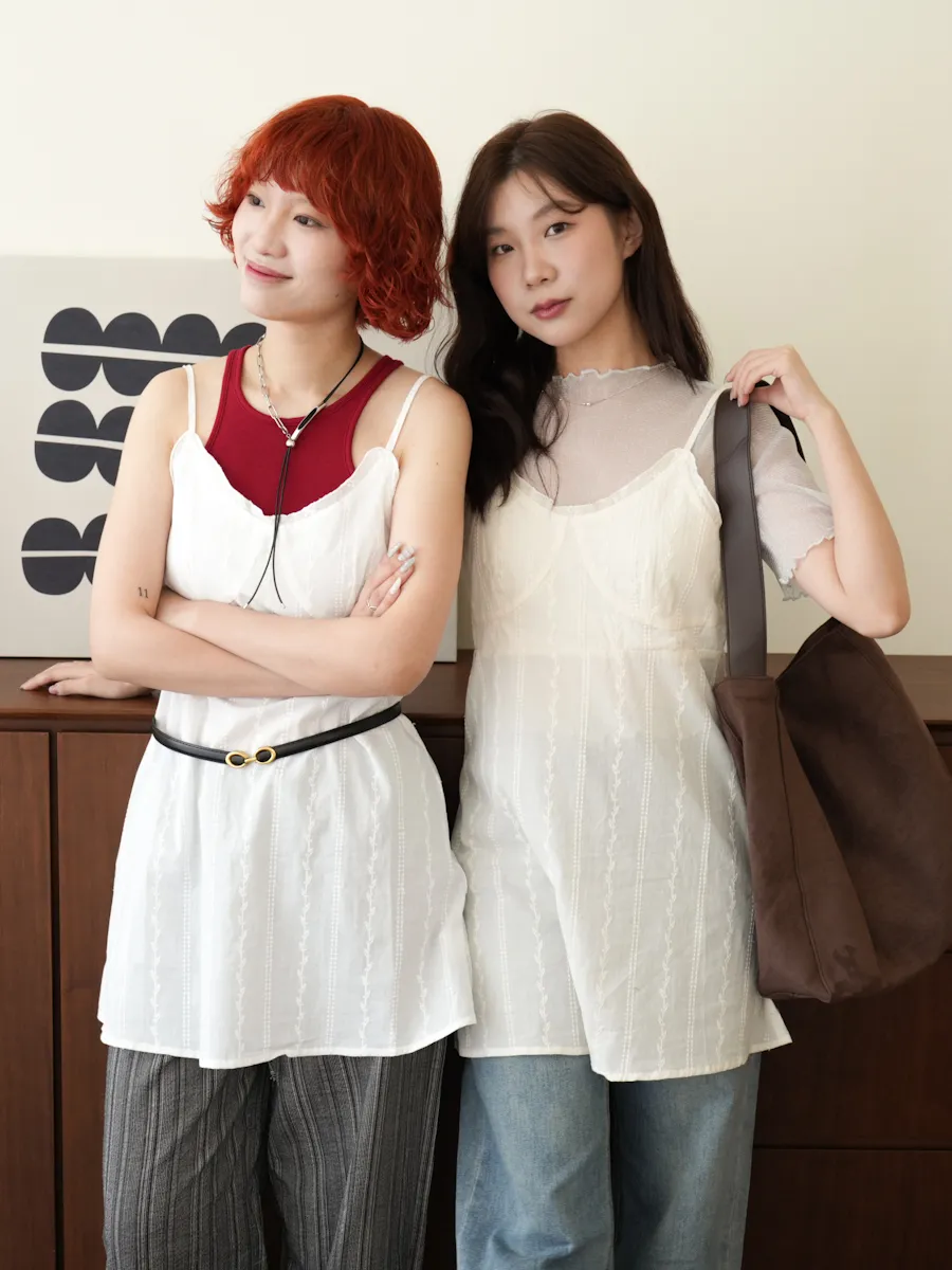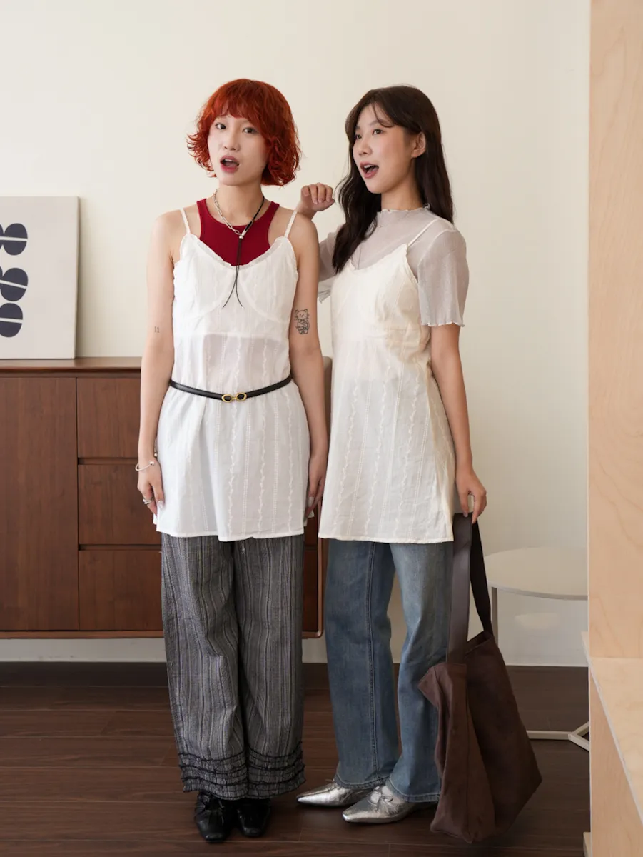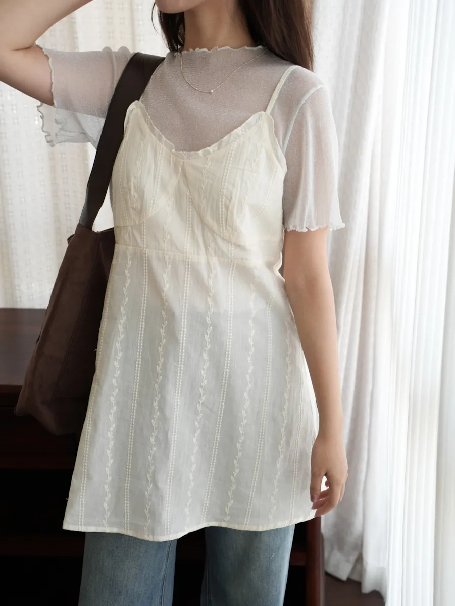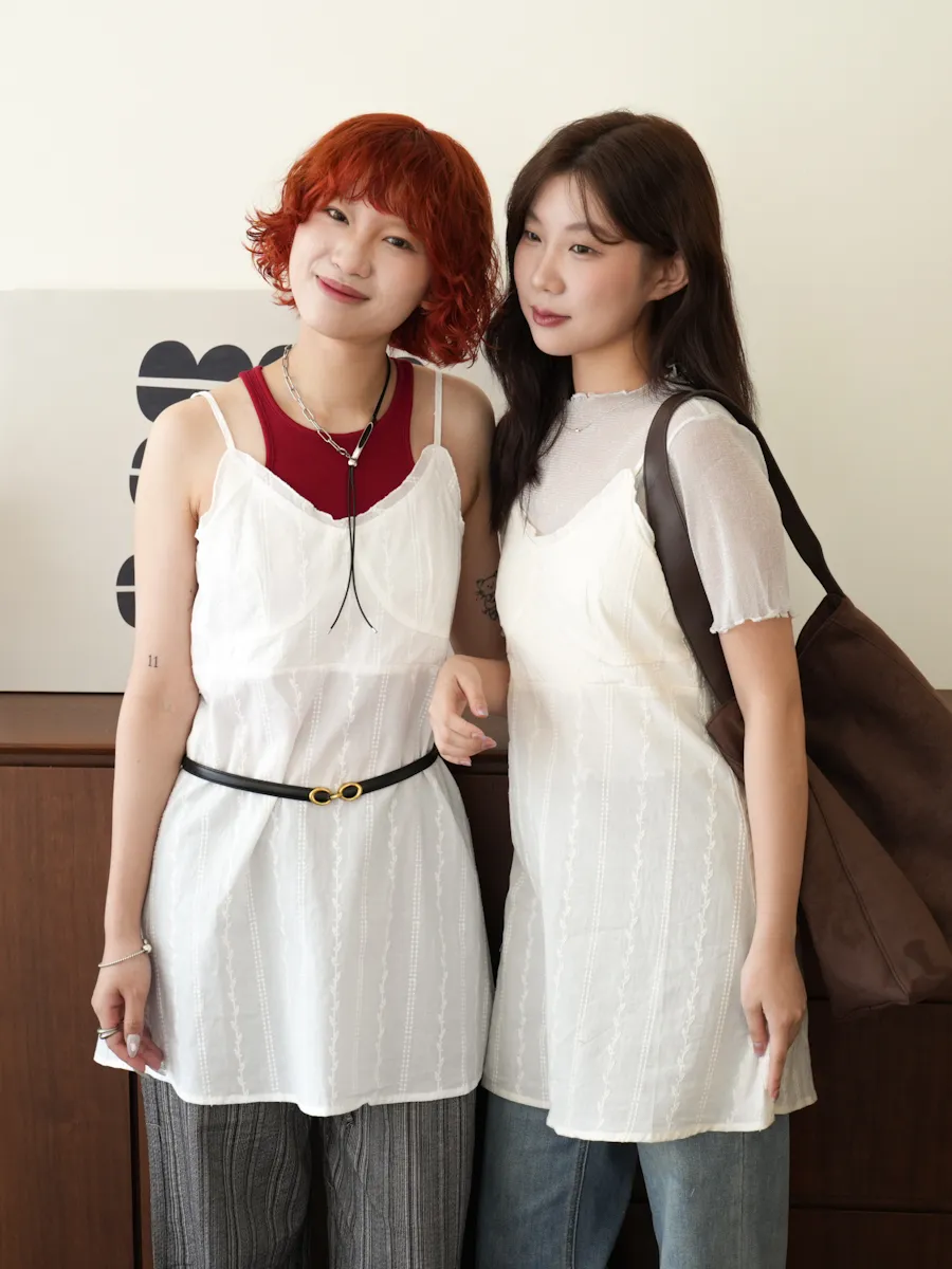 少女感蕾絲滾邊胸線設計細肩洋裝 2color