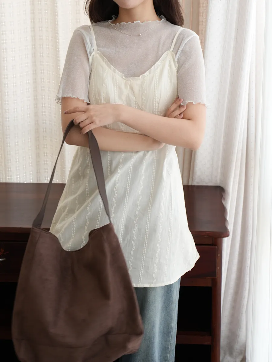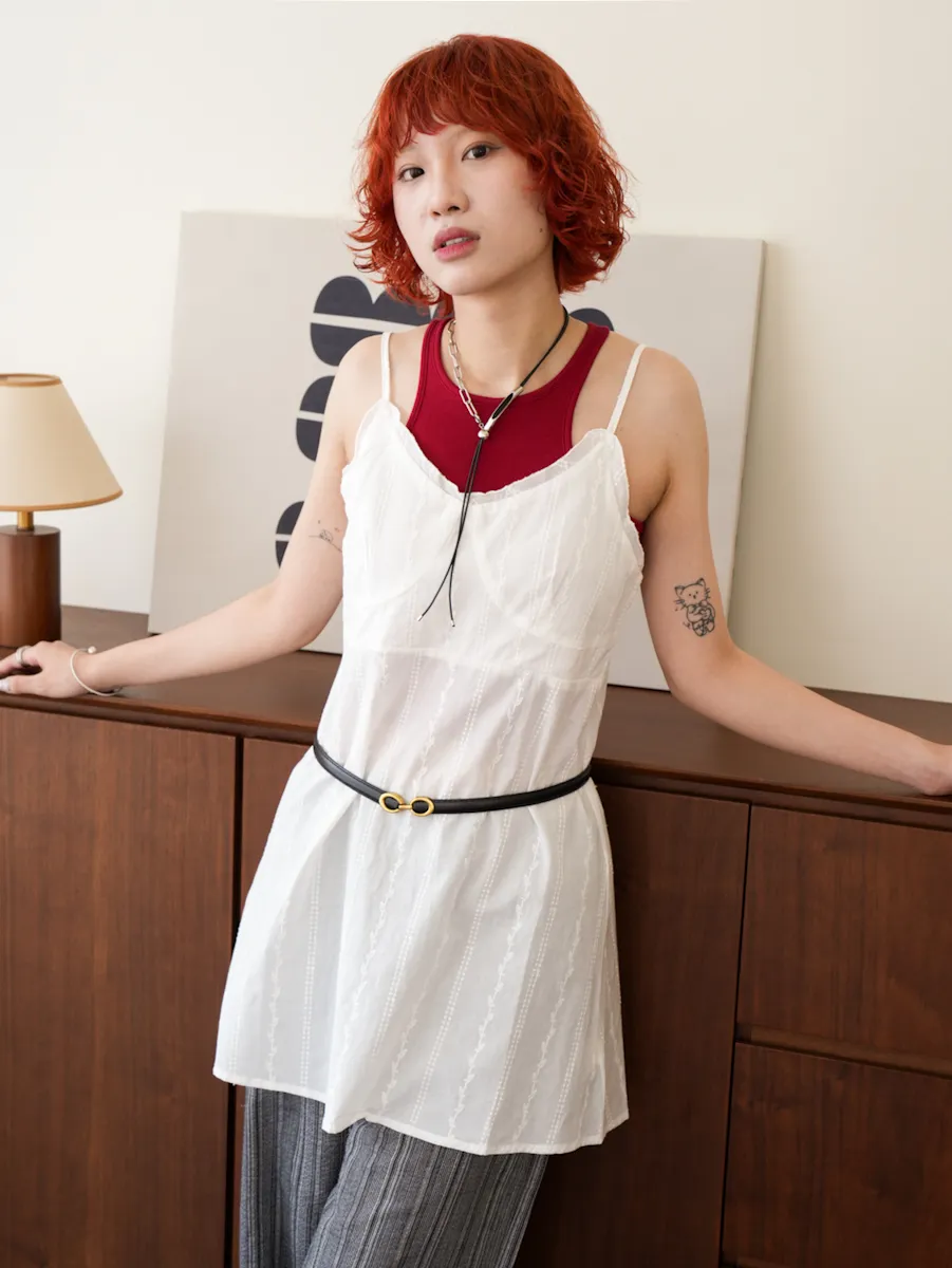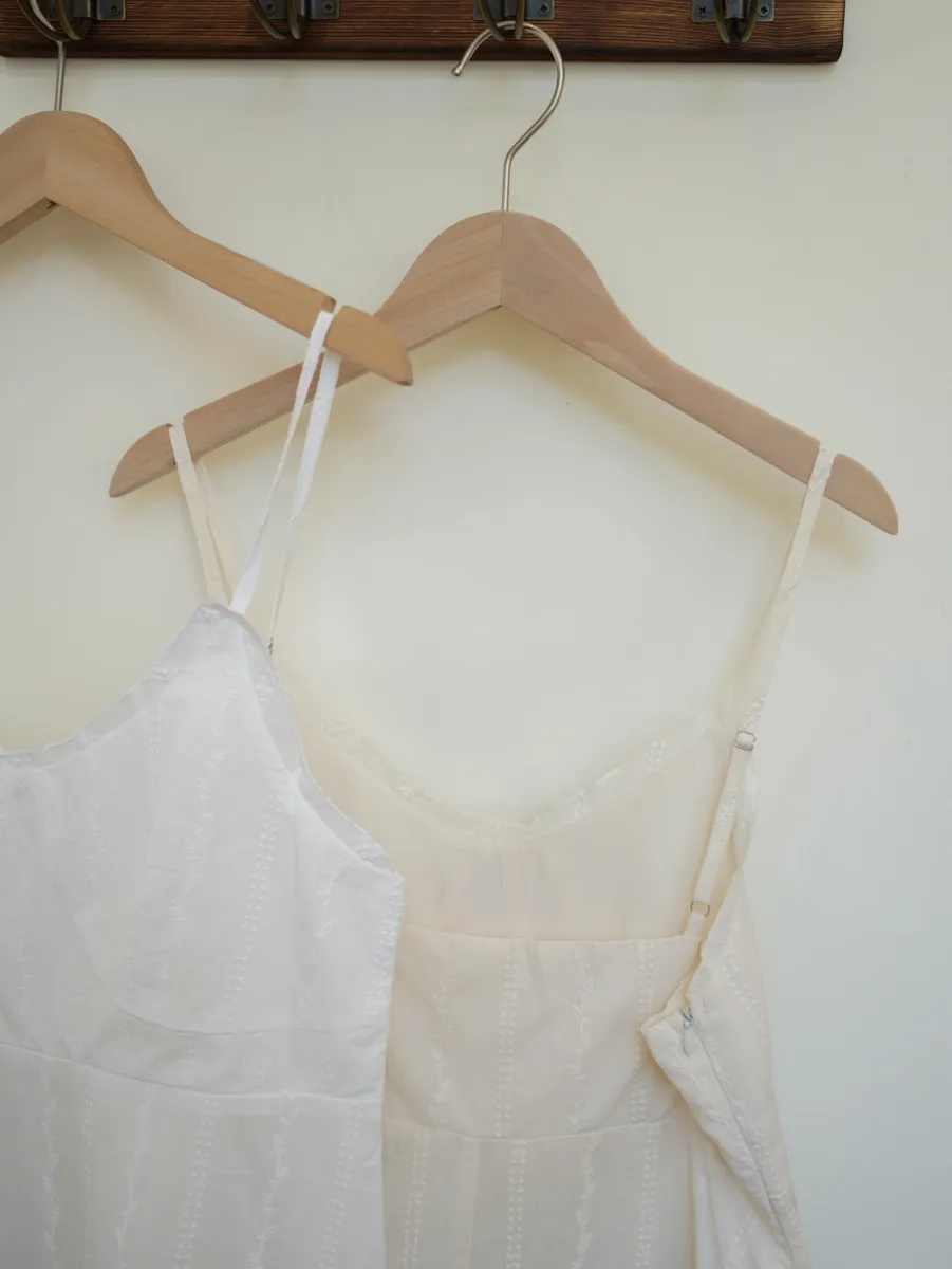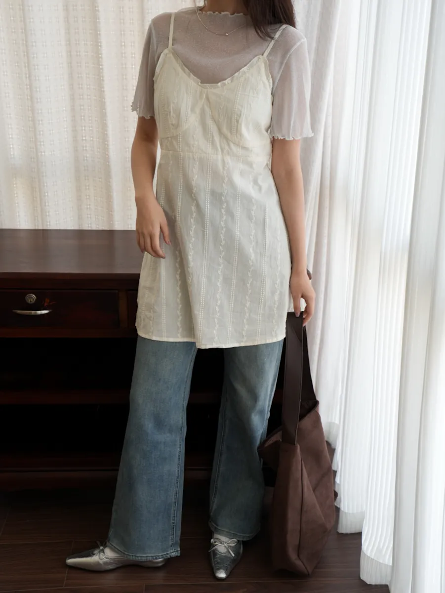 少女感蕾絲滾邊胸線設計細肩洋裝 2color