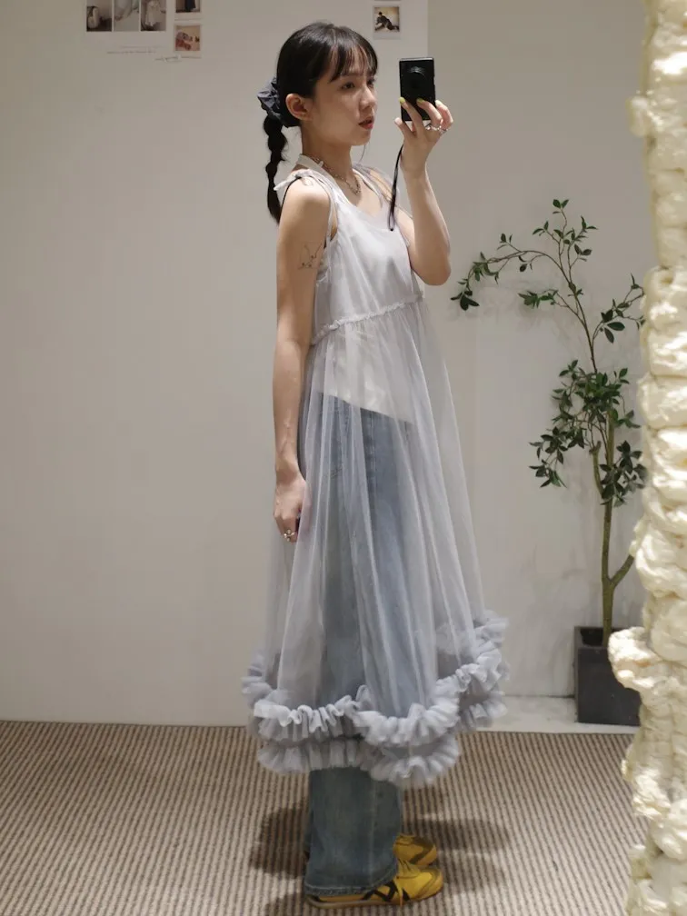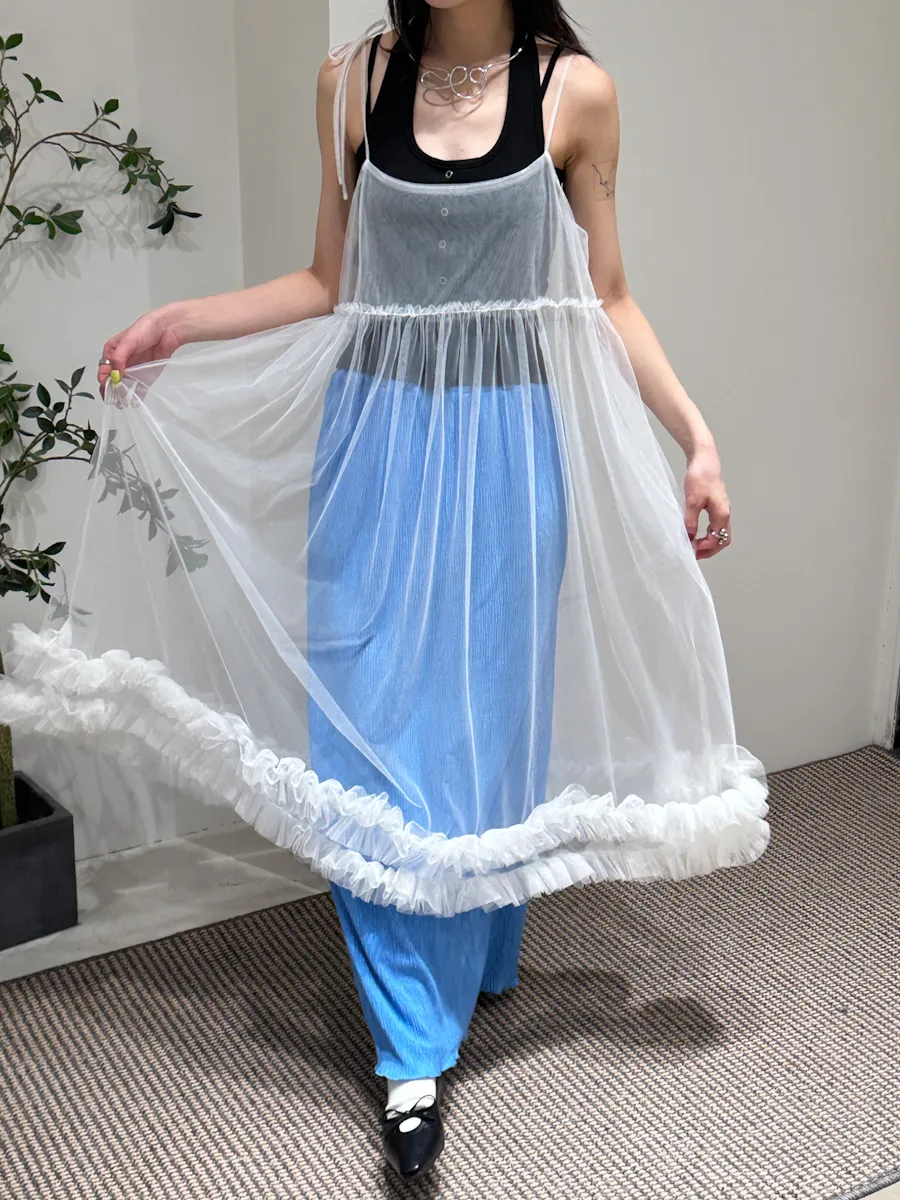 疊穿girl中意紗質泡泡紗綁帶洋裝 3color