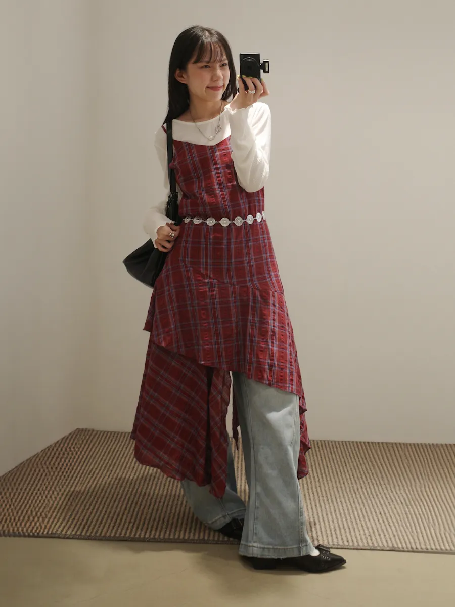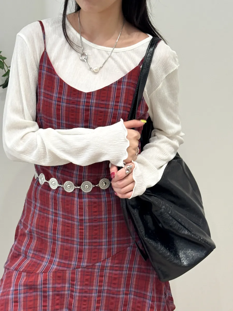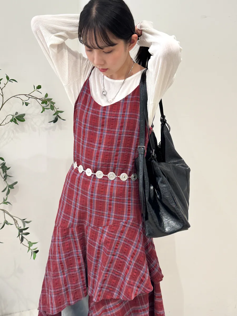 側隱形拉鍊,腰有綁帶,肩帶可調