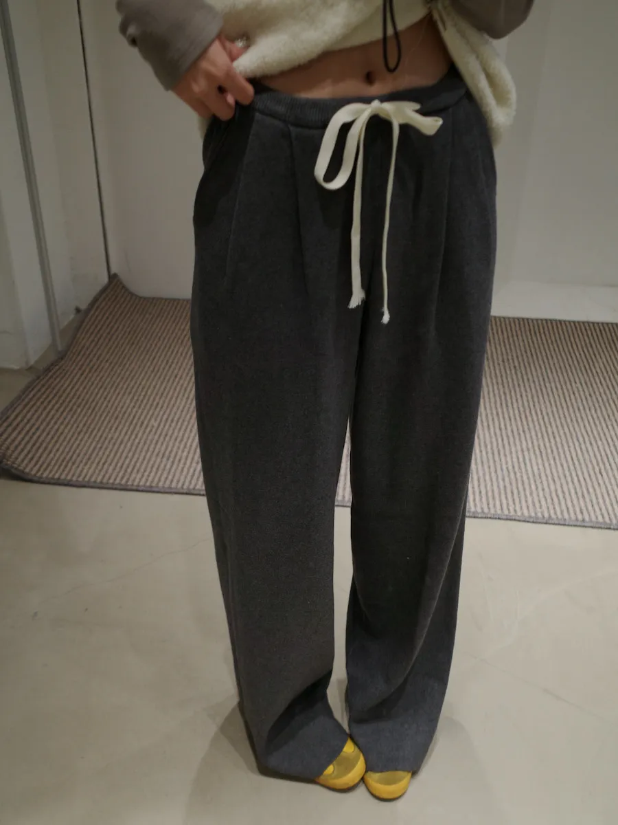 同樣卻不一樣 好版型厚棉針織質寬褲 2color