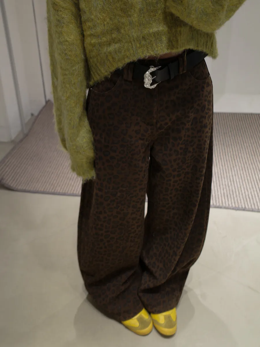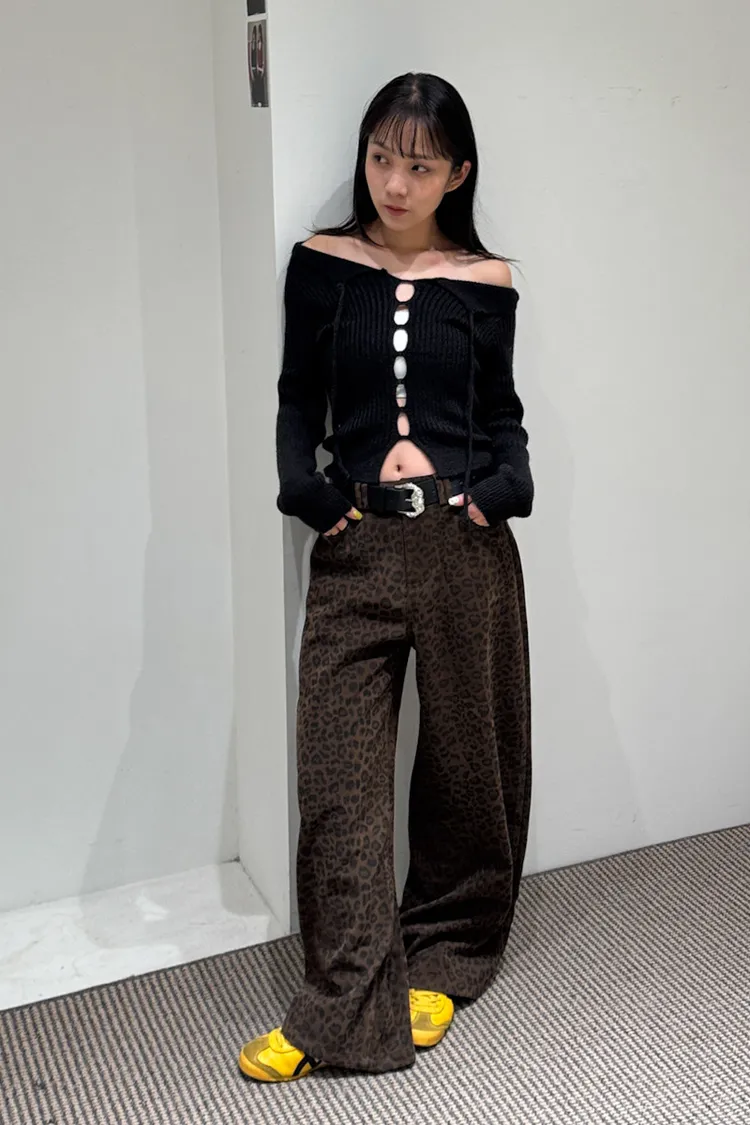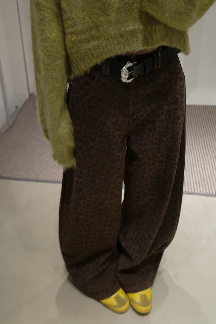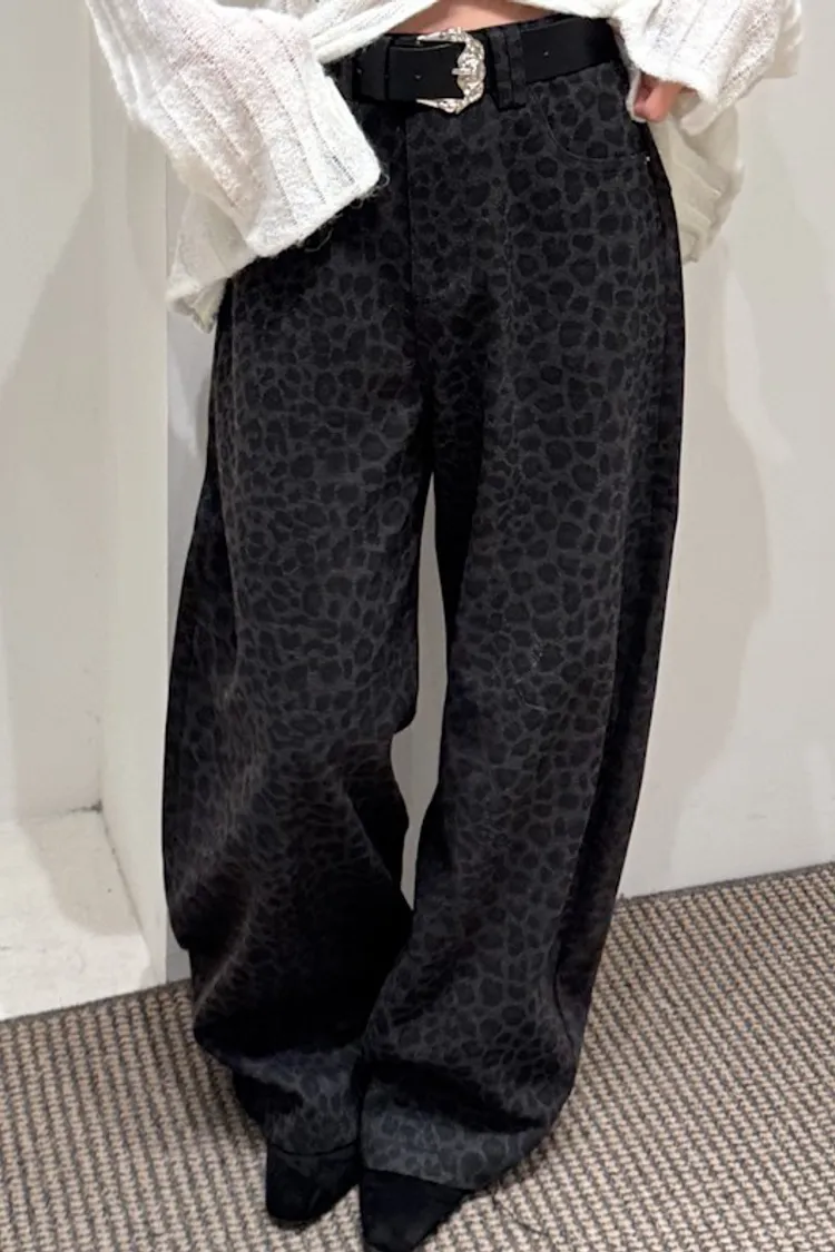 席捲震撼豹紋加厚款中低腰落地褲 2color