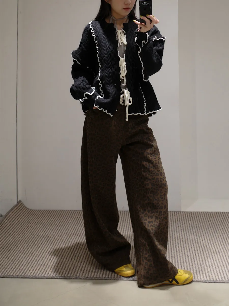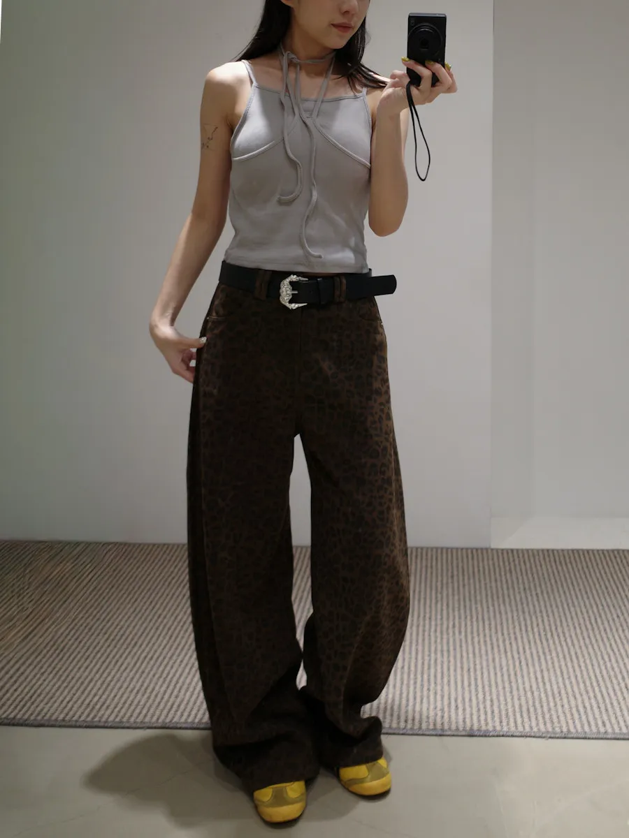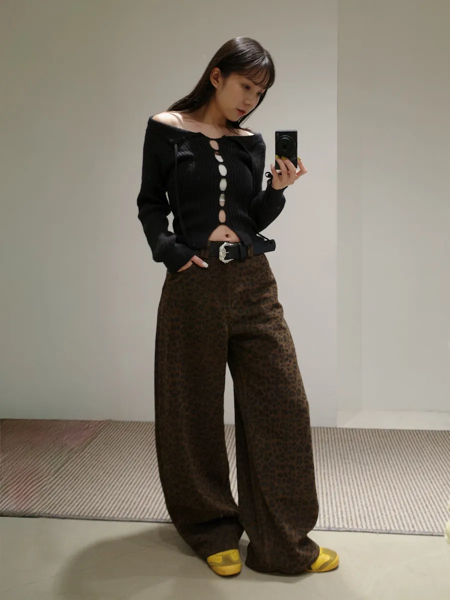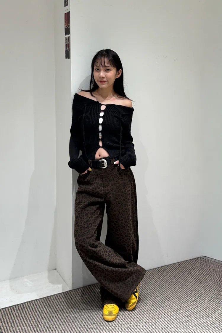 席捲震撼豹紋加厚款中低腰落地褲 2color