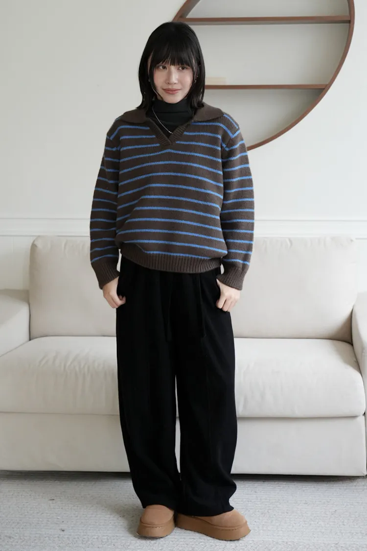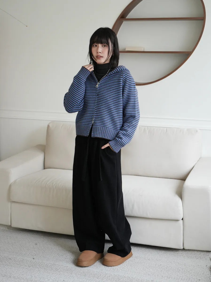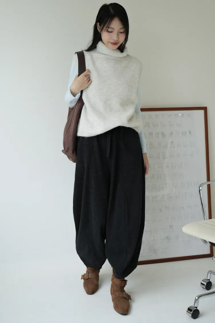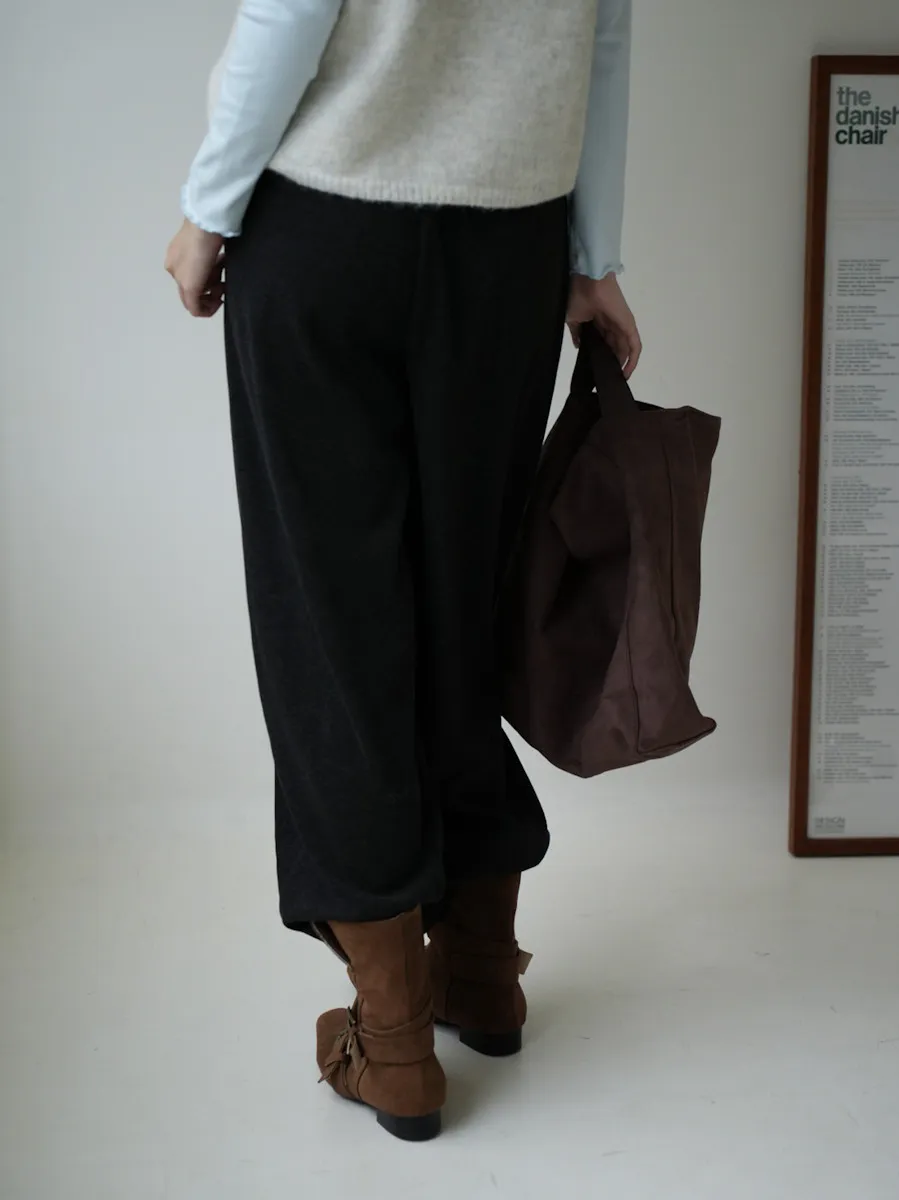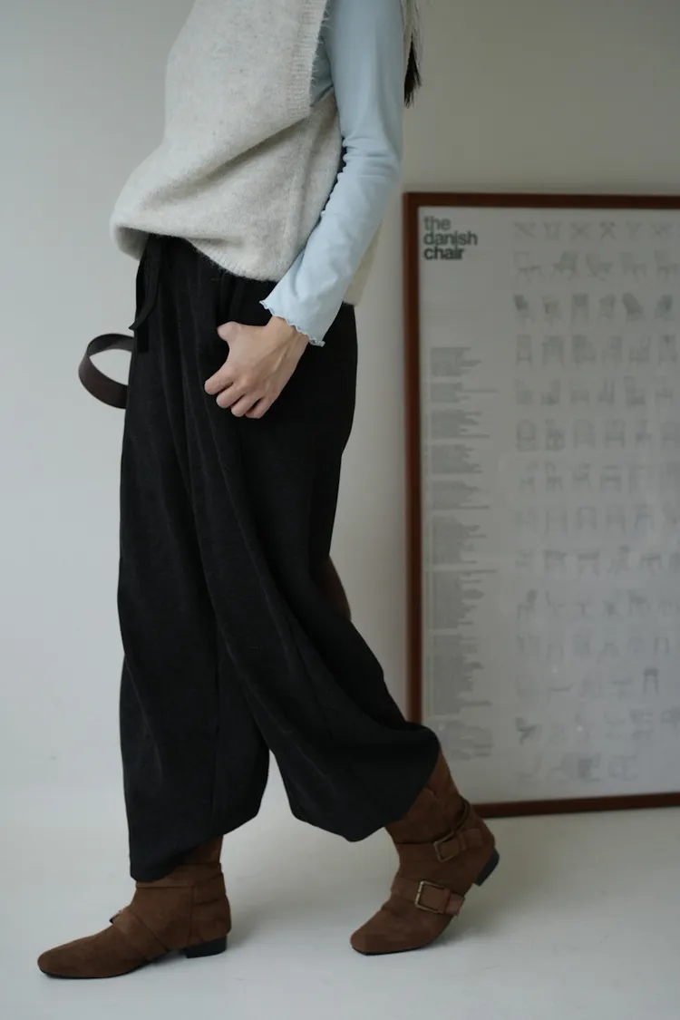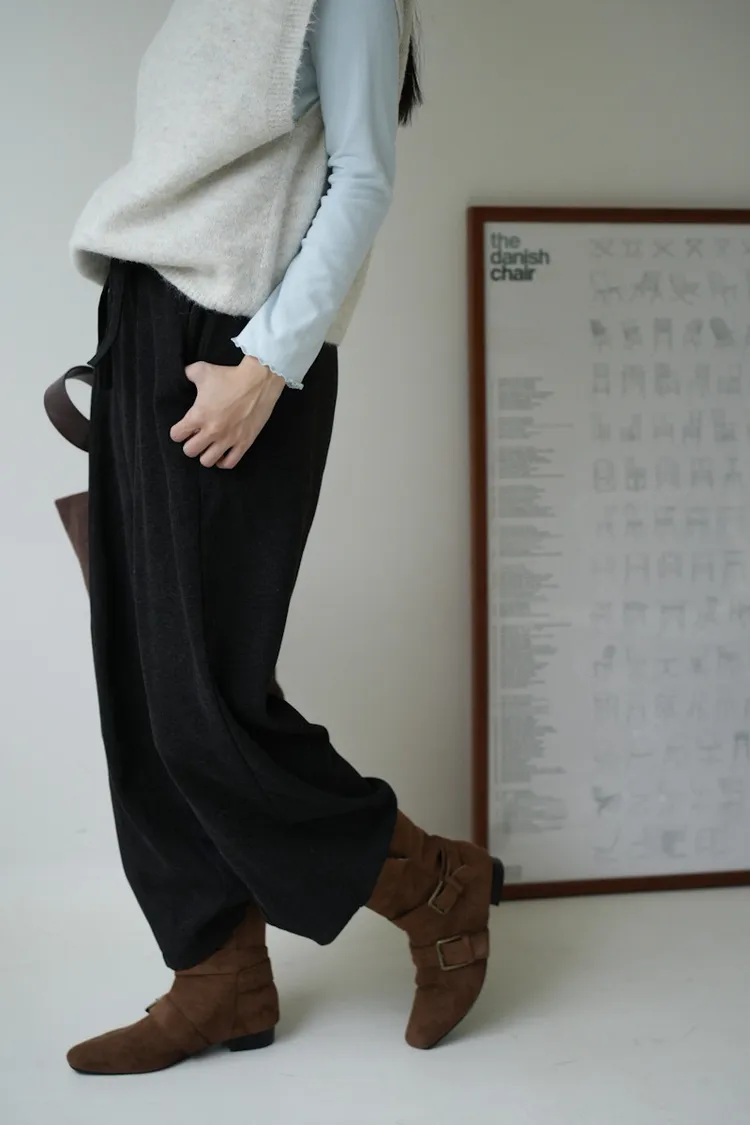 -蕭編日常穿!彎刀綁帶寬褲 黑1
