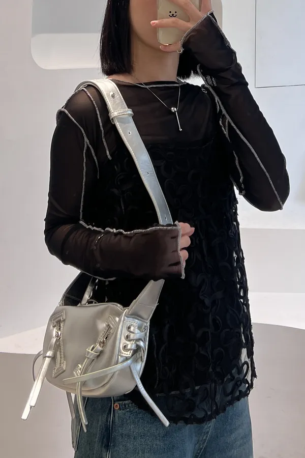 -日系立體滾邊花花透色背心 黑4