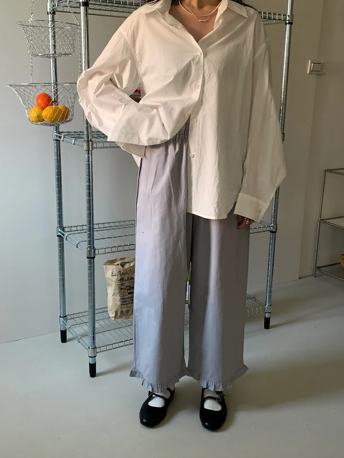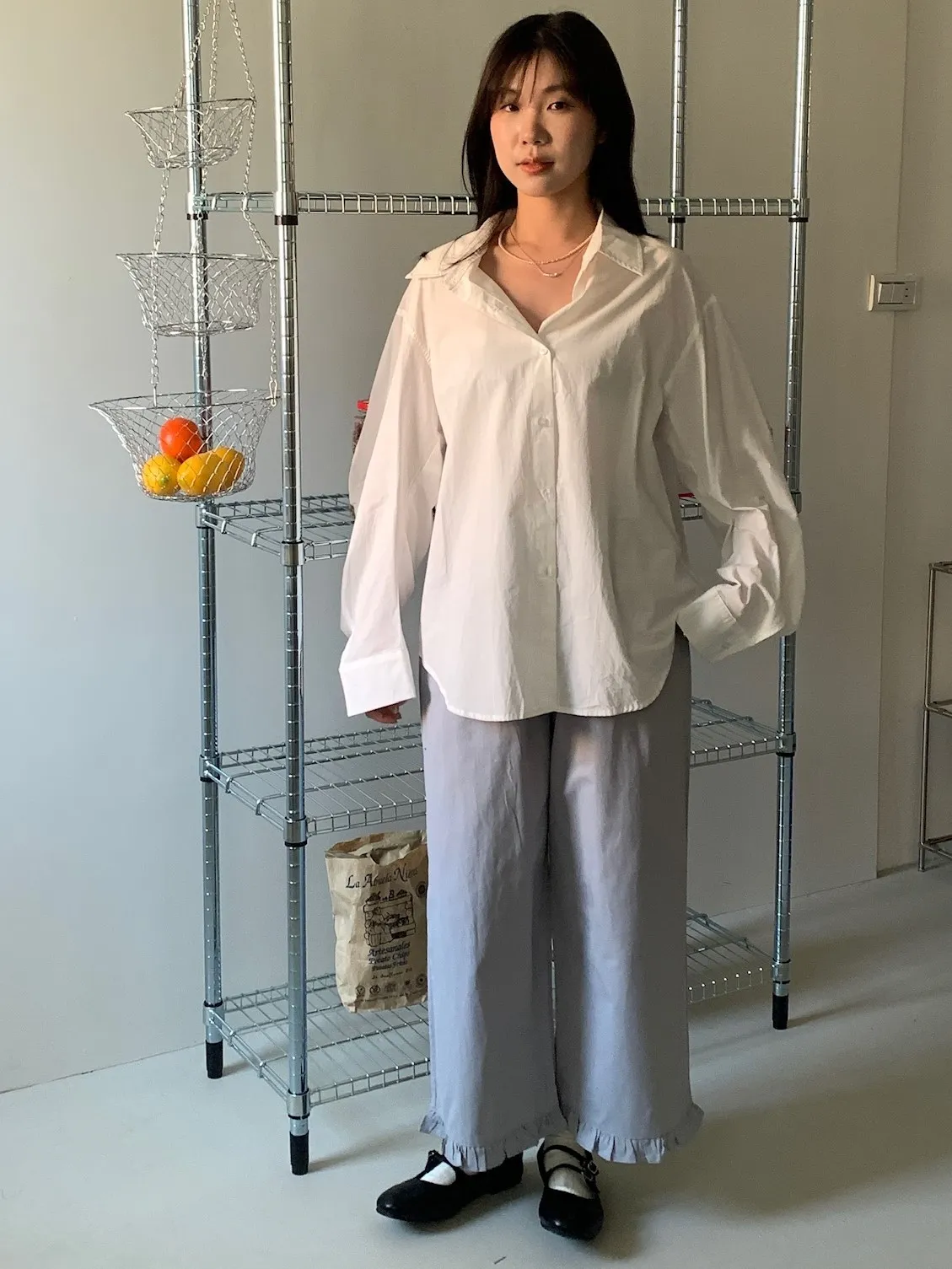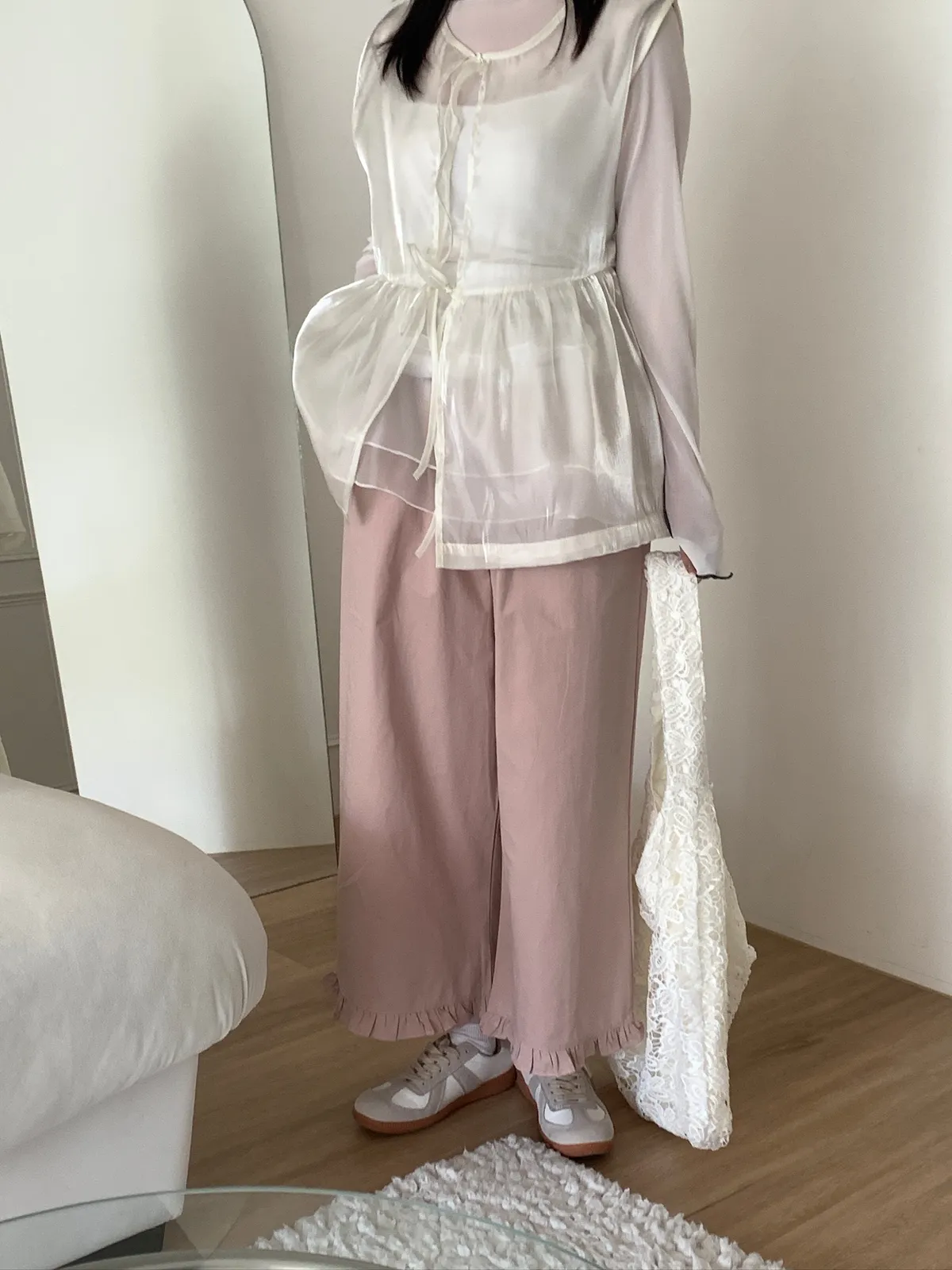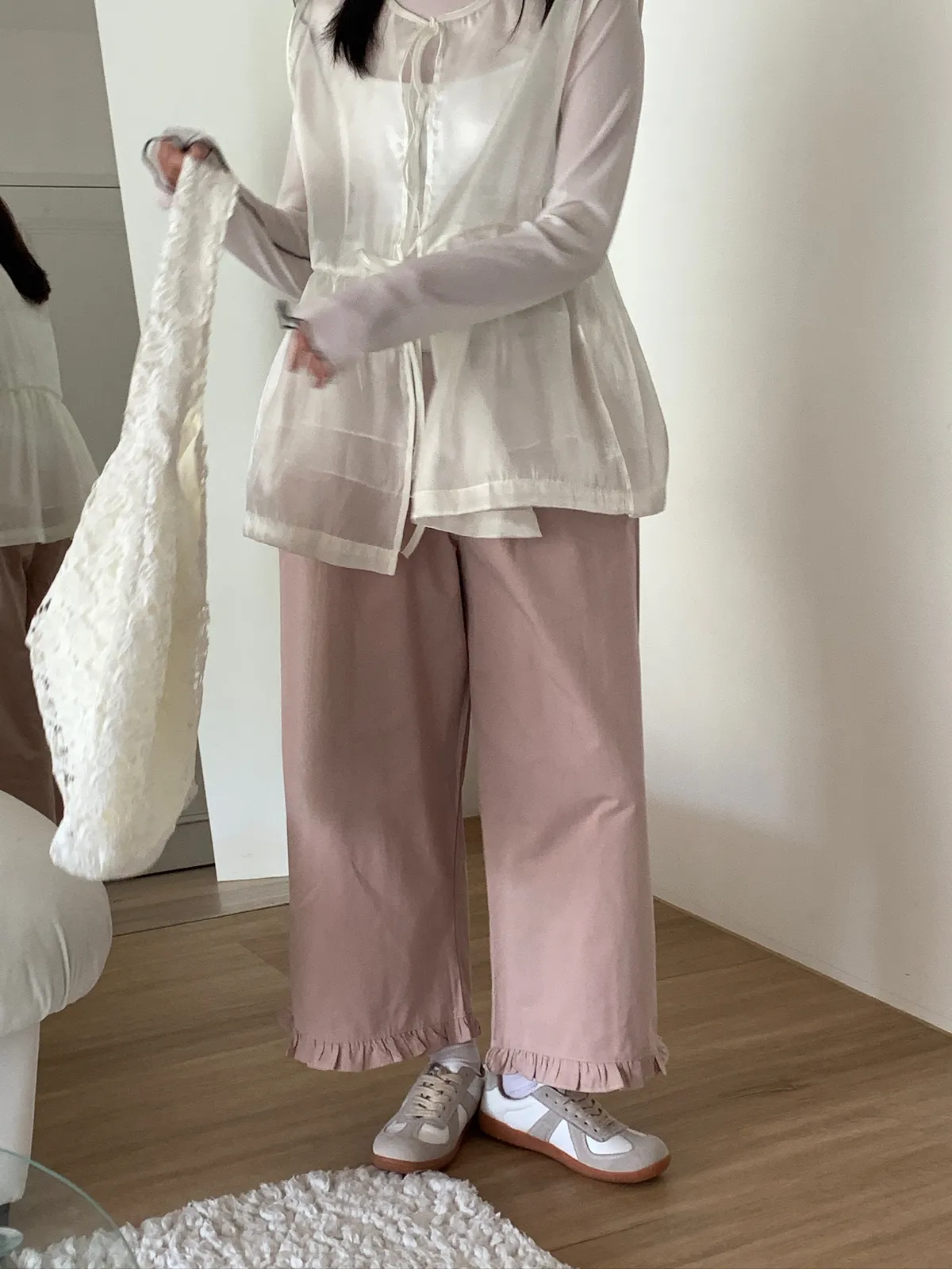 可愛上車 下擺花瓣直筒九分長褲 4color