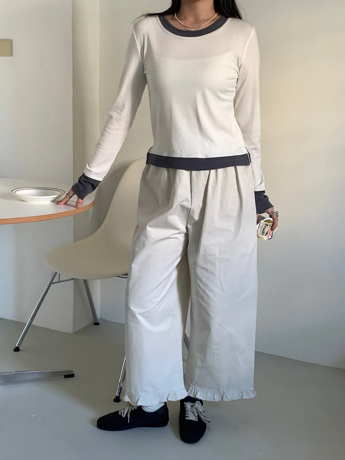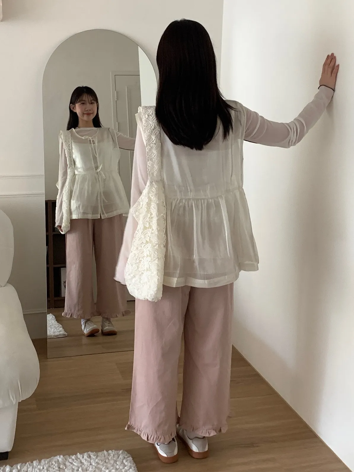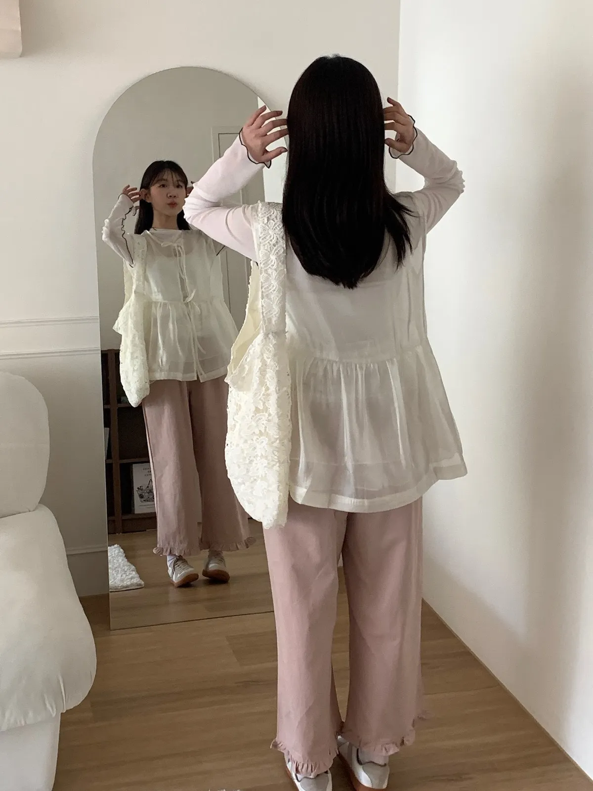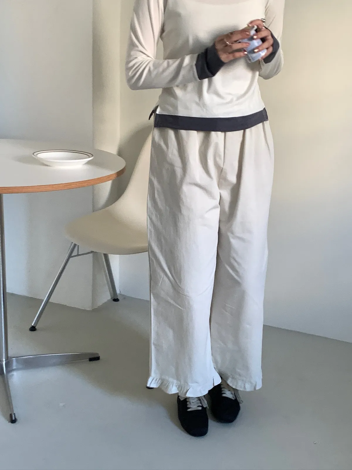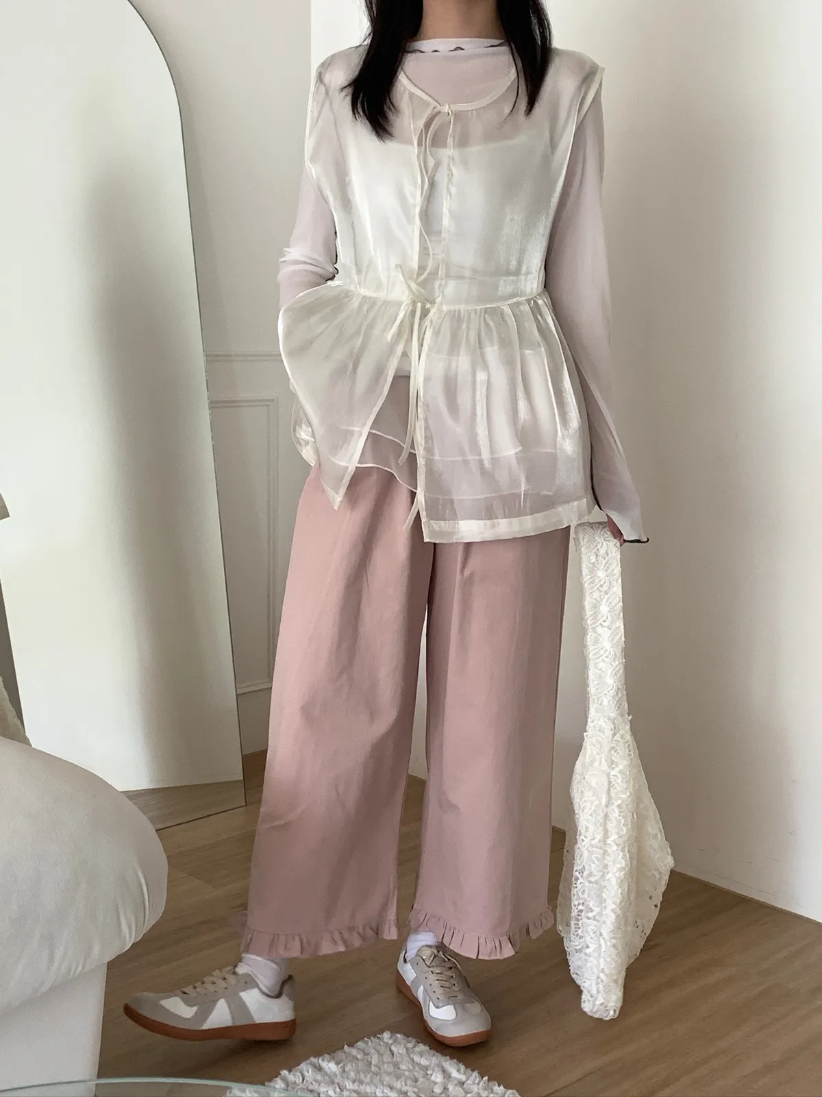 可愛上車 下擺花瓣直筒九分長褲 4color