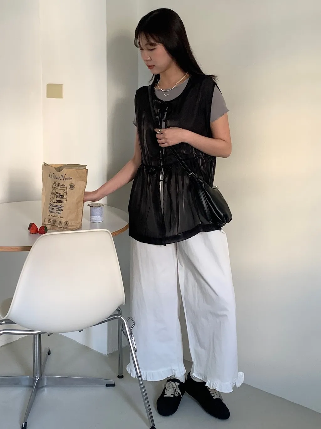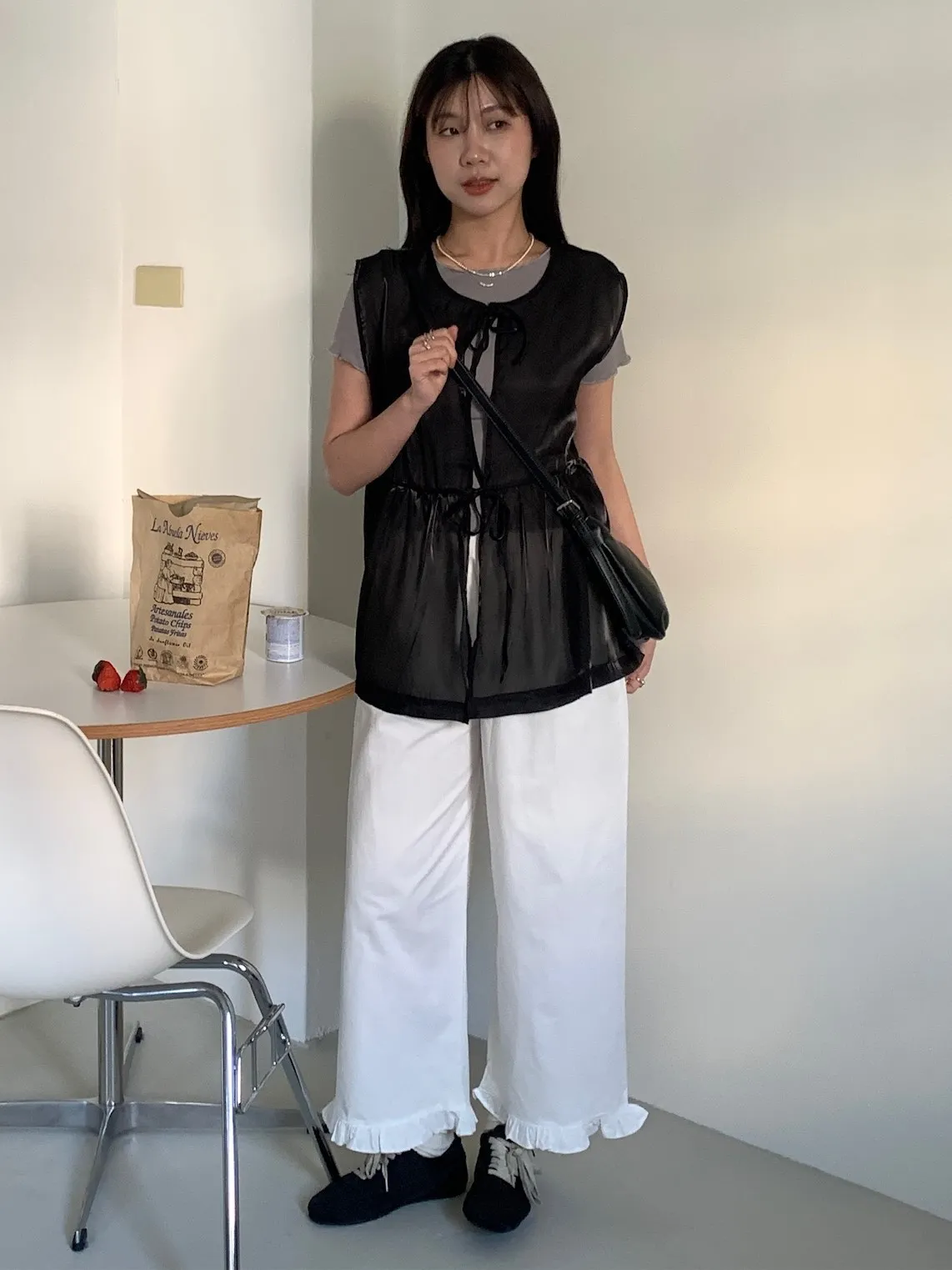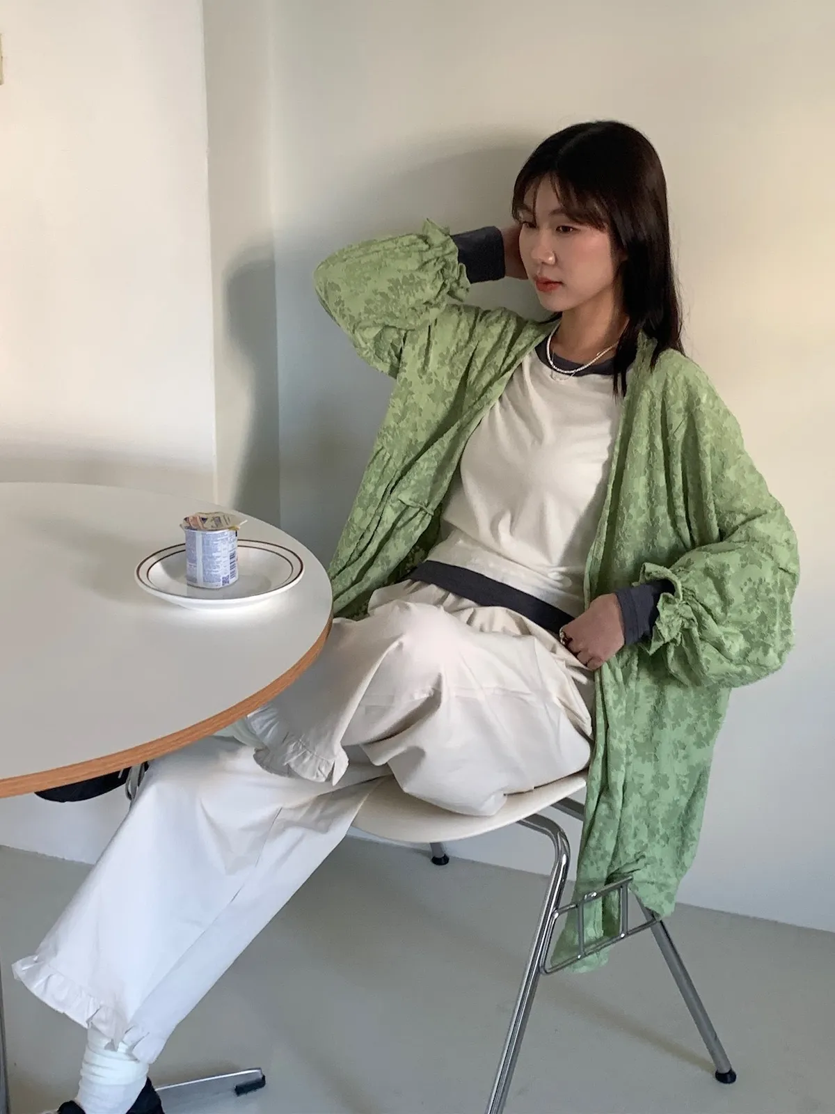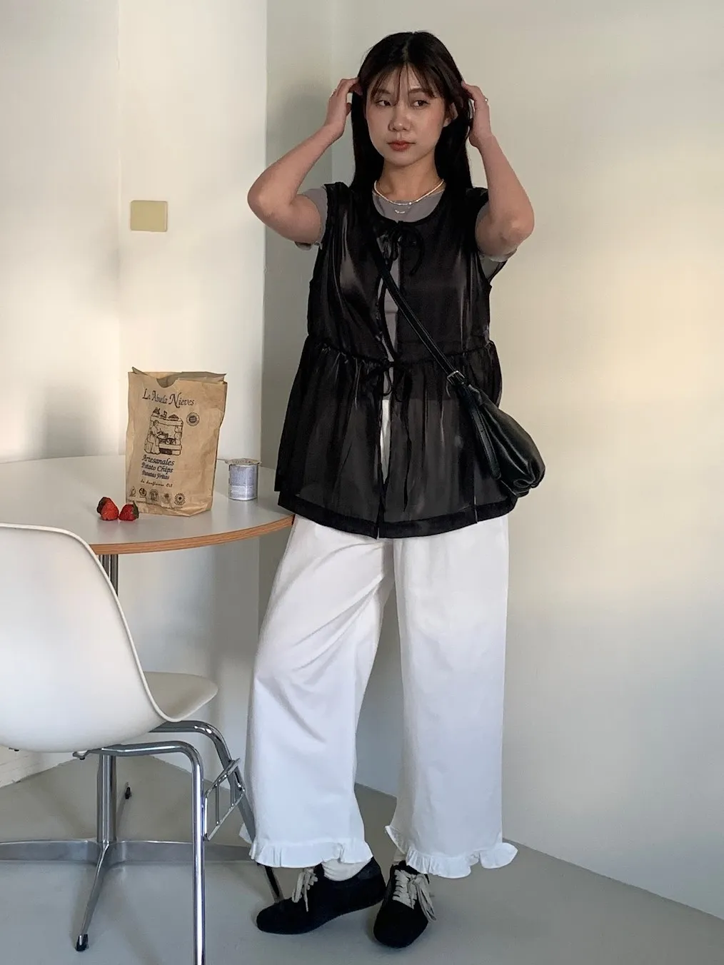 可愛上車 下擺花瓣直筒九分長褲 4color