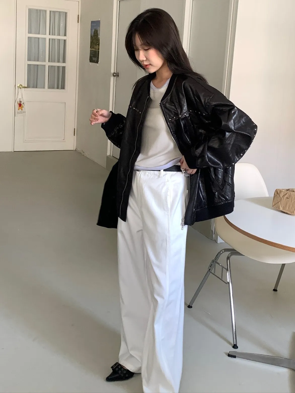 經典時髦垮版皮帶牛仔褲 2color