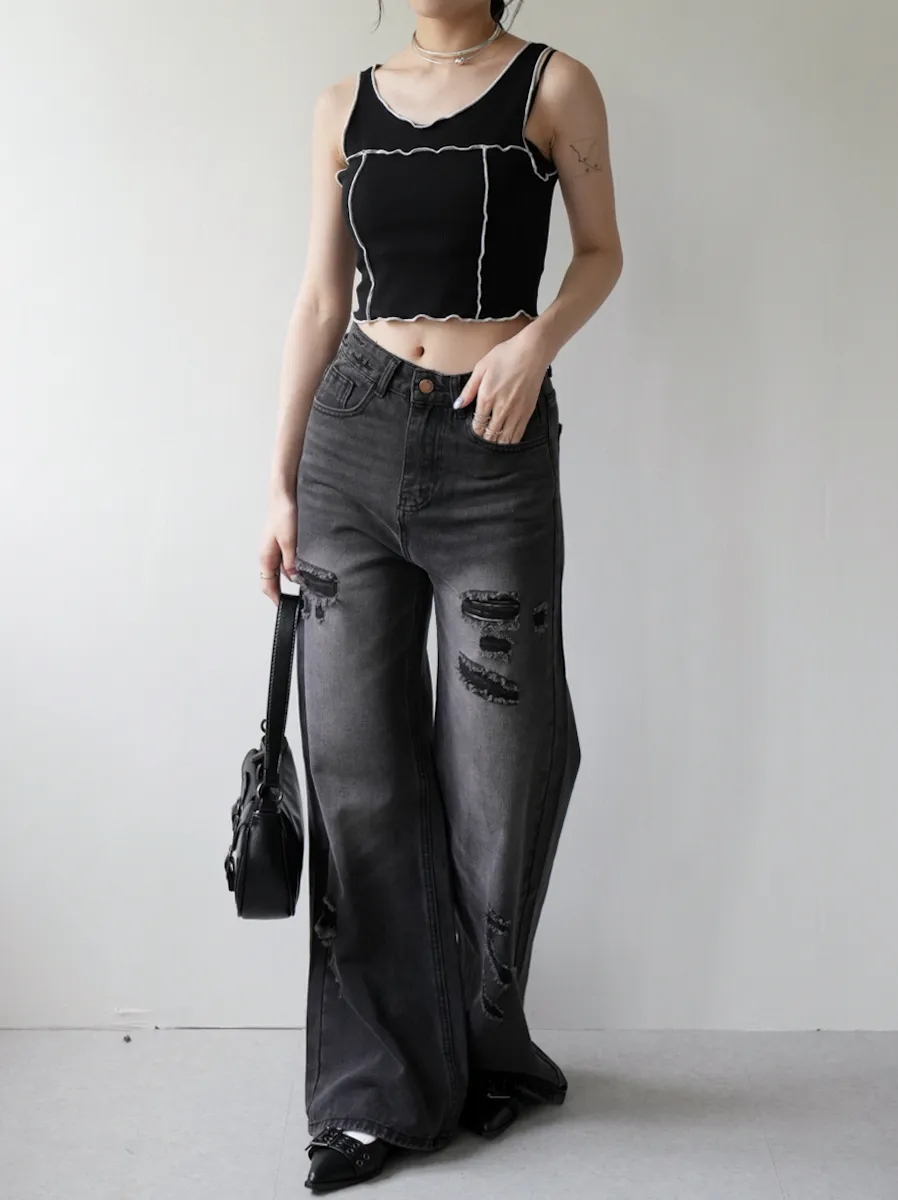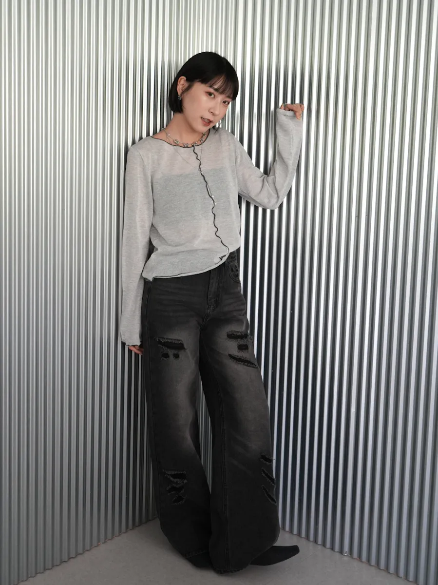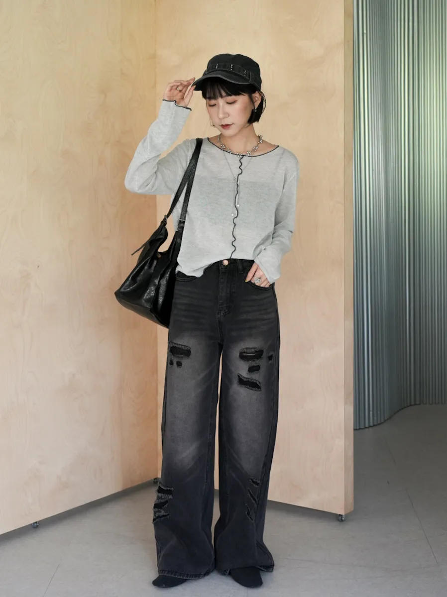 每期都是精選 美式難波萬破洞單寧褲 2color