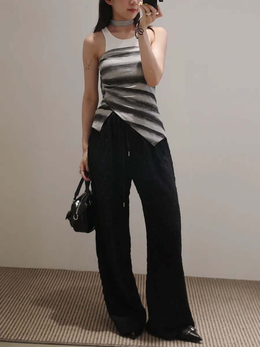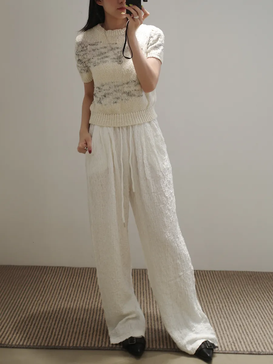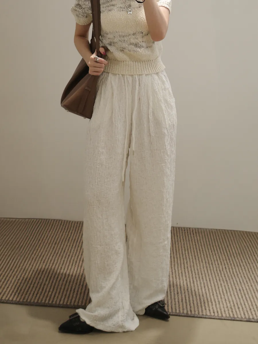鬆弛特調 柔膚冷調印花落地寬褲 2color