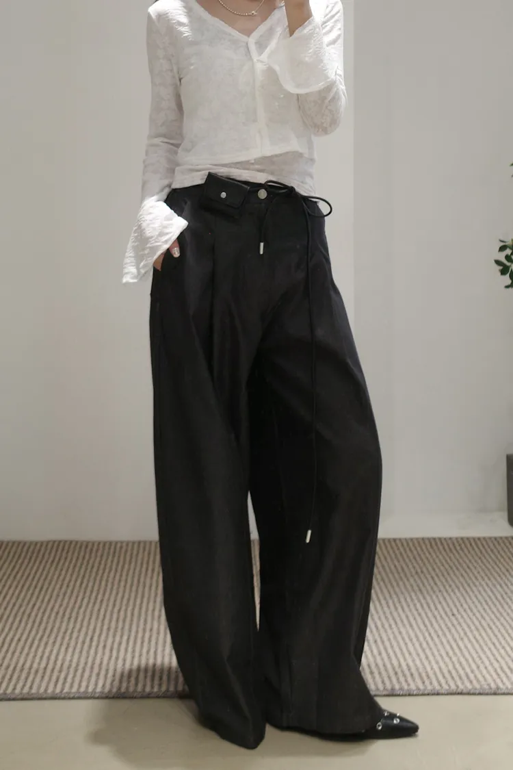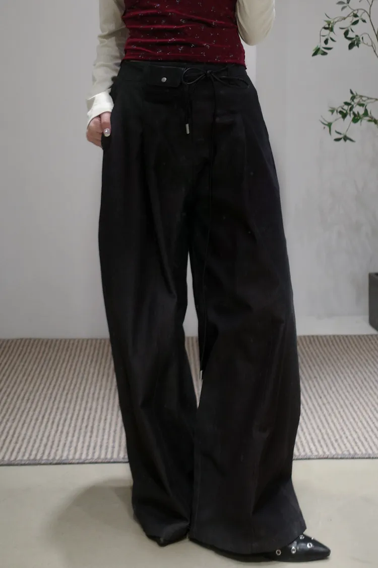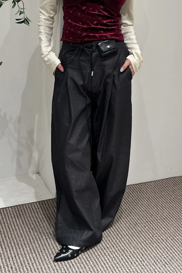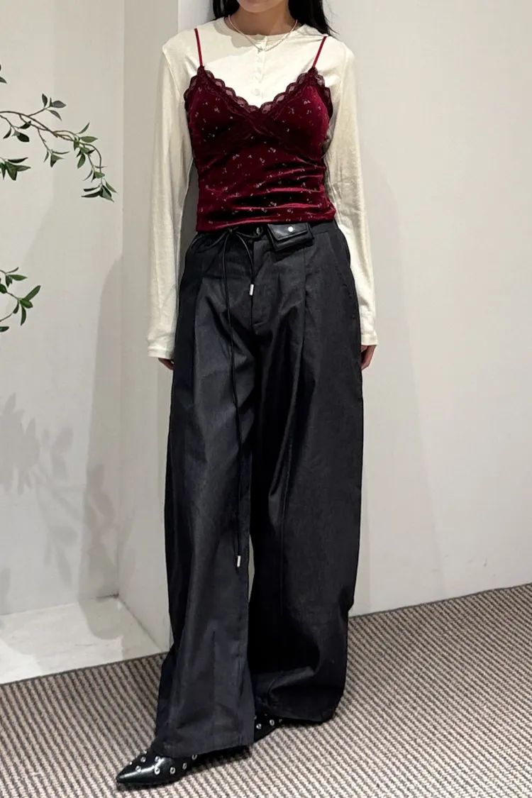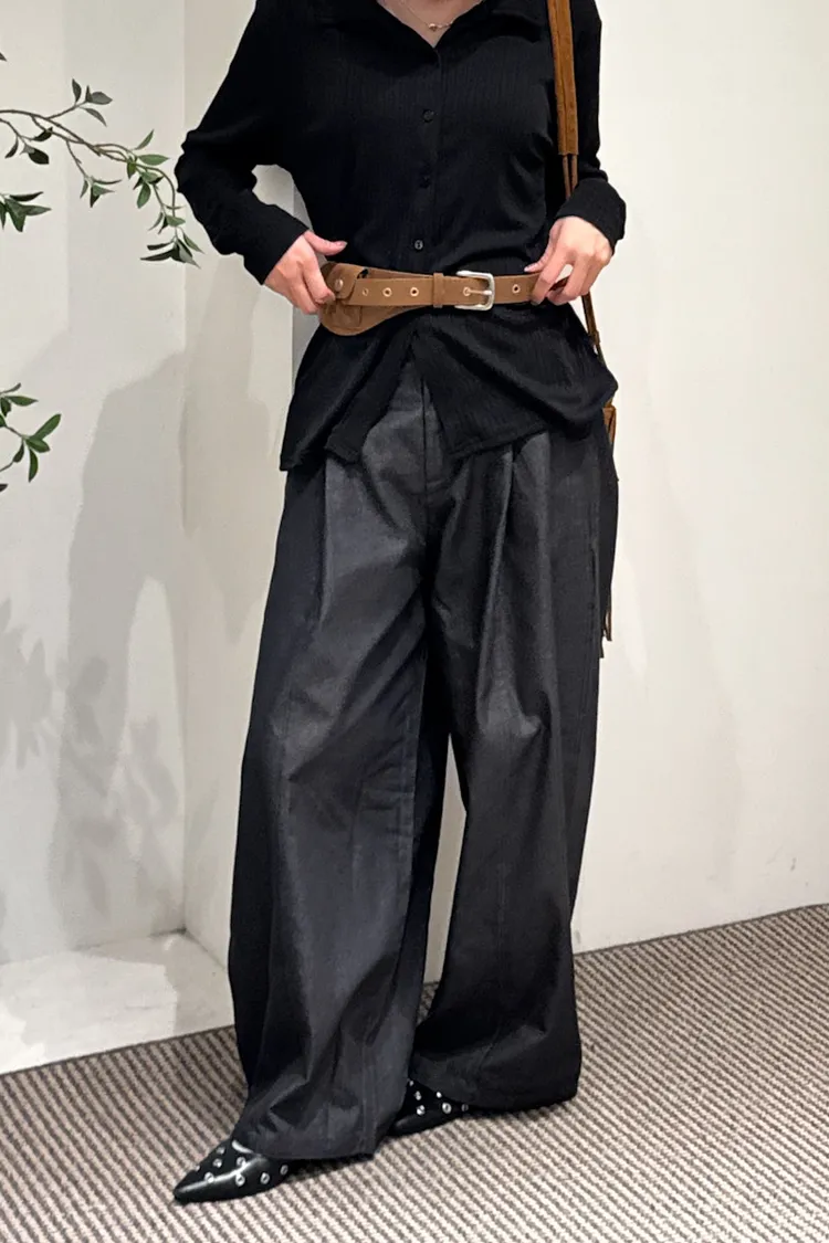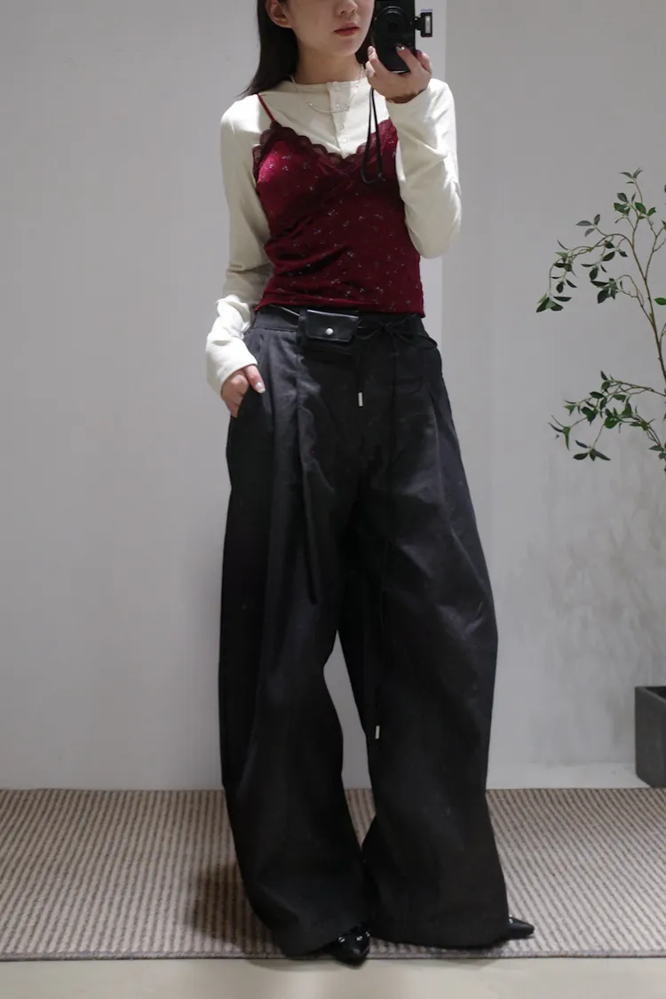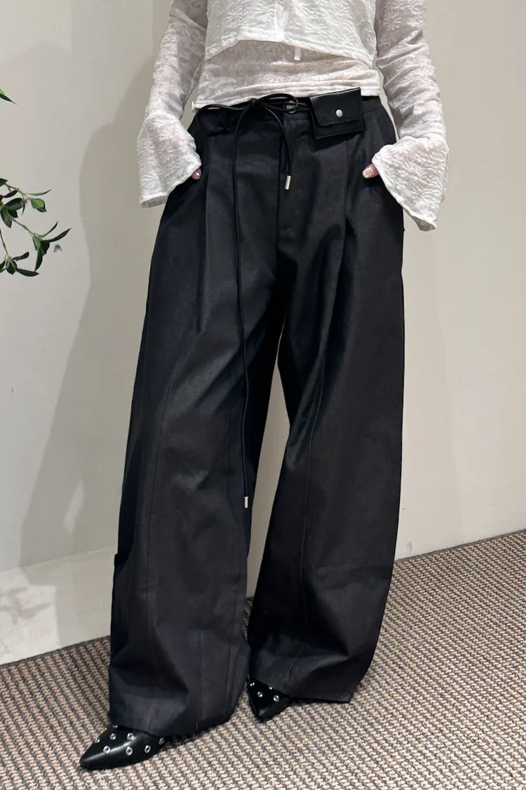 尖端時髦打摺西裝褲附皮繩小腰包