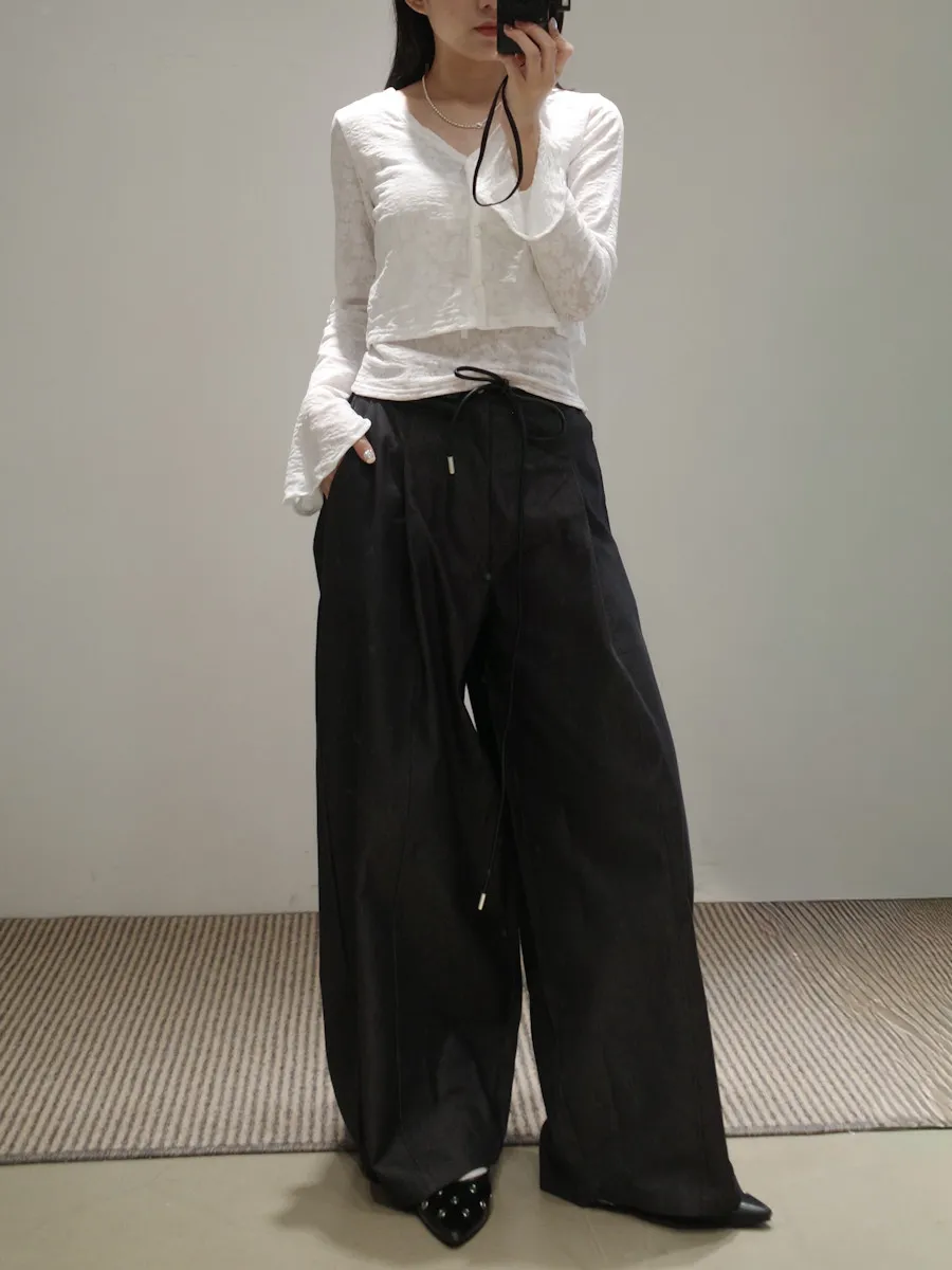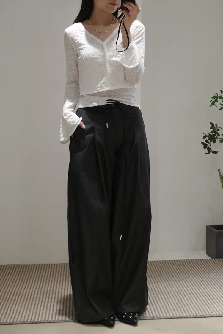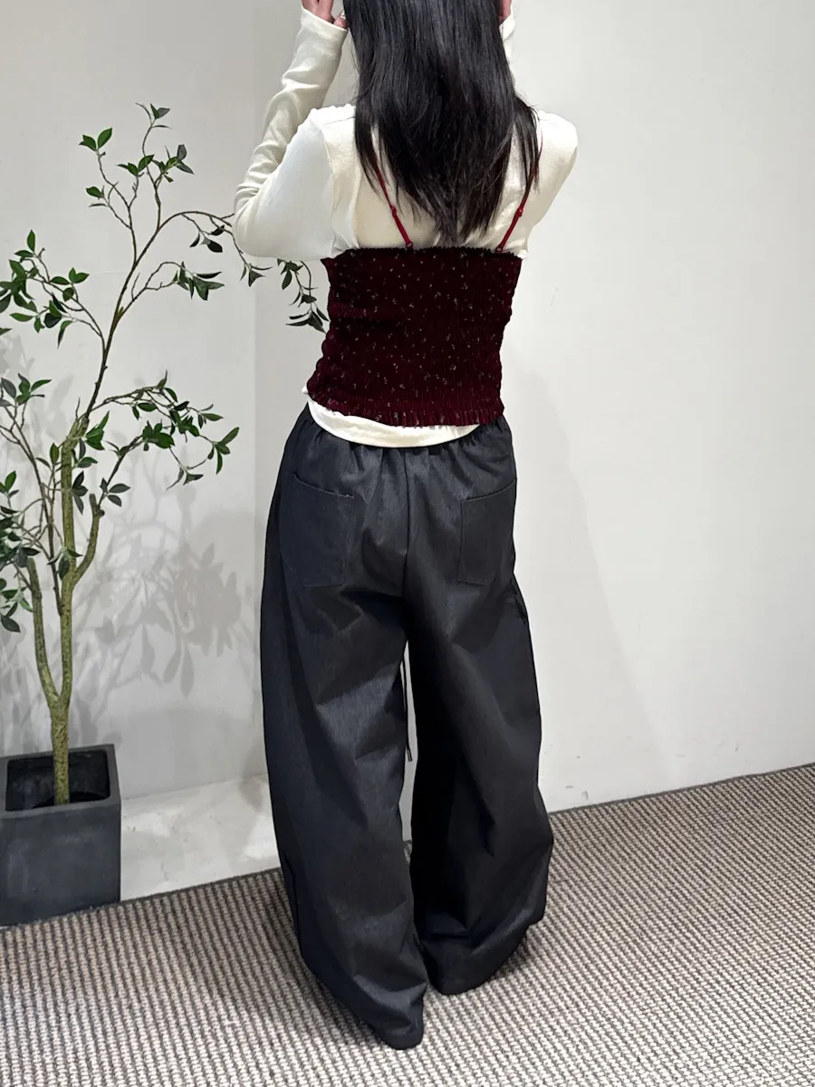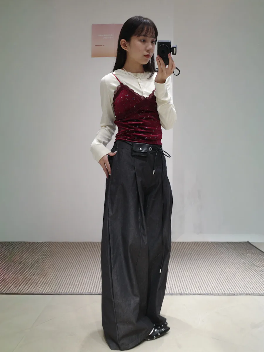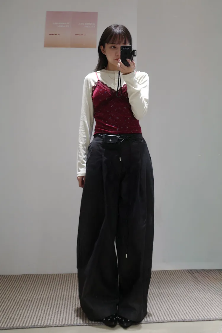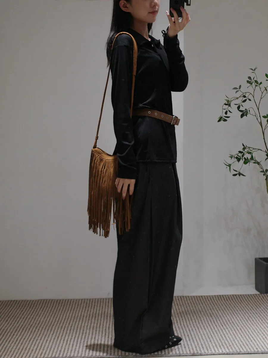 尖端時髦打摺西裝褲附皮繩小腰包