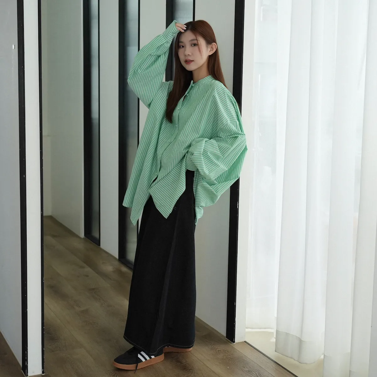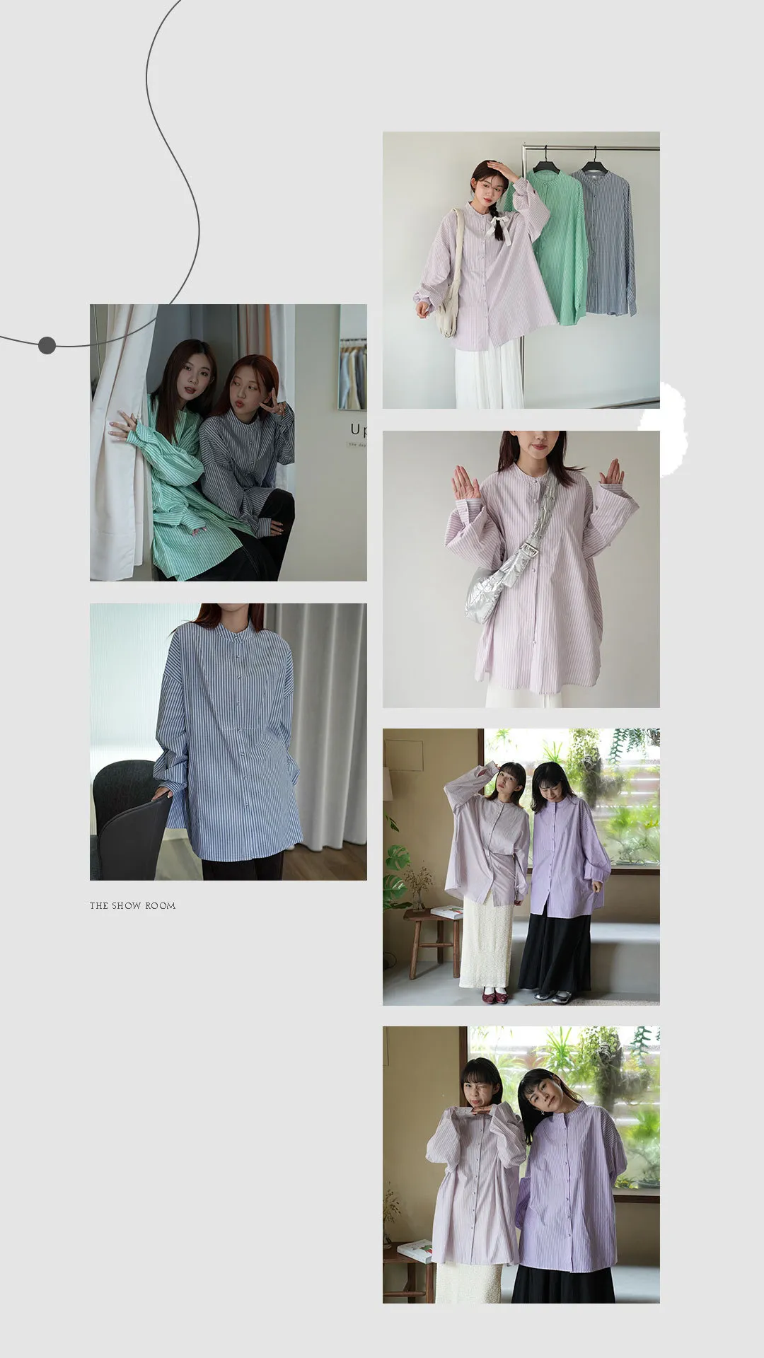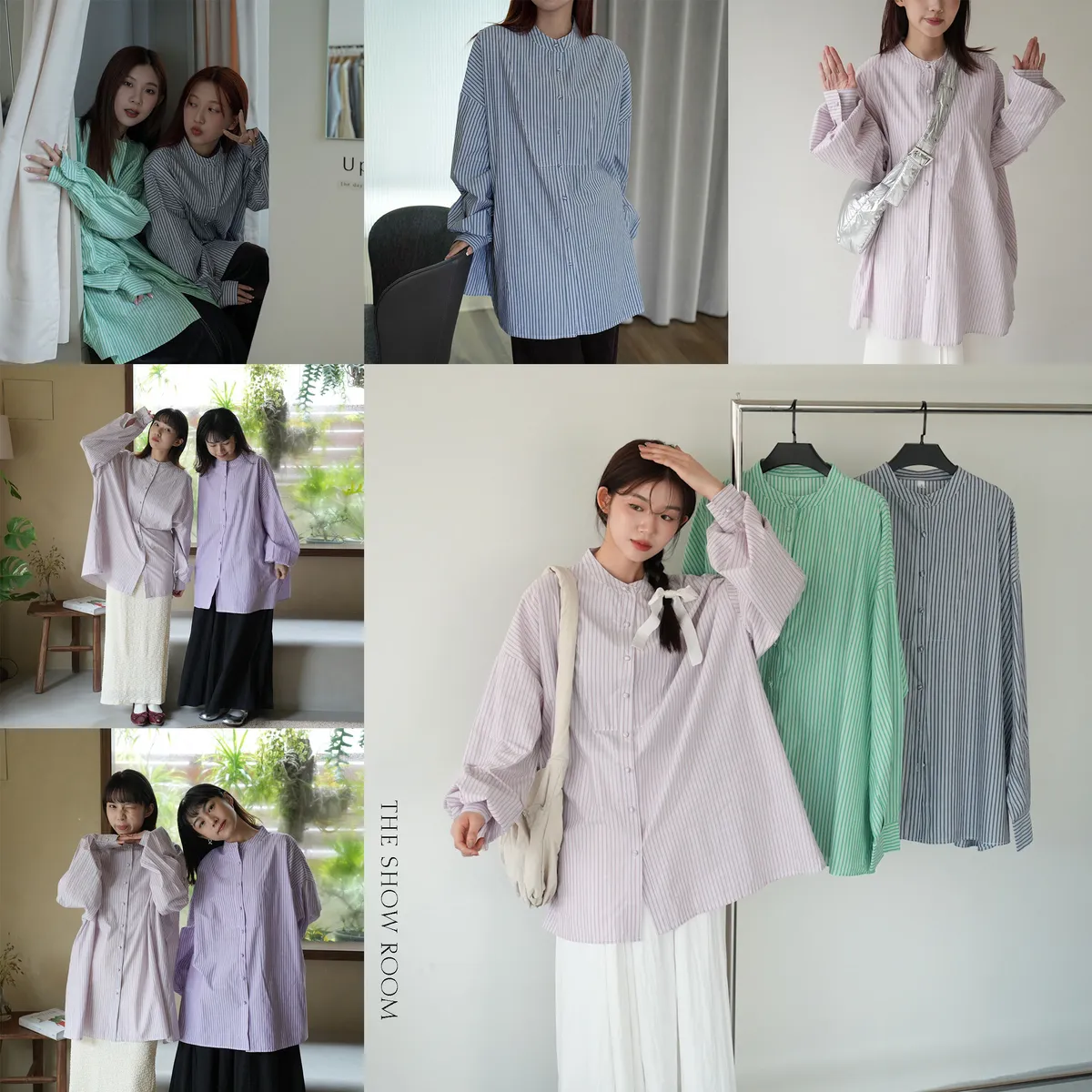 【SHOWROOM MADE】豎條平領襯衫洋裝-CANDY 4color