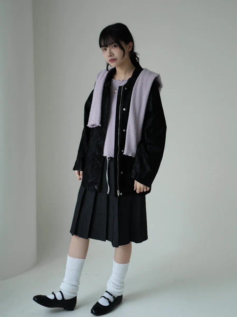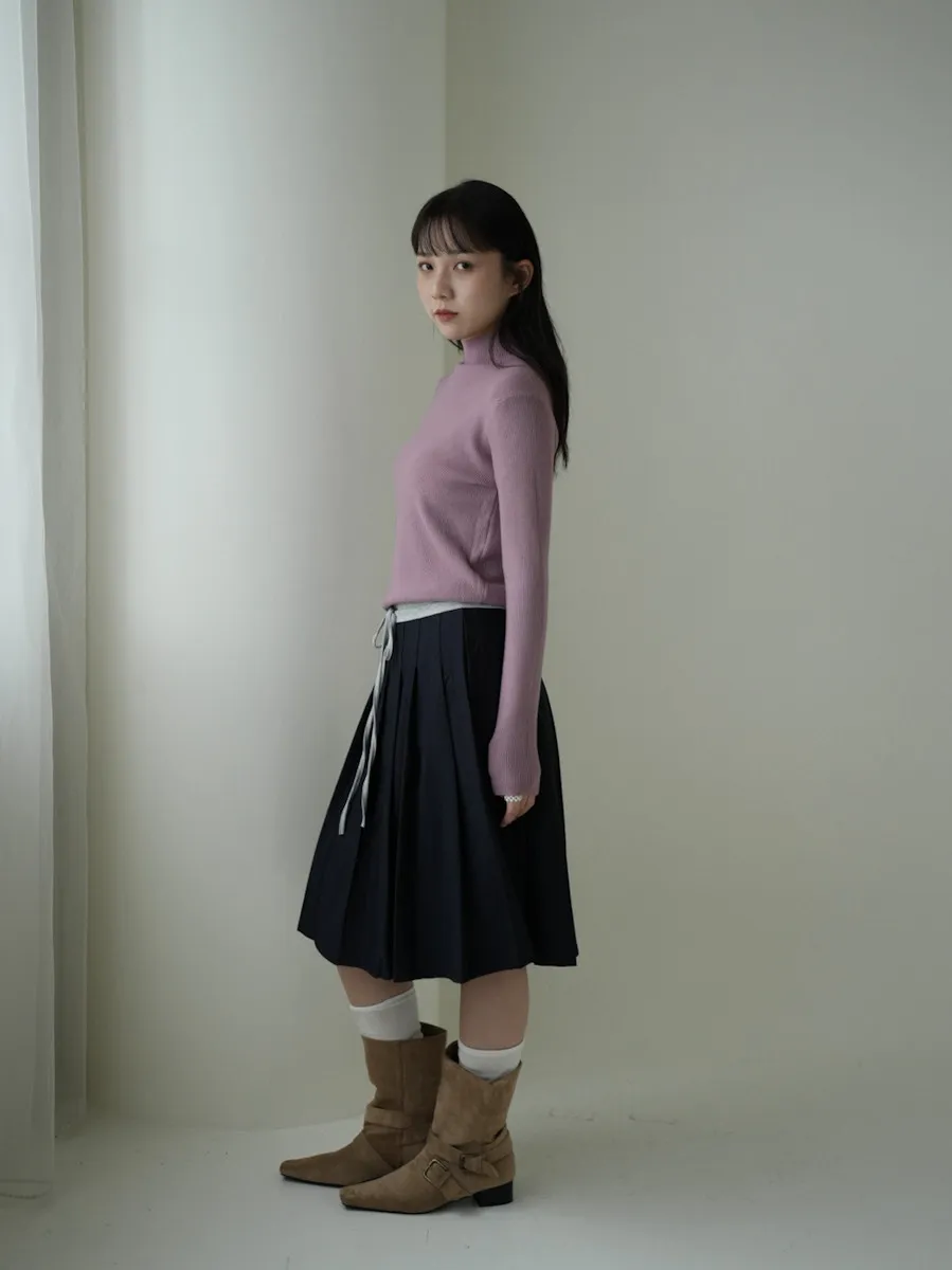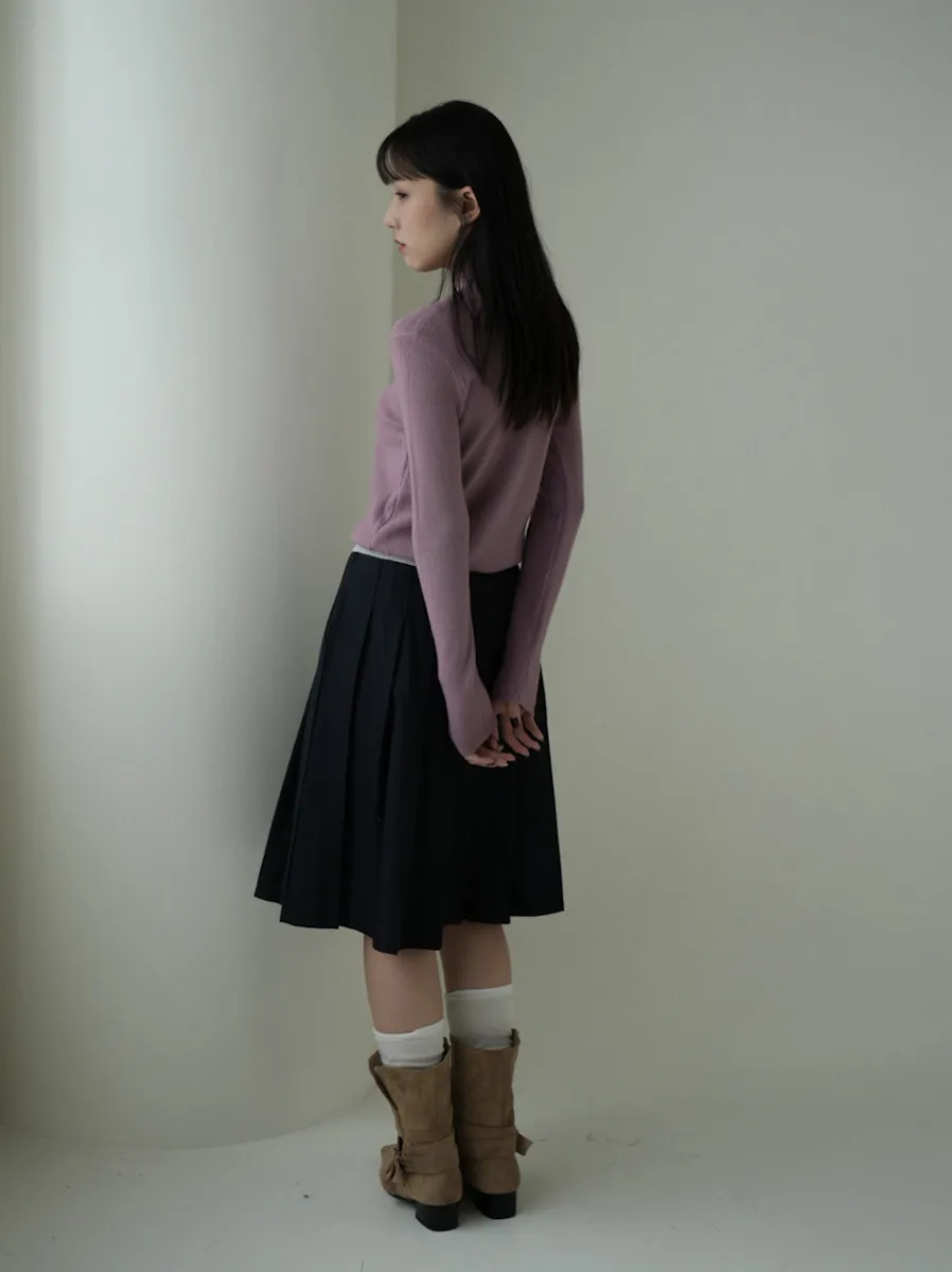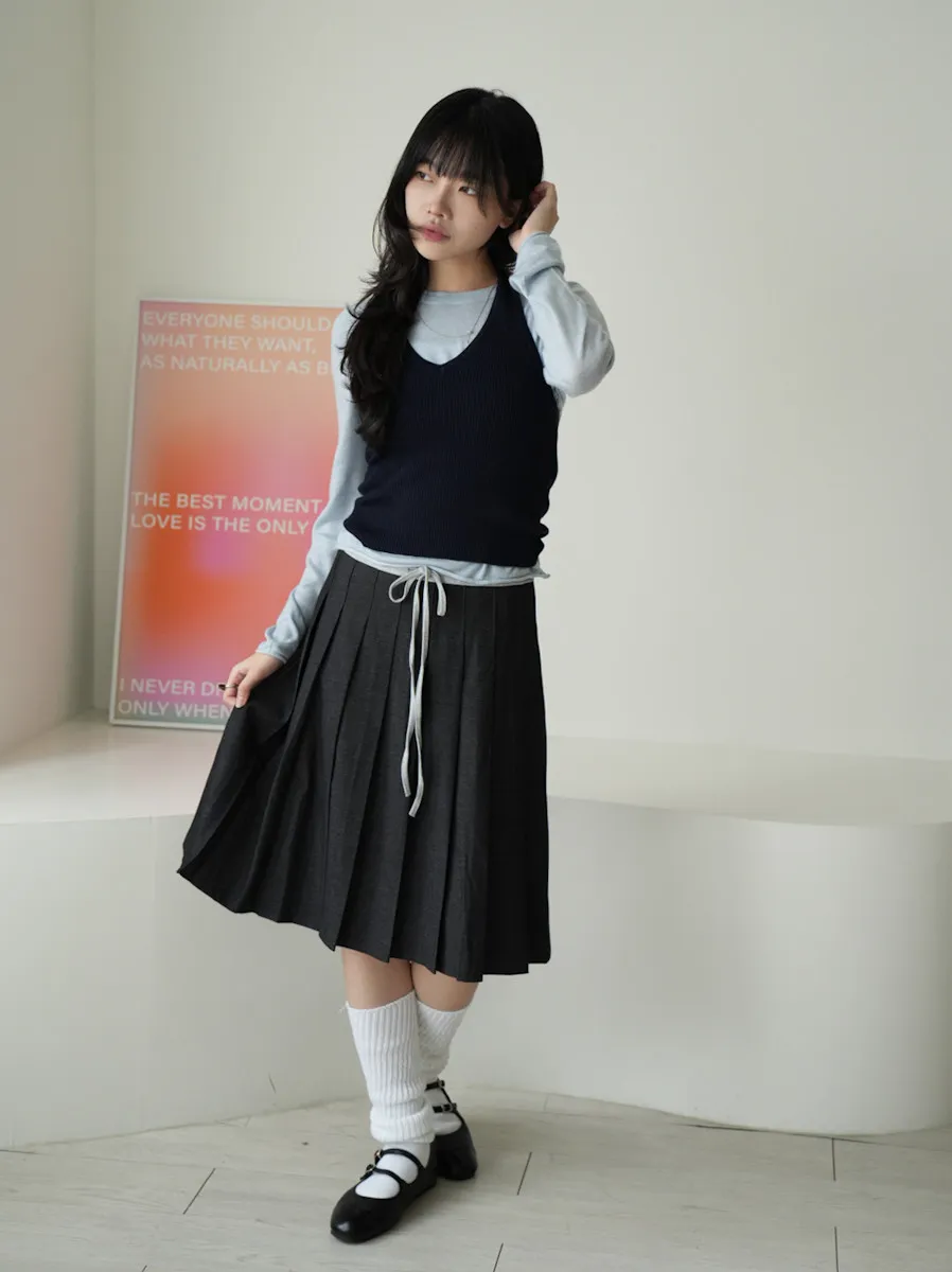 收服百褶 拼接裙頭西裝及膝裙 2color