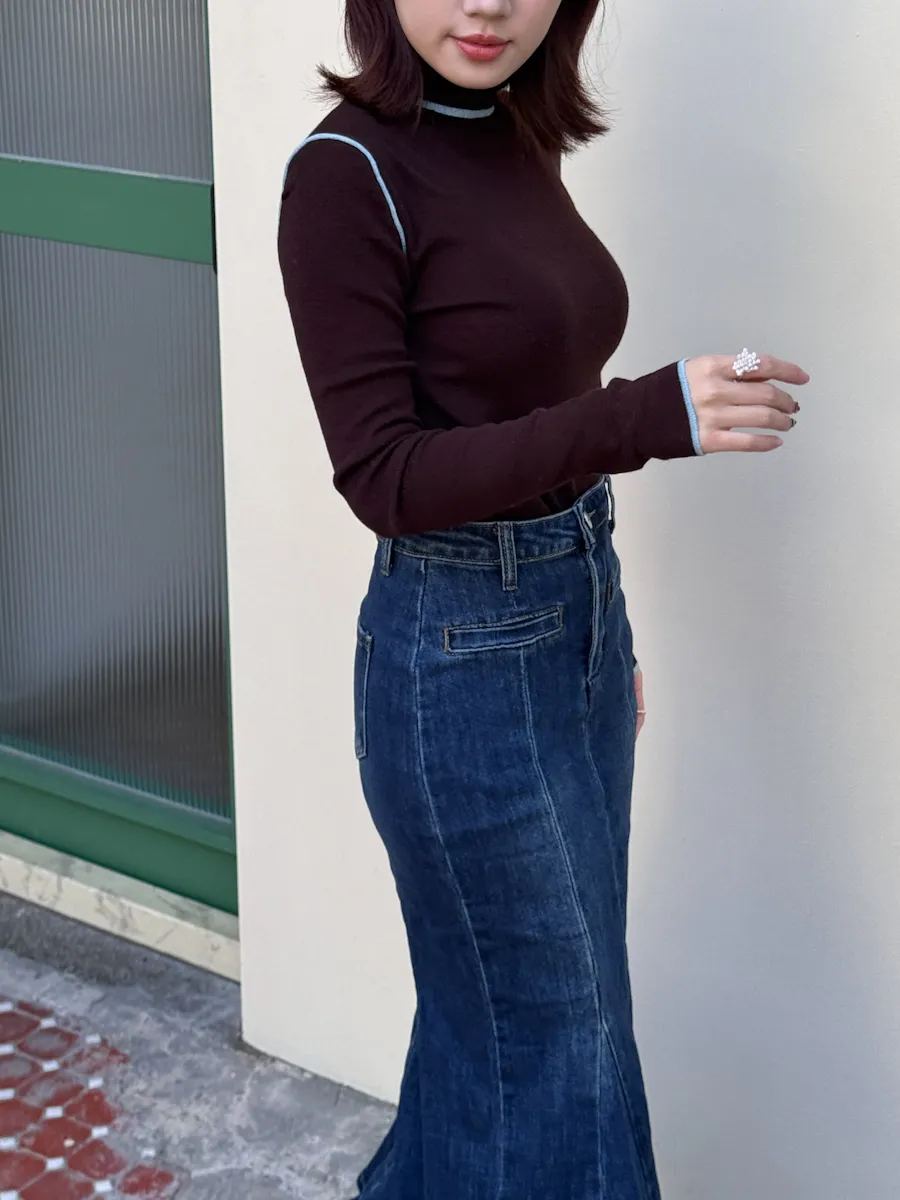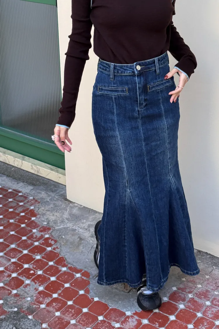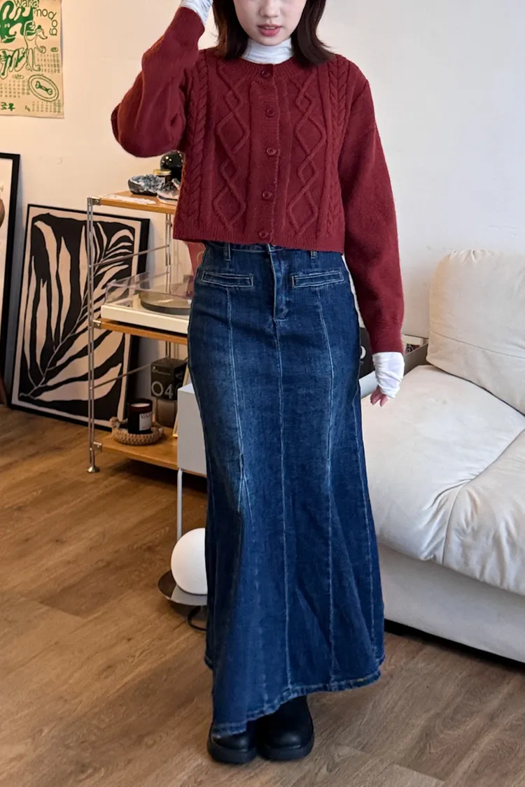 -日系復古水洗舊魚味牛仔長裙 XL1