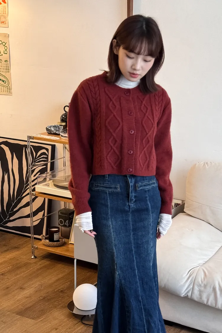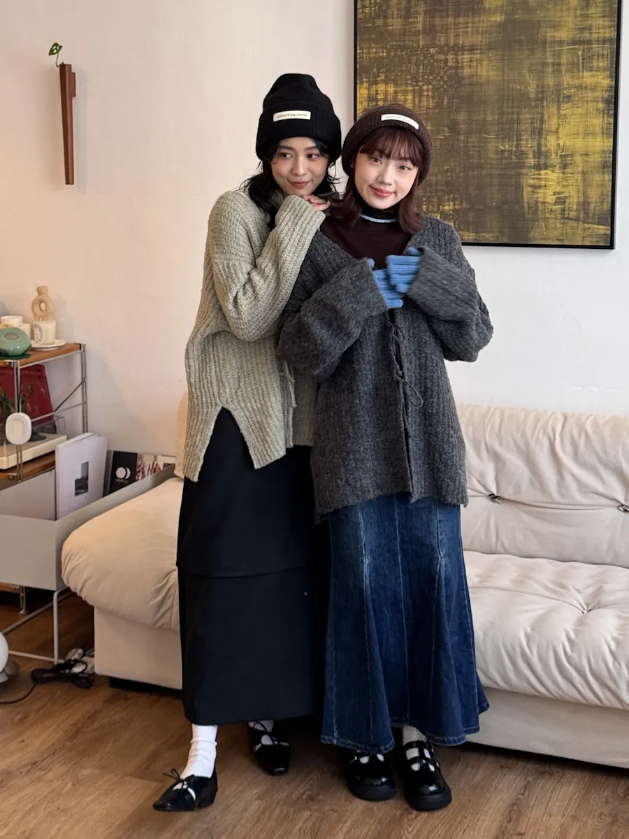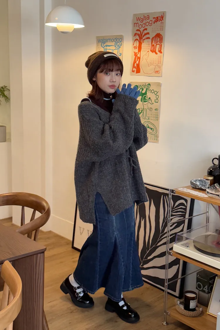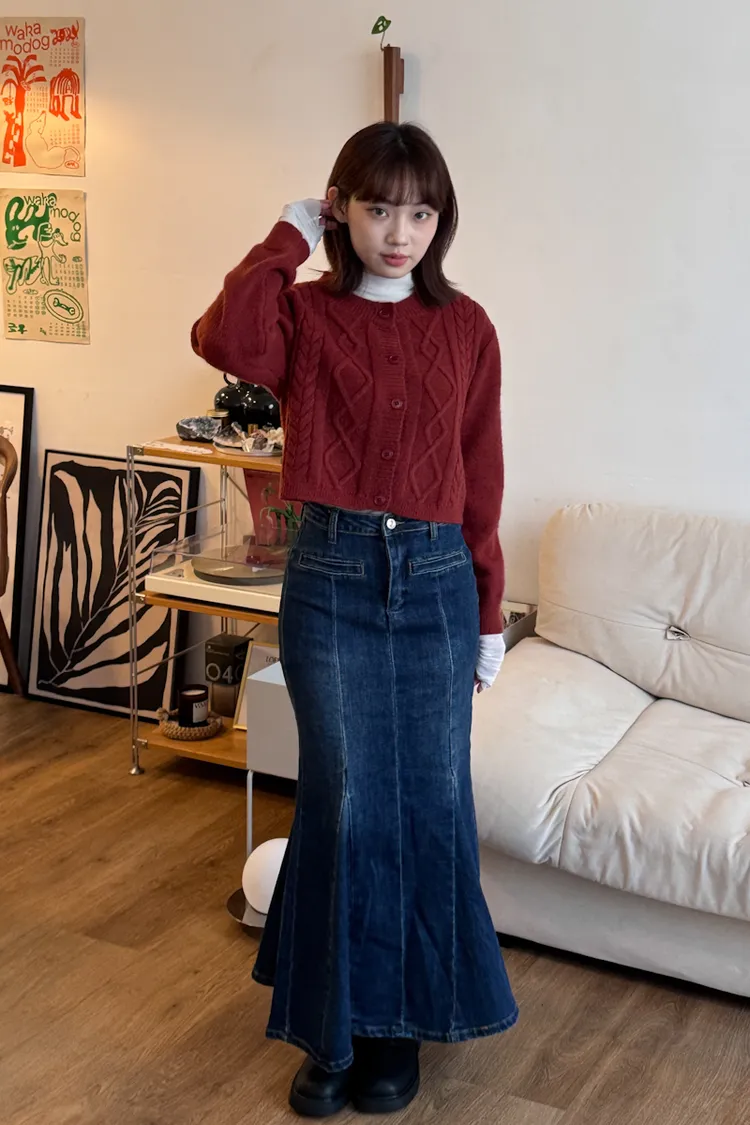 -日系復古水洗舊魚味牛仔長裙 XL1