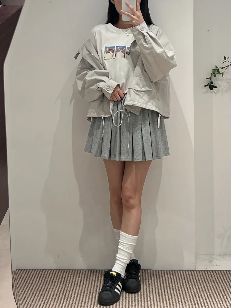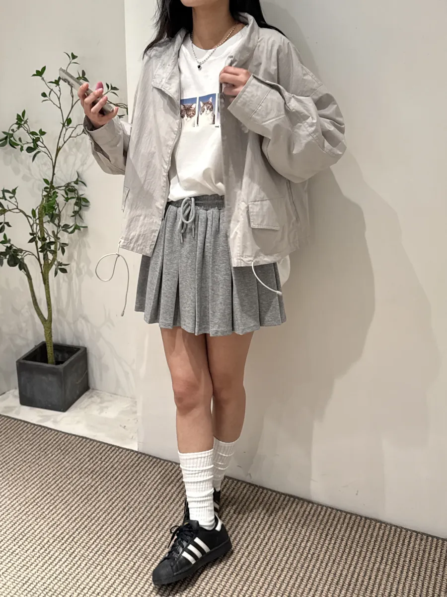 腰有抽繩 百褶棉質褲裙