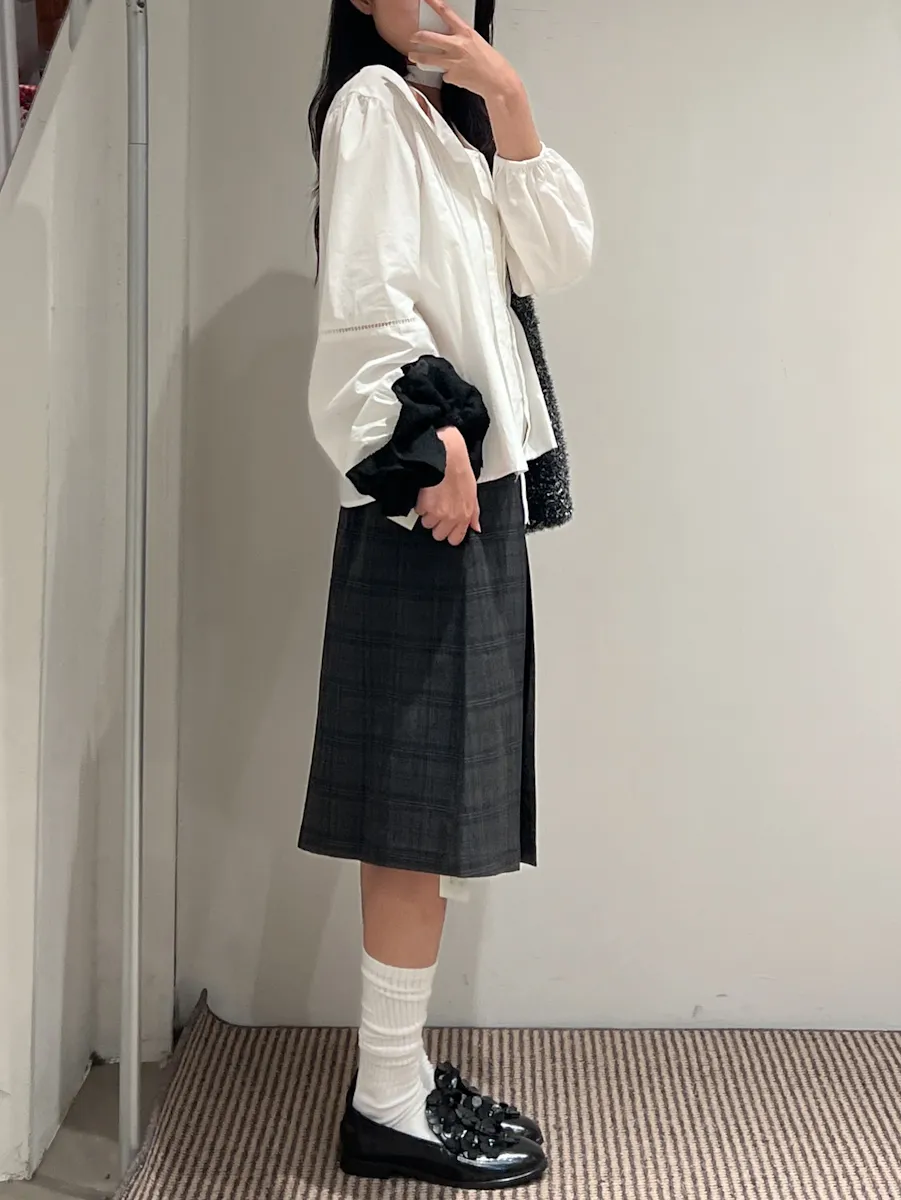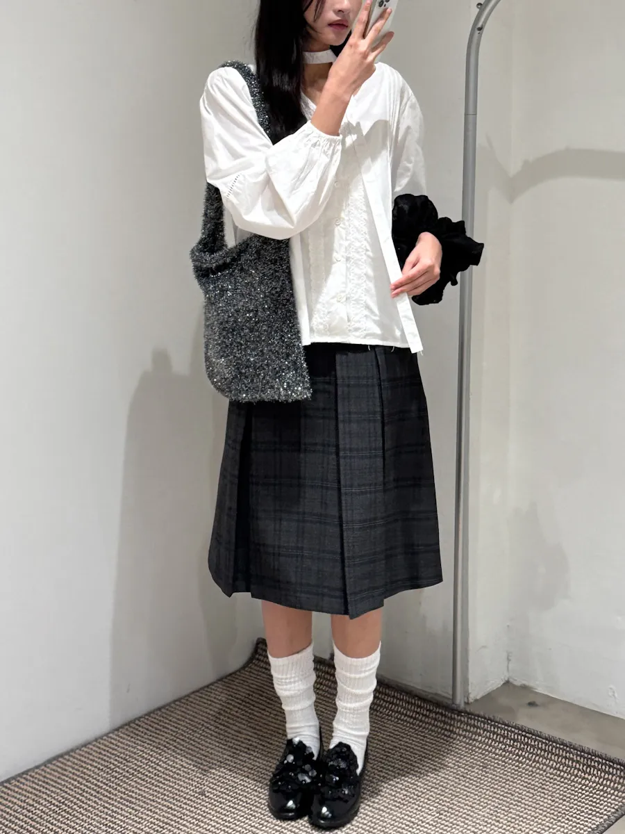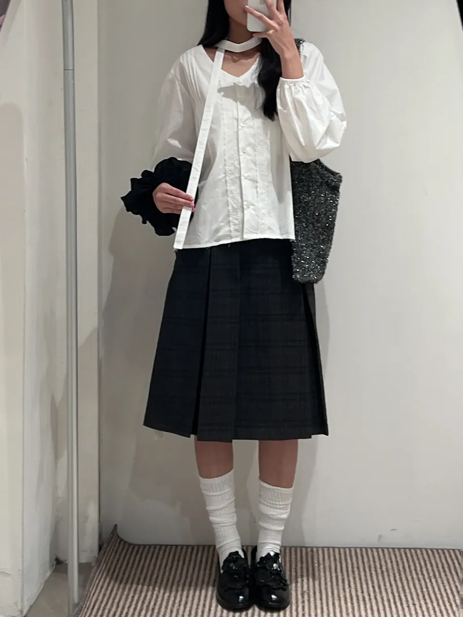 有內裏,只有正面打摺,腰後鬆緊帶,側邊隱形拉鍊