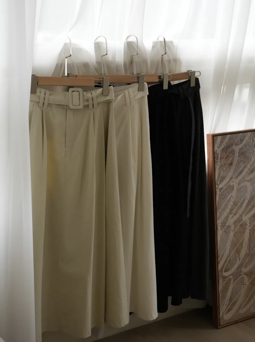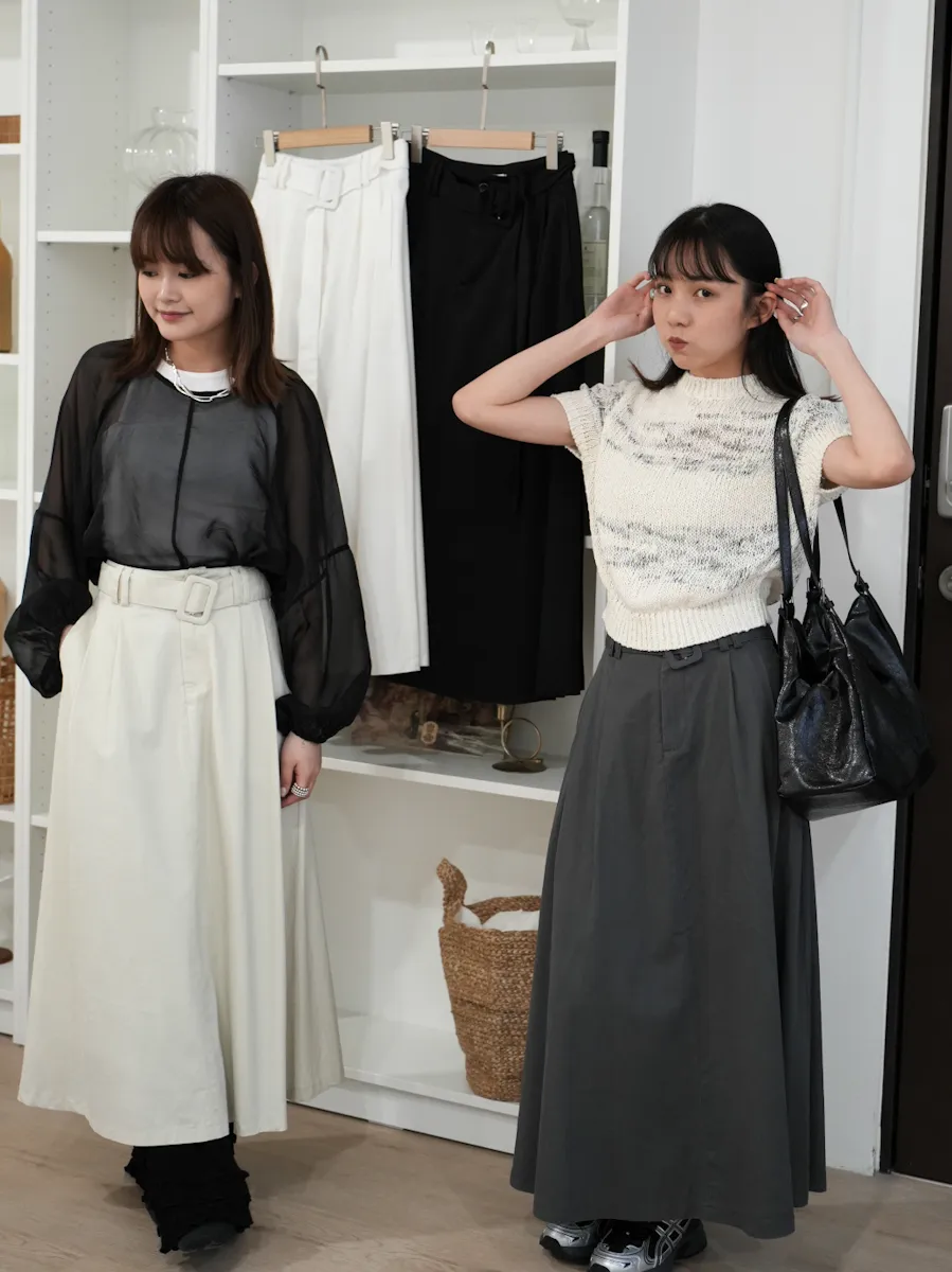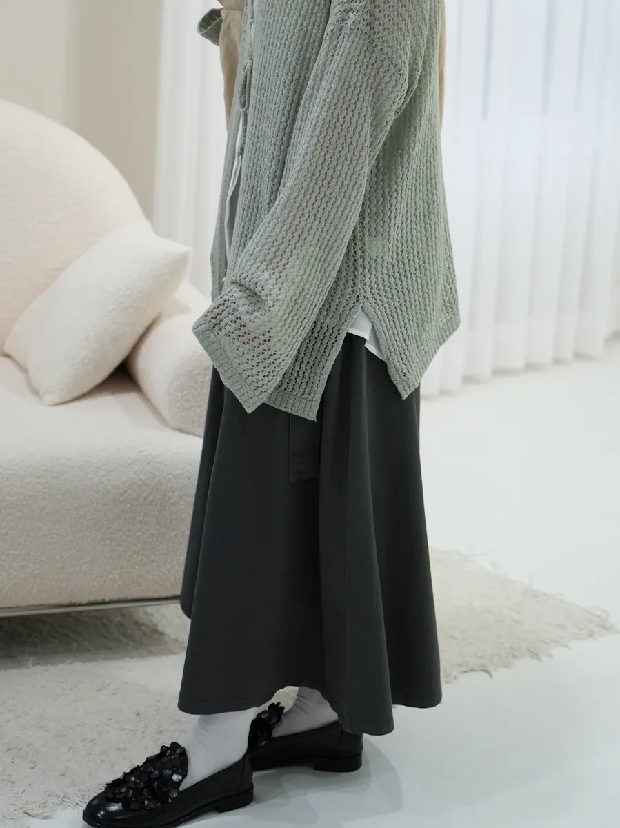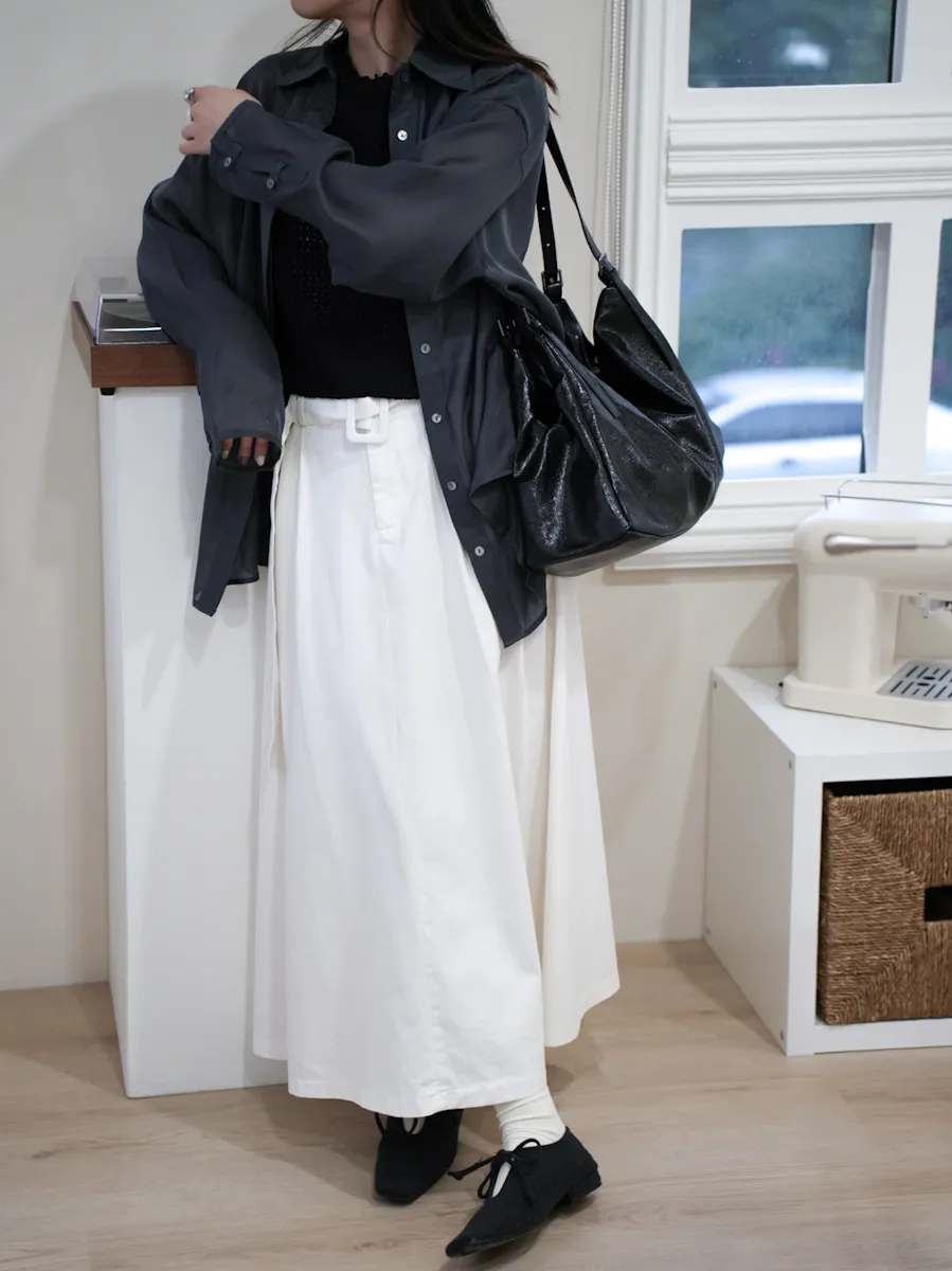麻豆狠喜歡 垂墜西裝布傘襬附皮帶長裙 4color