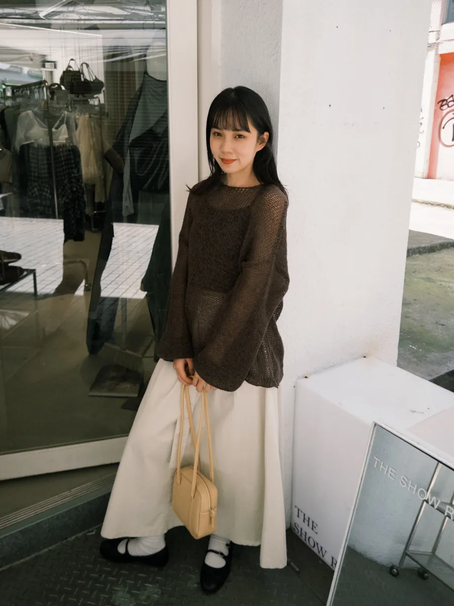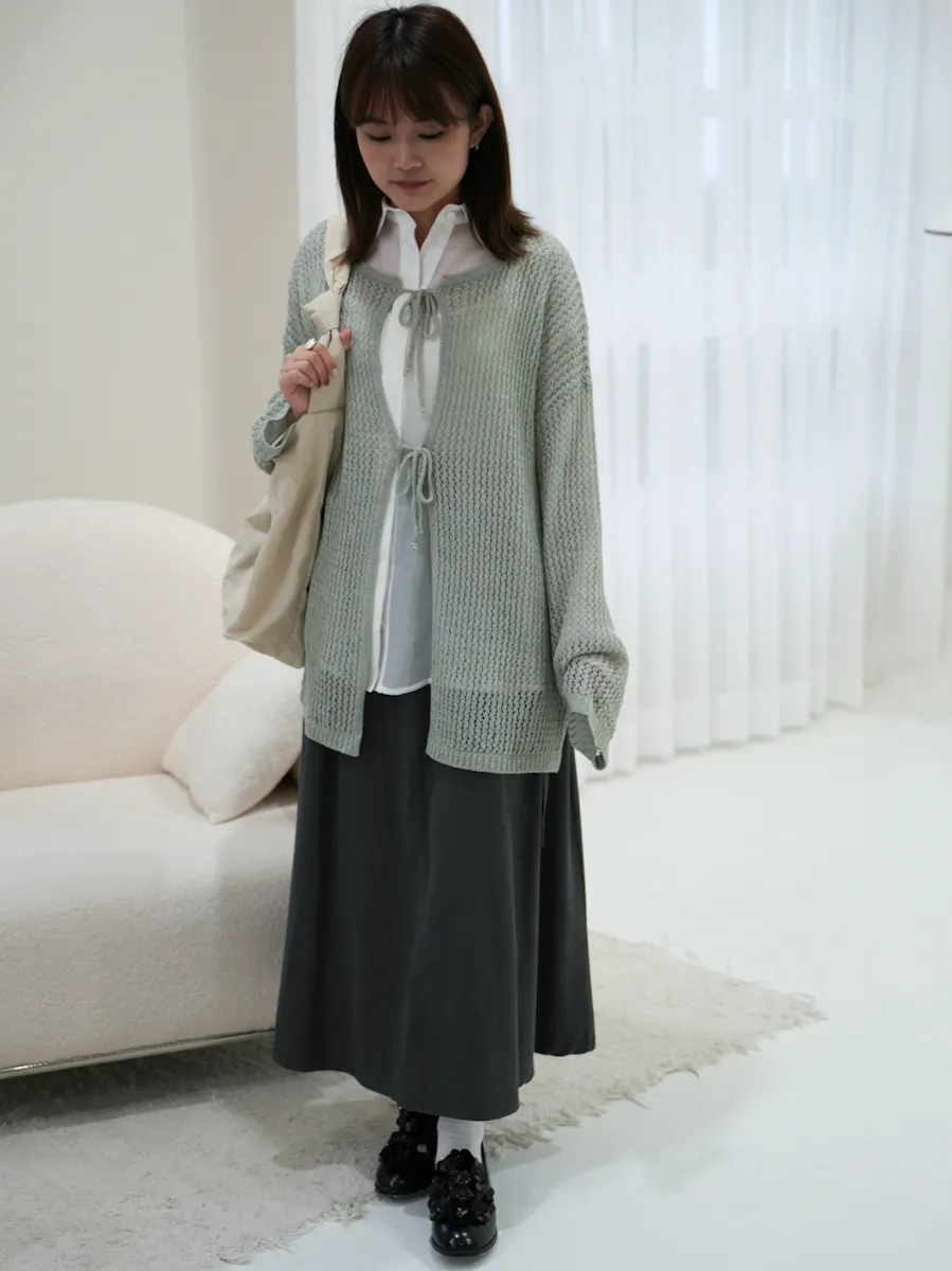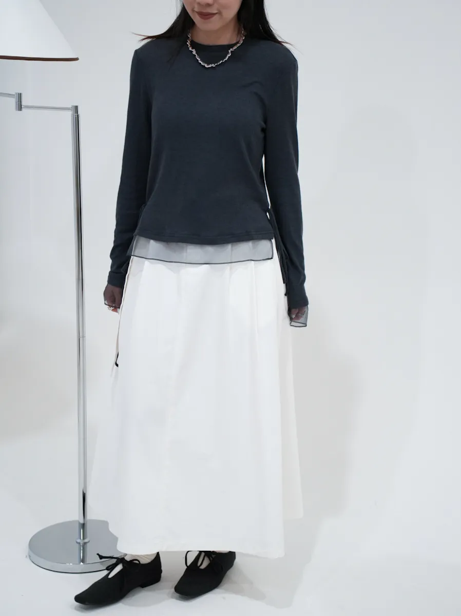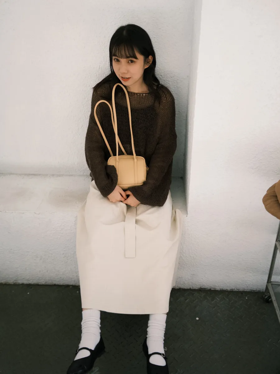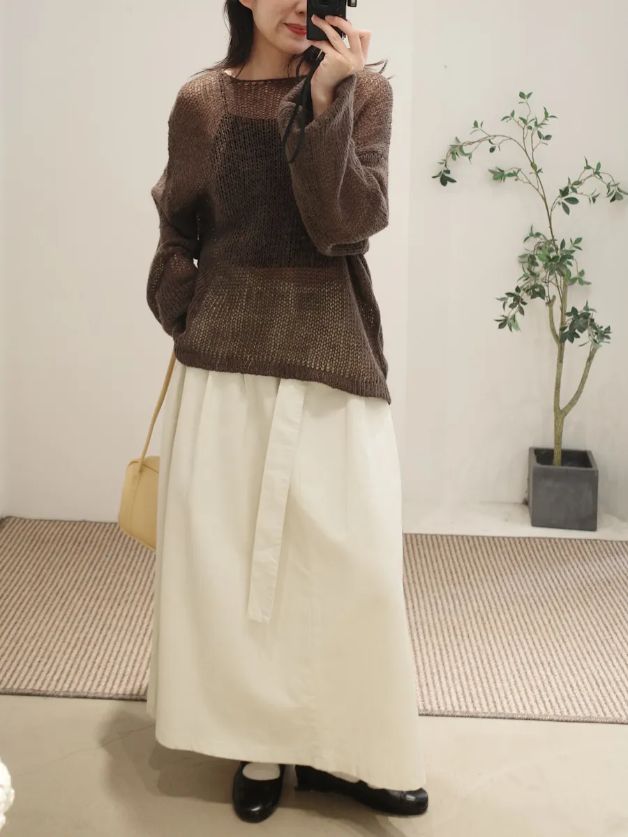 麻豆狠喜歡 垂墜西裝布傘襬附皮帶長裙 4color