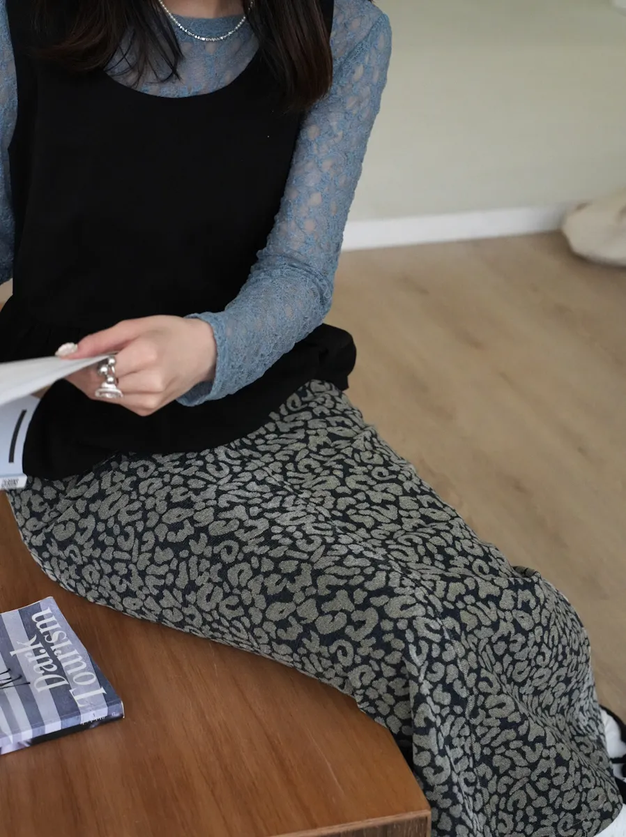 專櫃訂製款 特殊印花紋理挺版長裙 2color