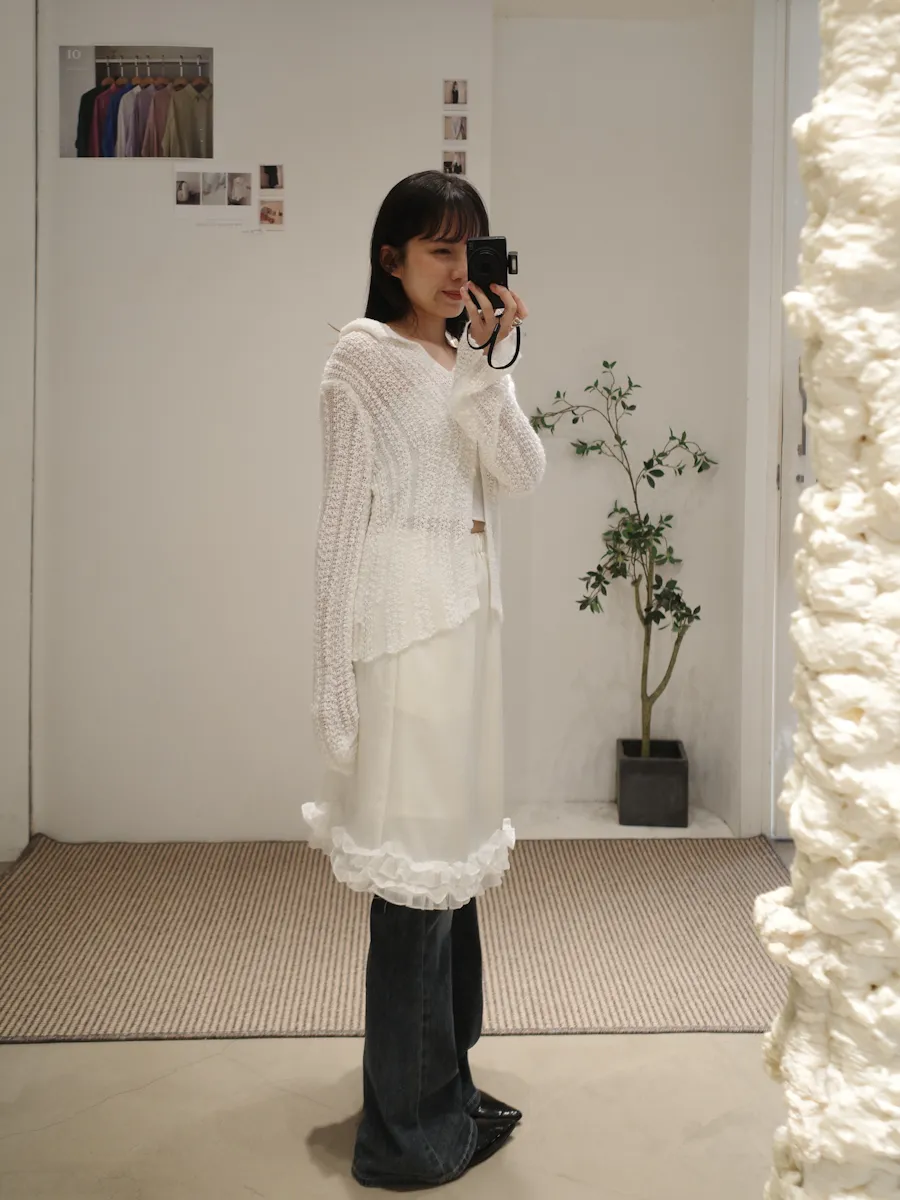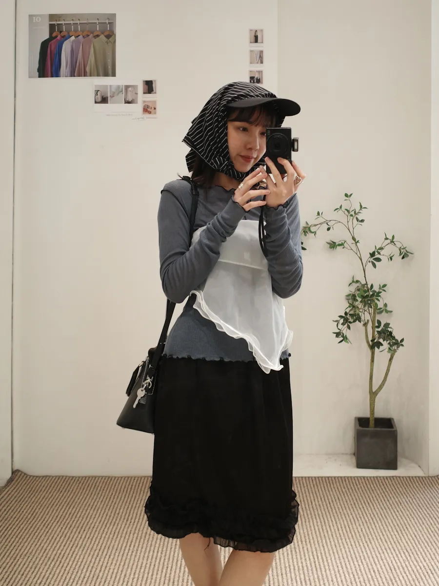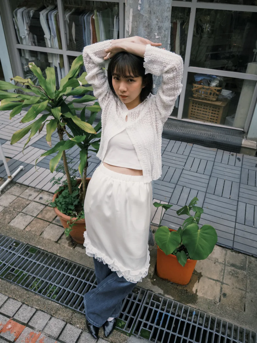 絲綢感光澤柔軟滾邊泡泡蕾絲五分長裙 2color