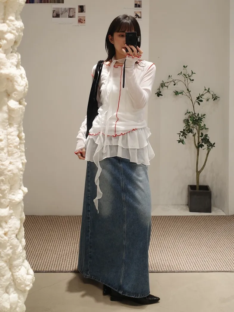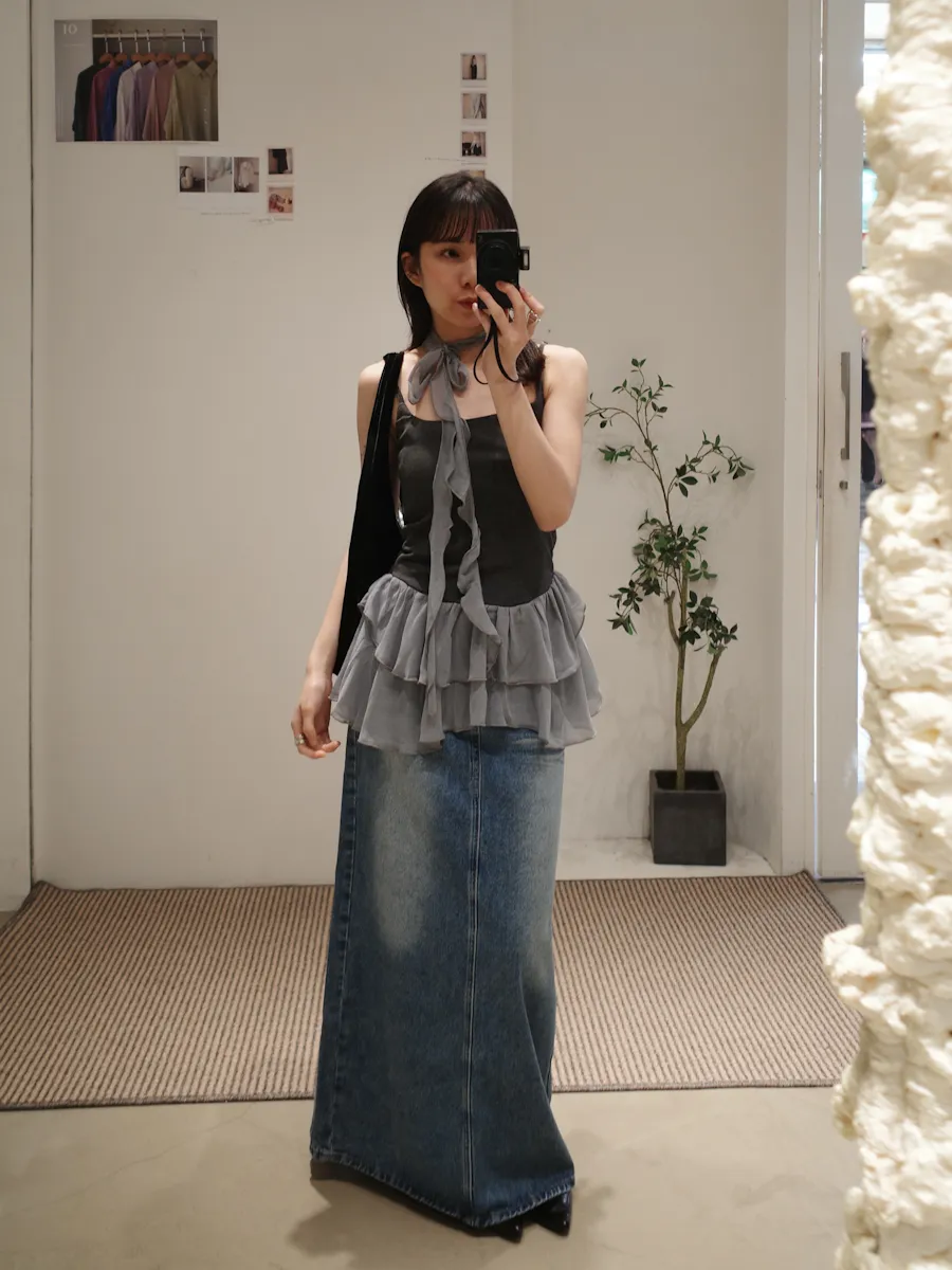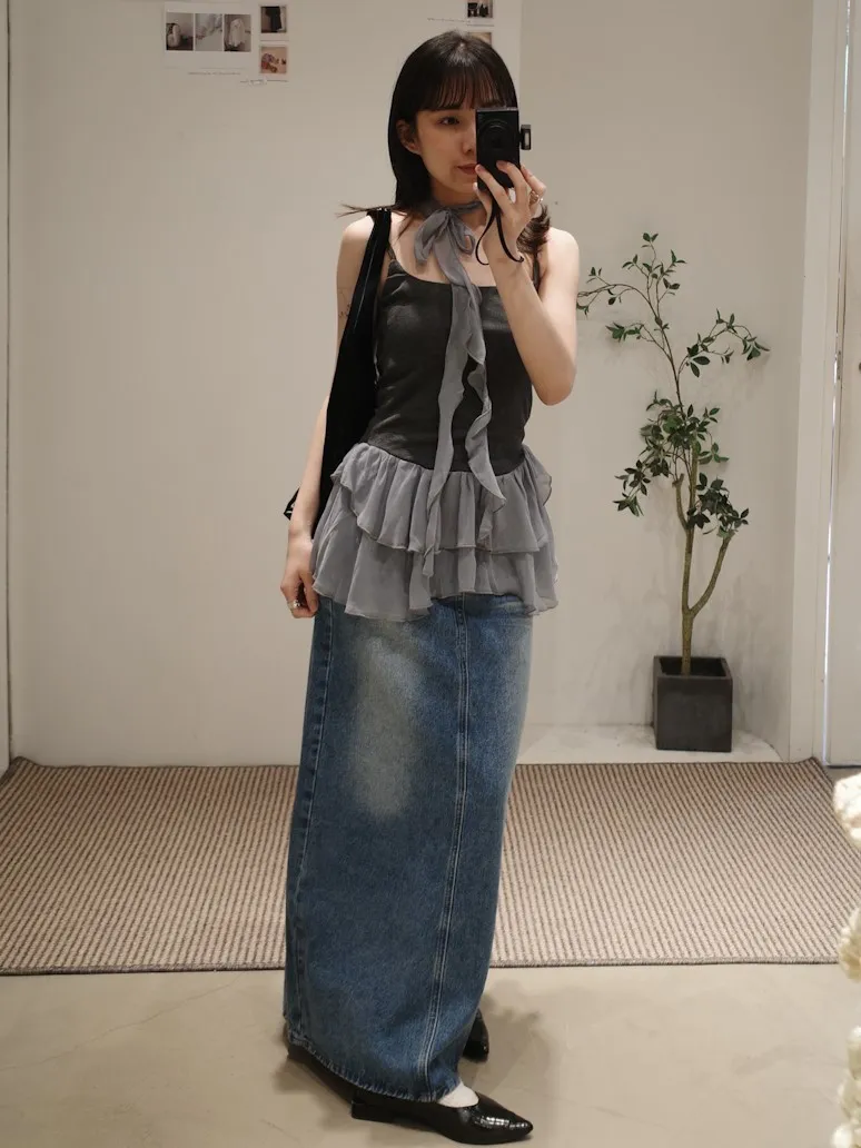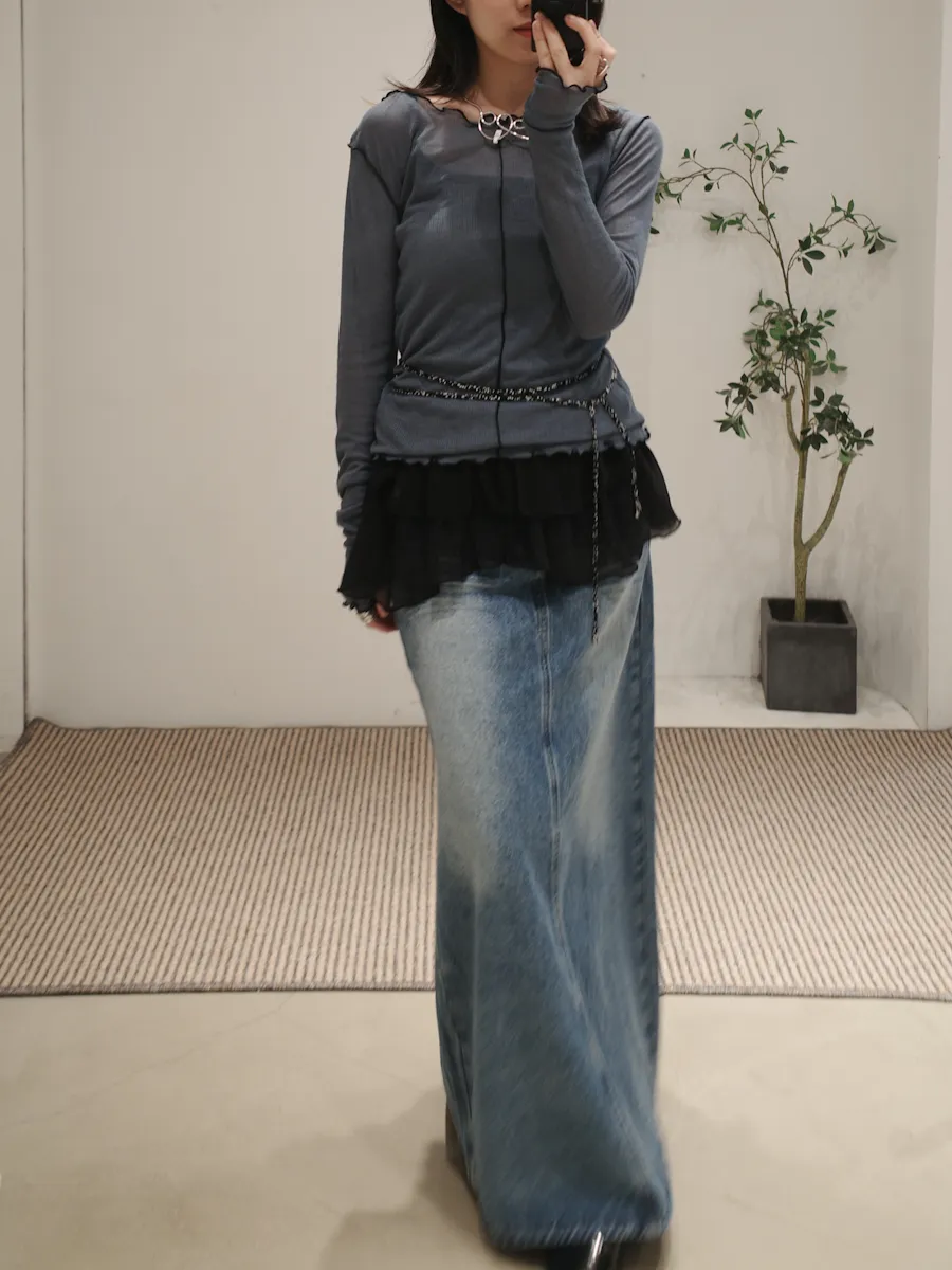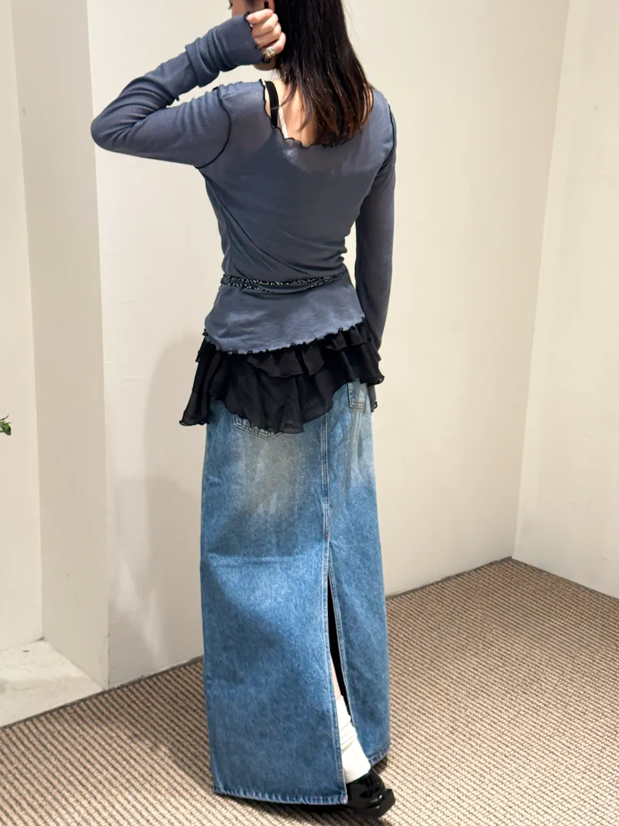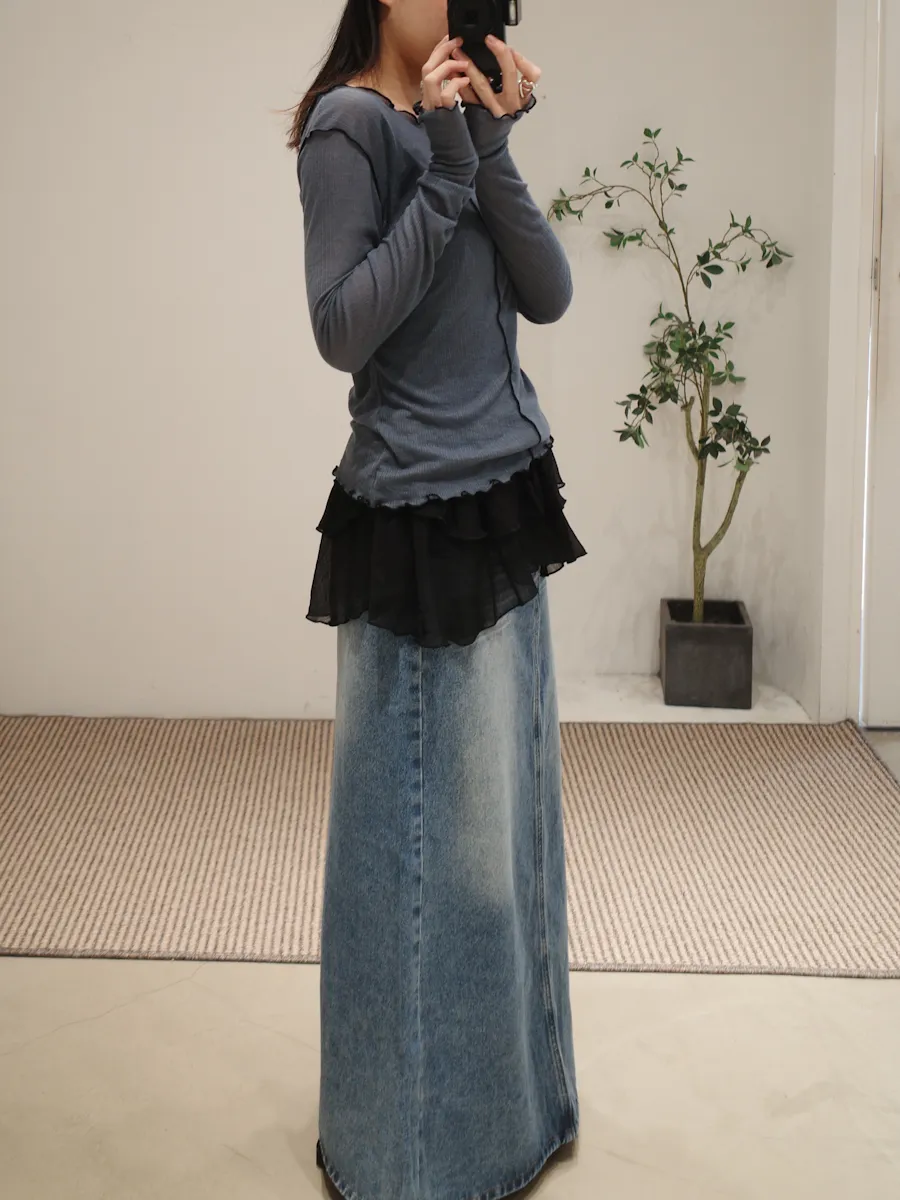 很久沒有這某挺的後開衩牛仔長裙了 2color