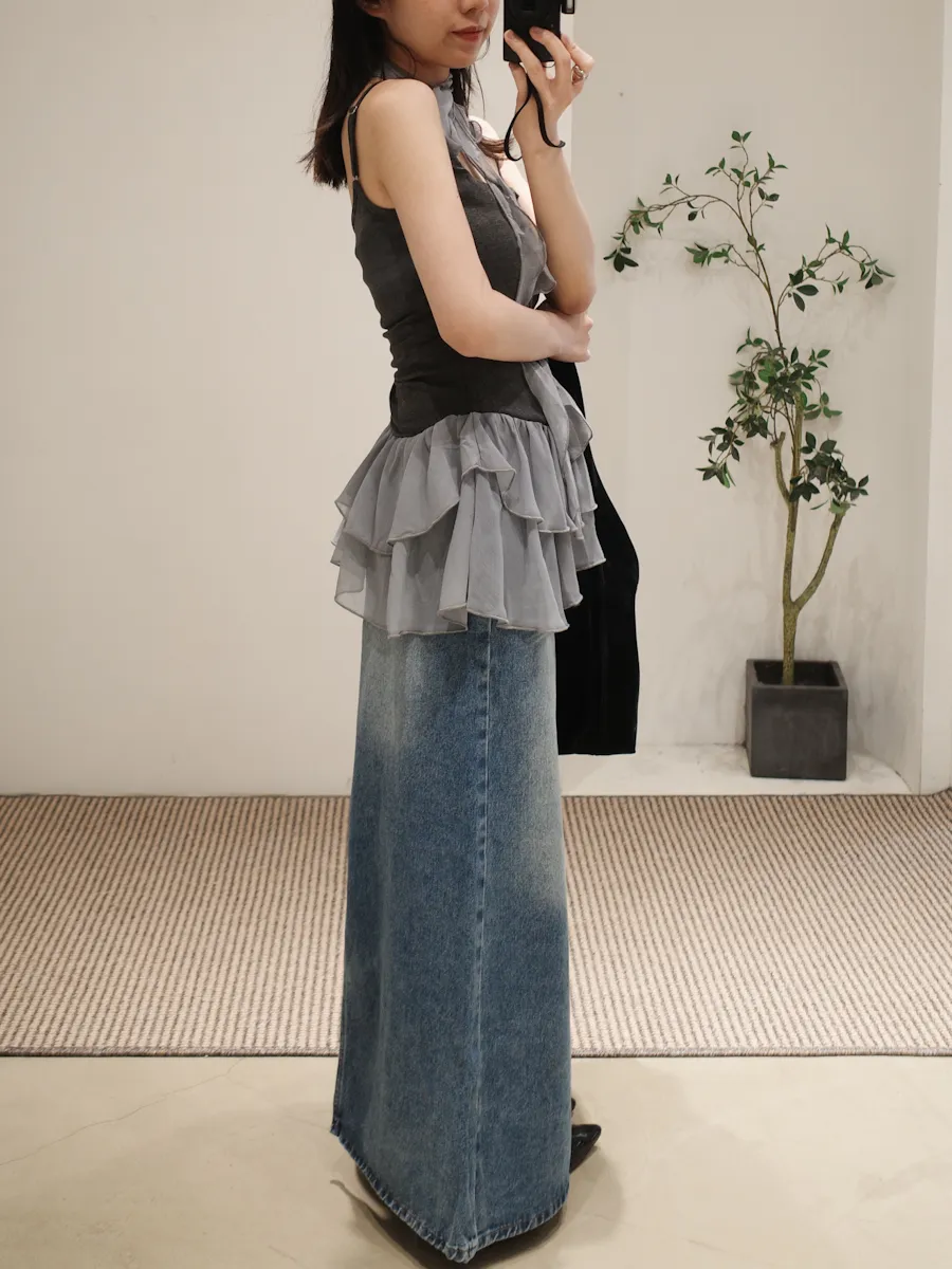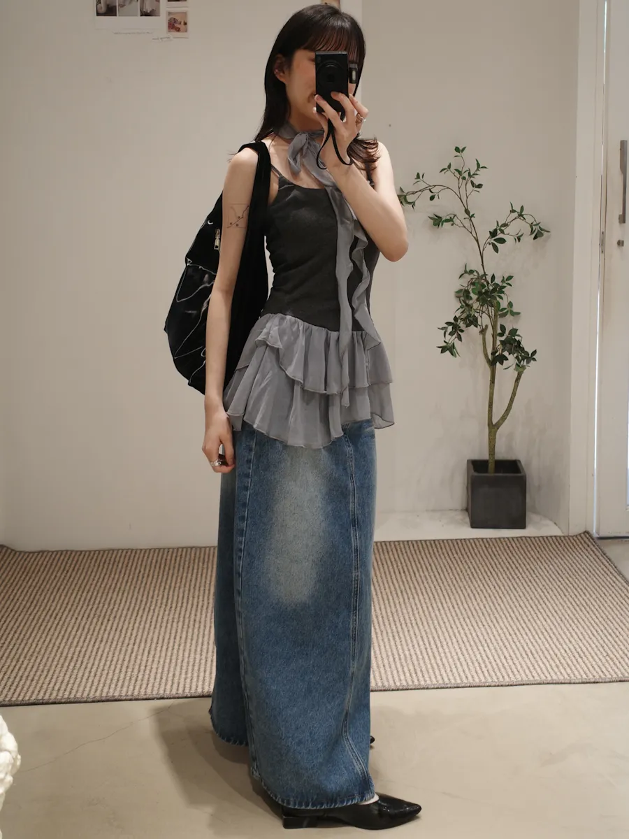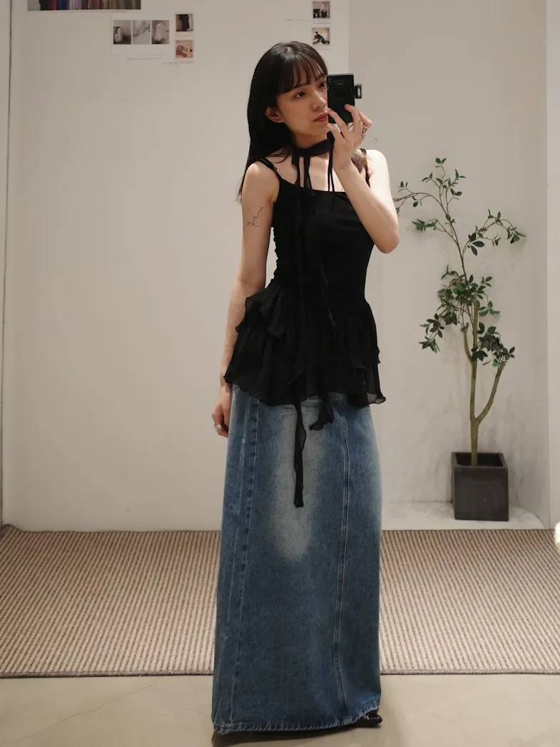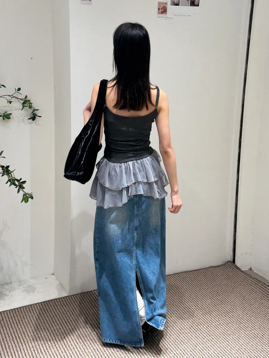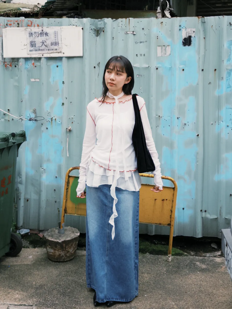 很久沒有這某挺的後開衩牛仔長裙了 2color