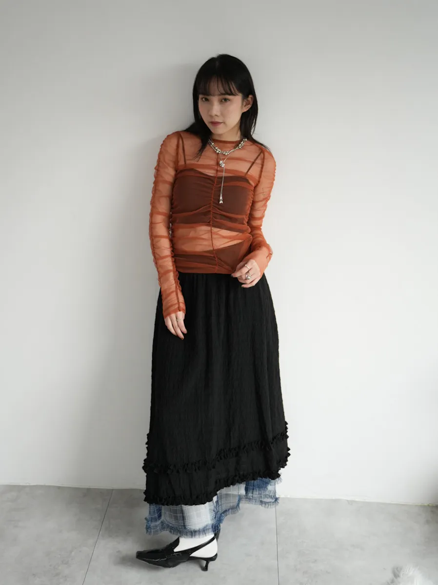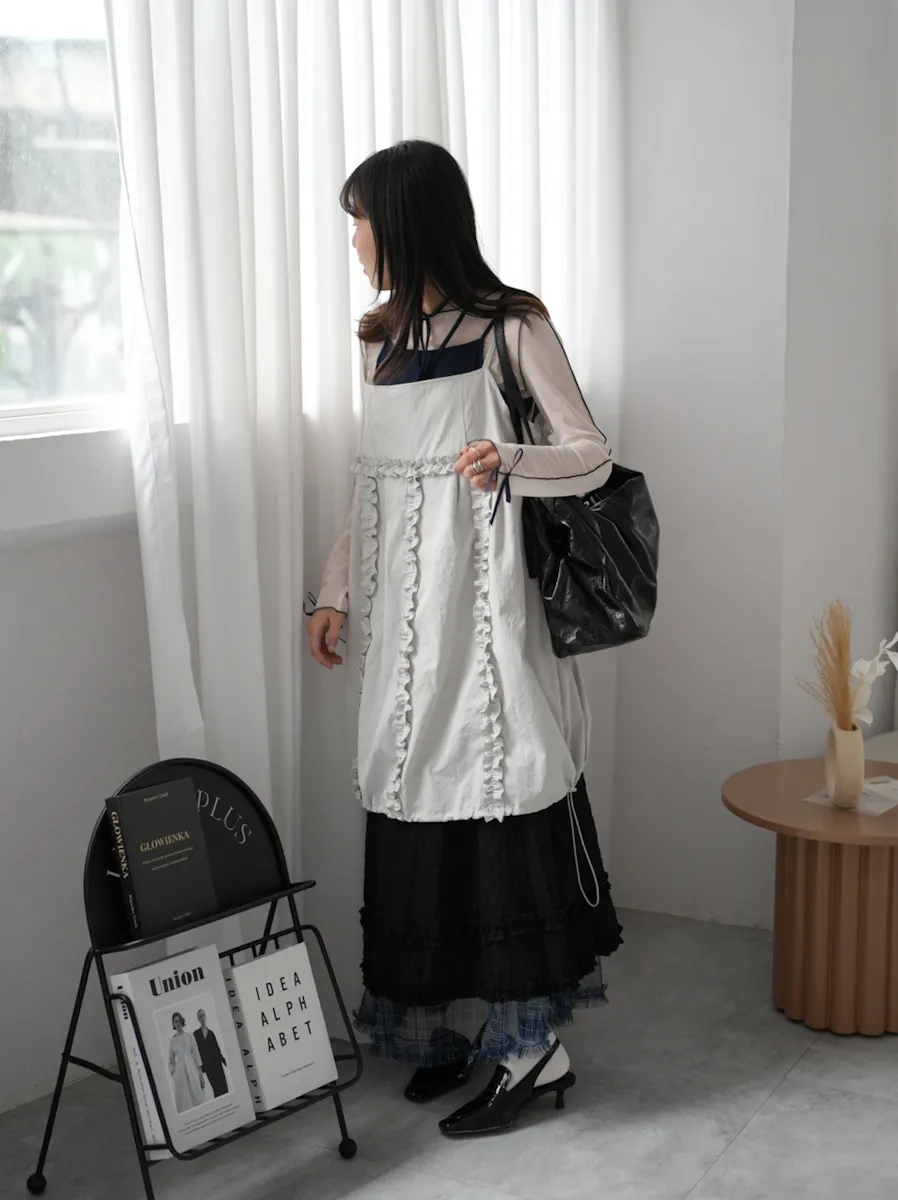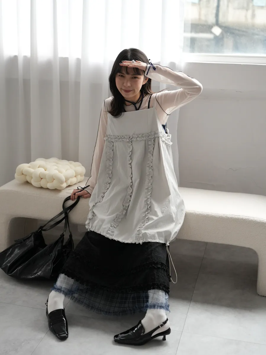 卡哇伊 拼格紋紗下擺散狀長裙 3color