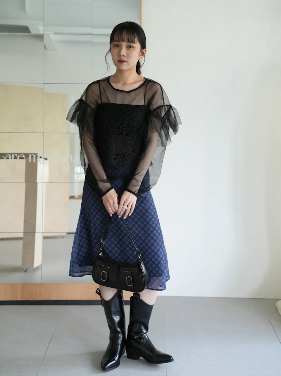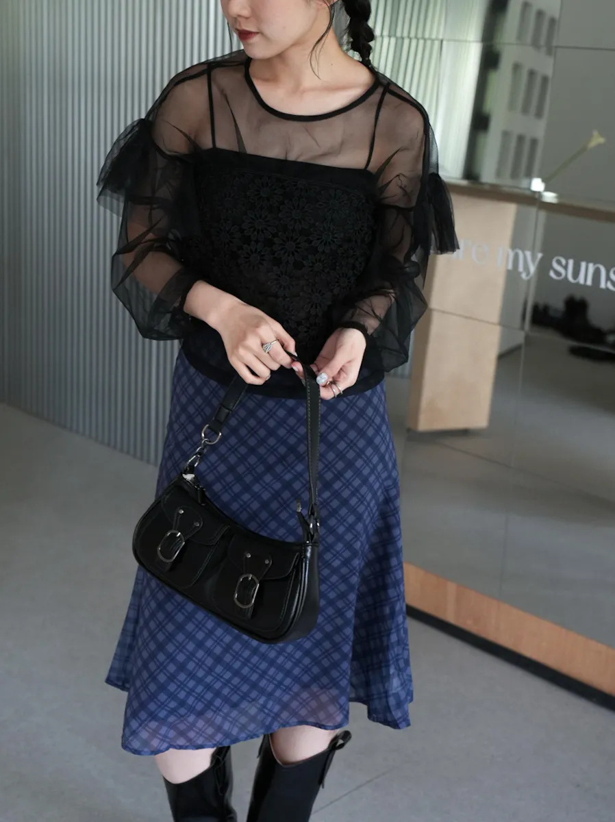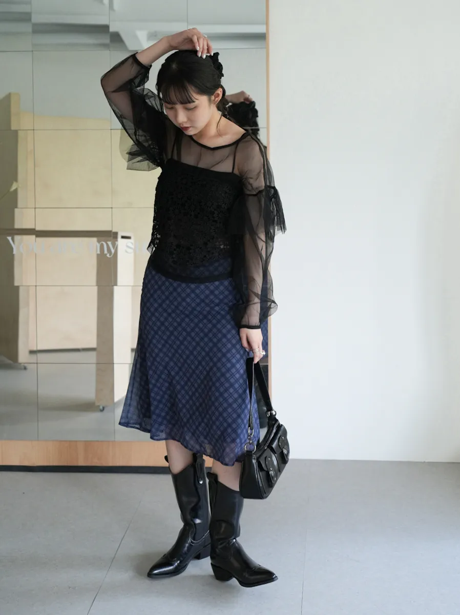 【出新色】關於黛拉的愛情故事 格紋雪紡半身裙 4color