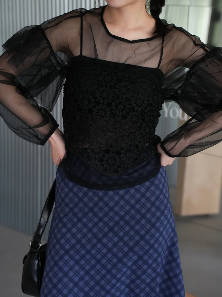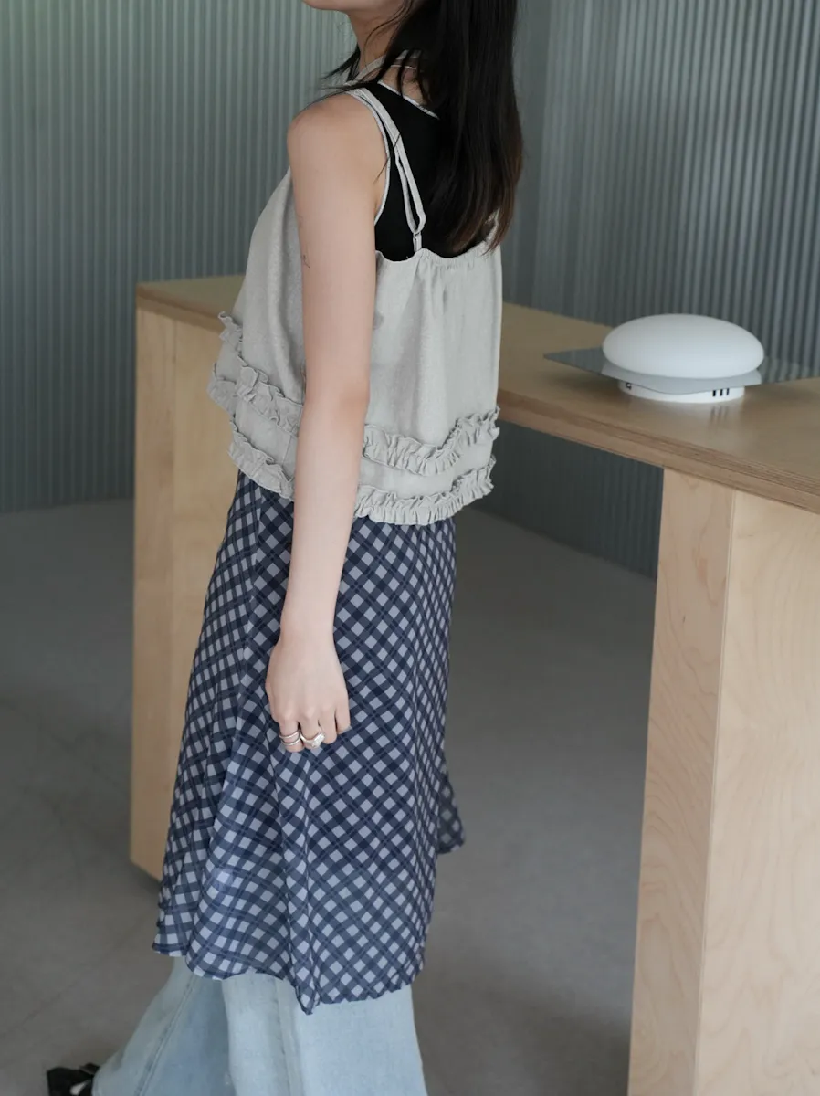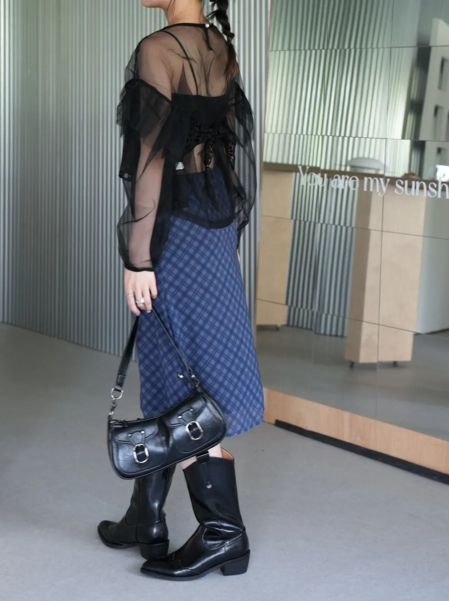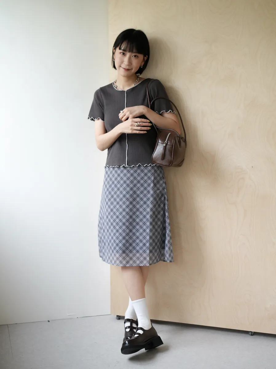 【出新色】關於黛拉的愛情故事 格紋雪紡半身裙 4color