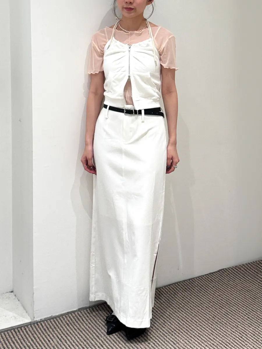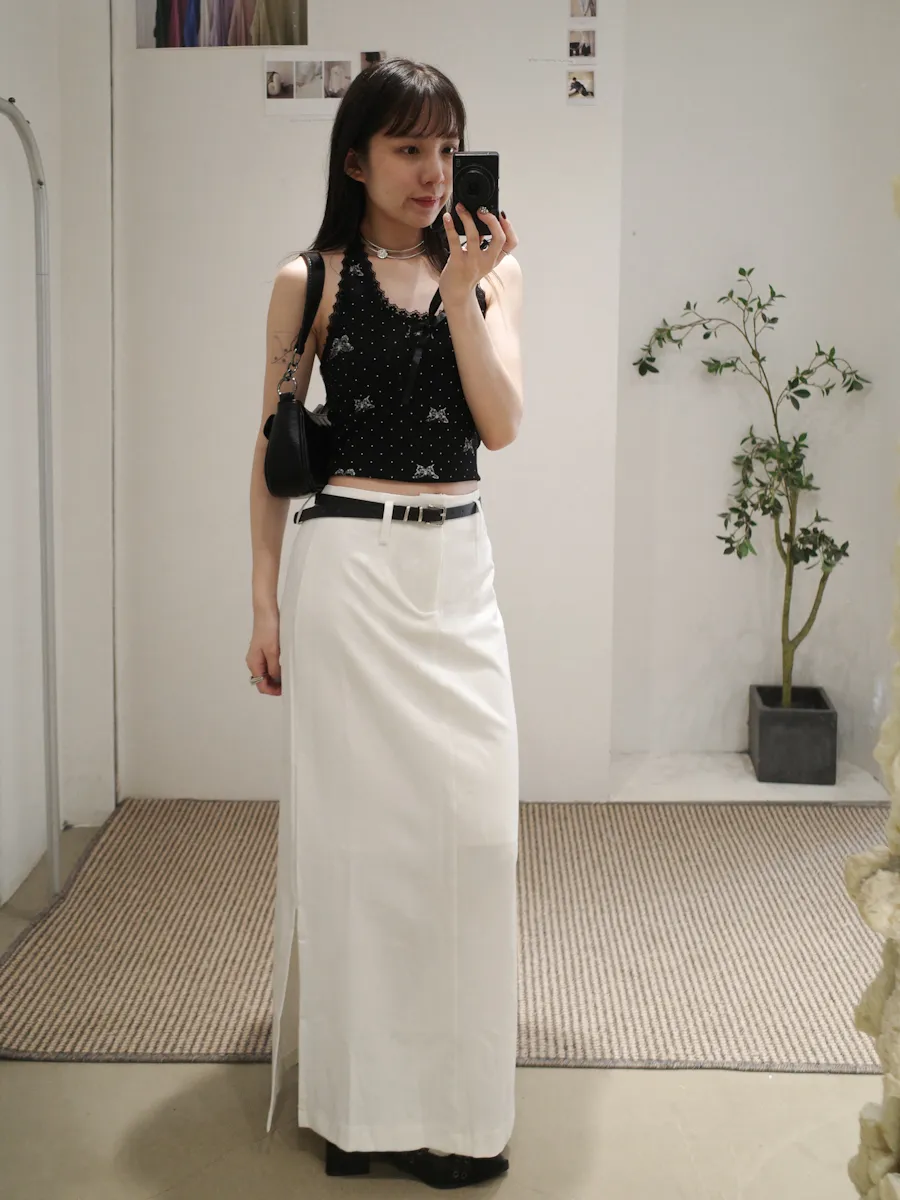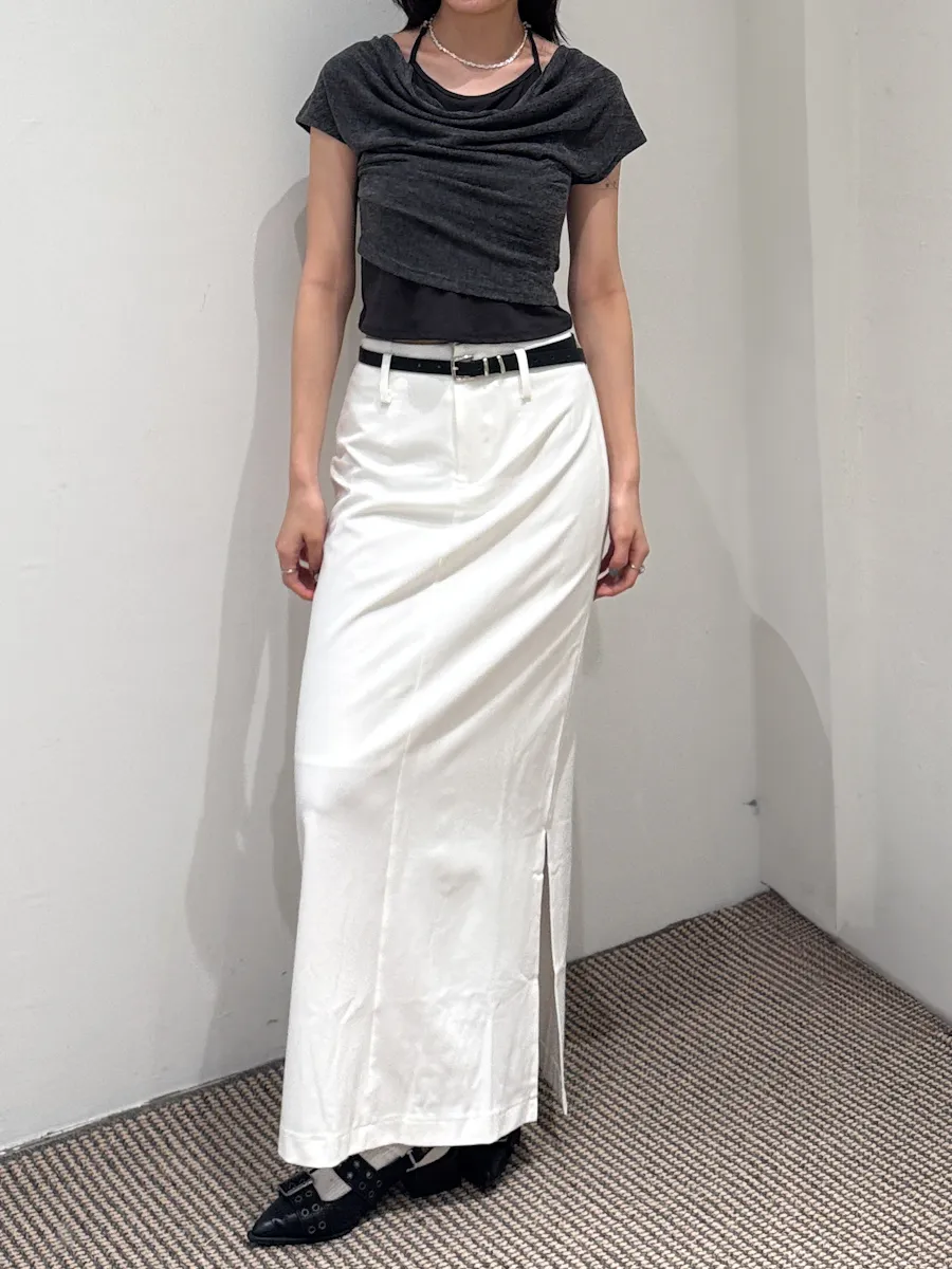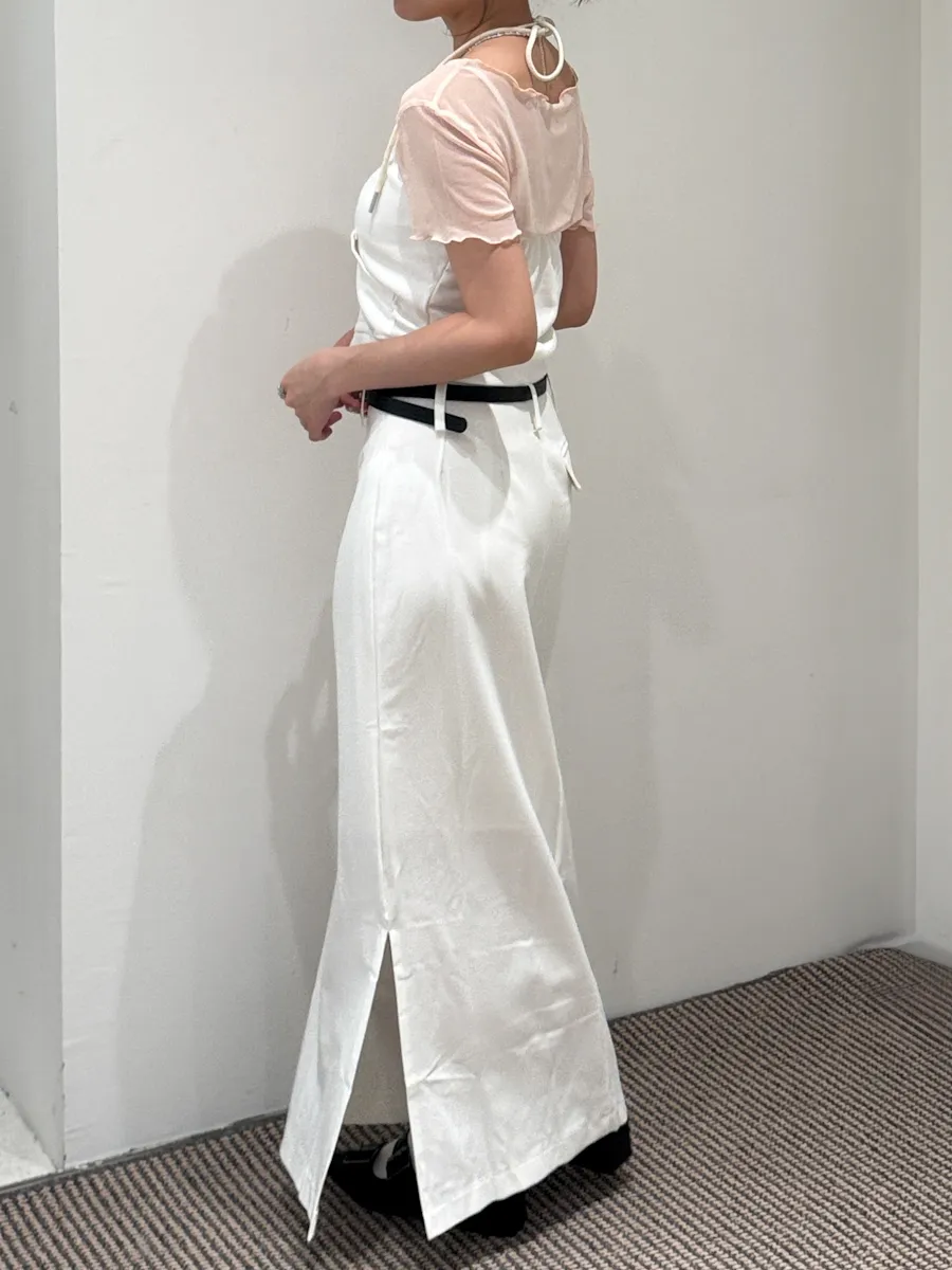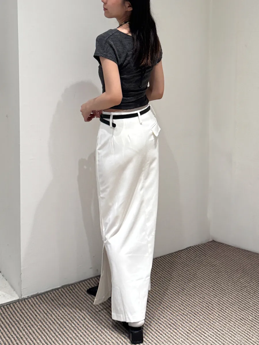 都會女子 西裝料加長開衩皮帶長裙 2color