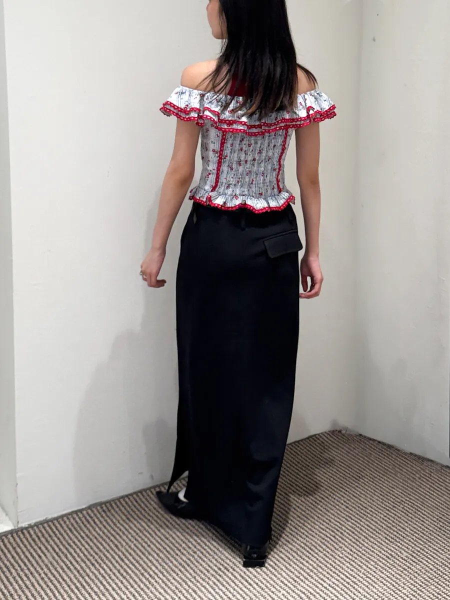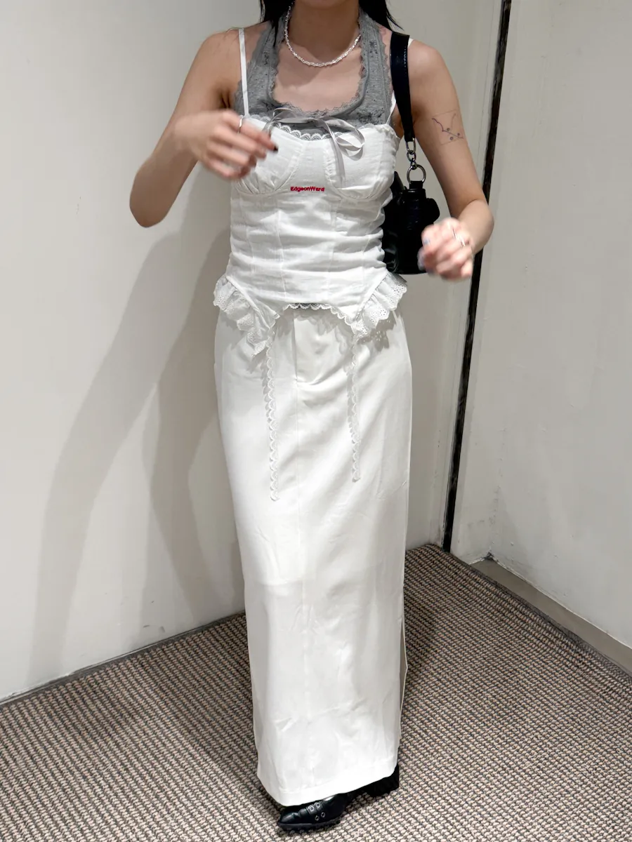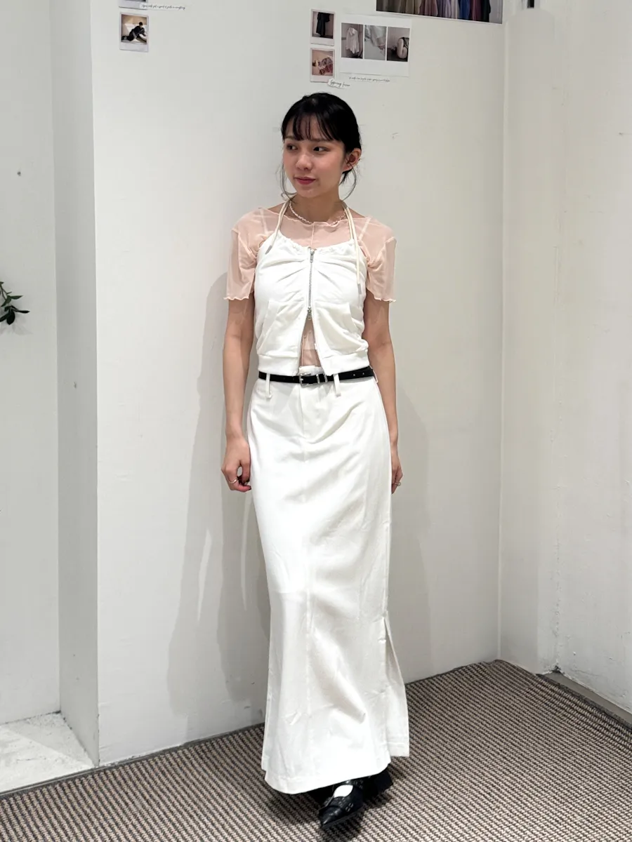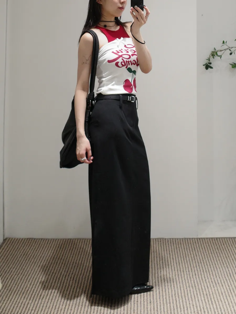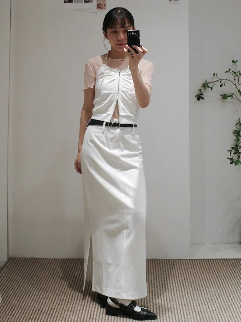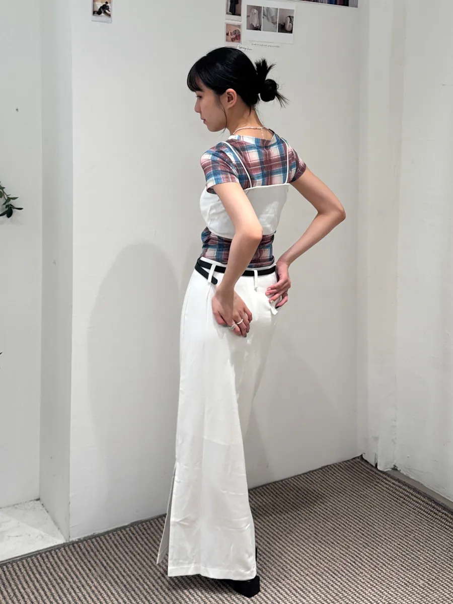 都會女子 西裝料加長開衩皮帶長裙 2color