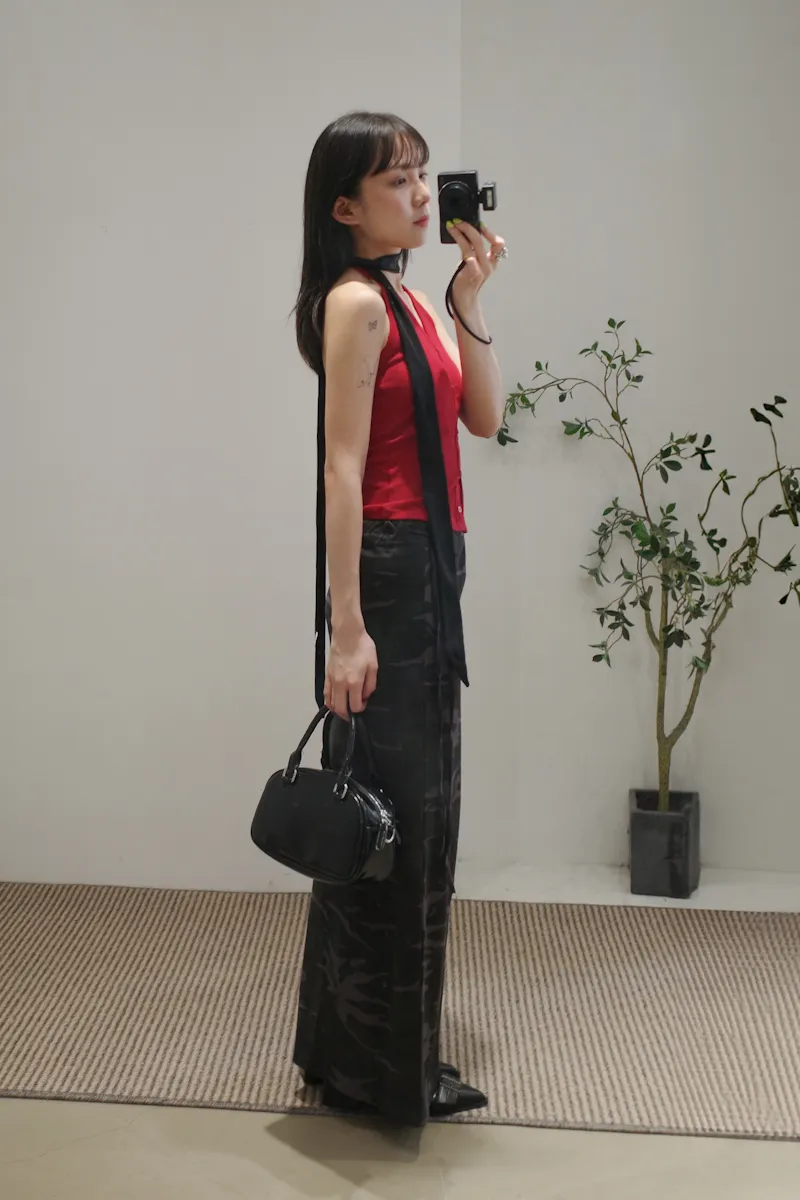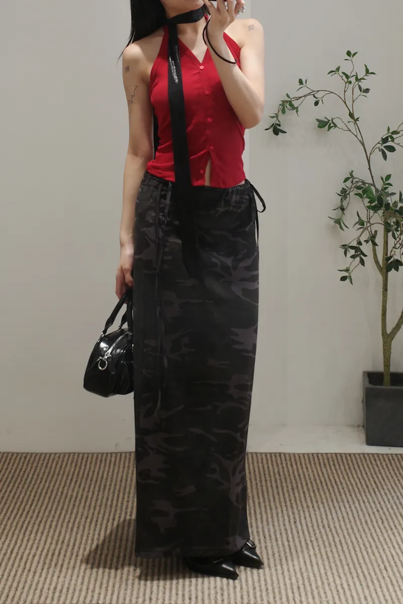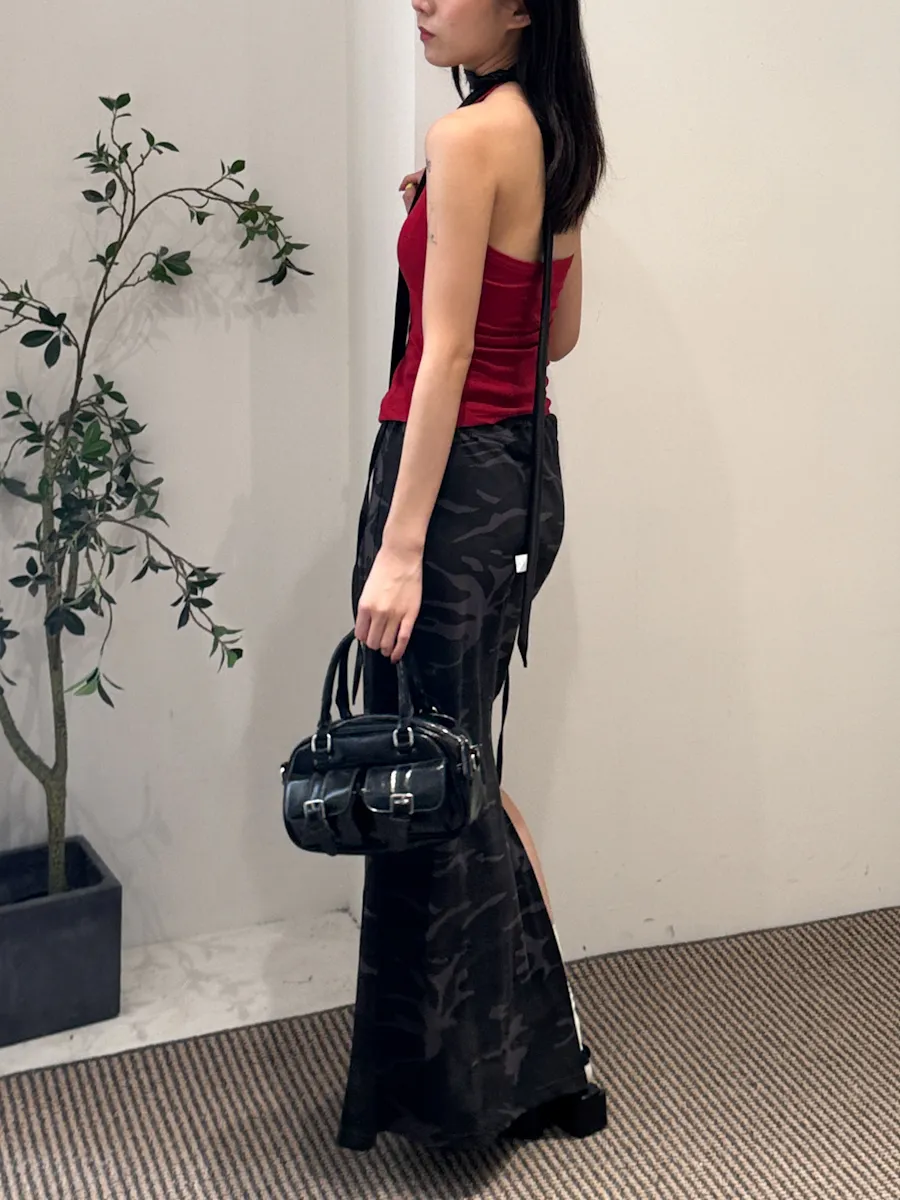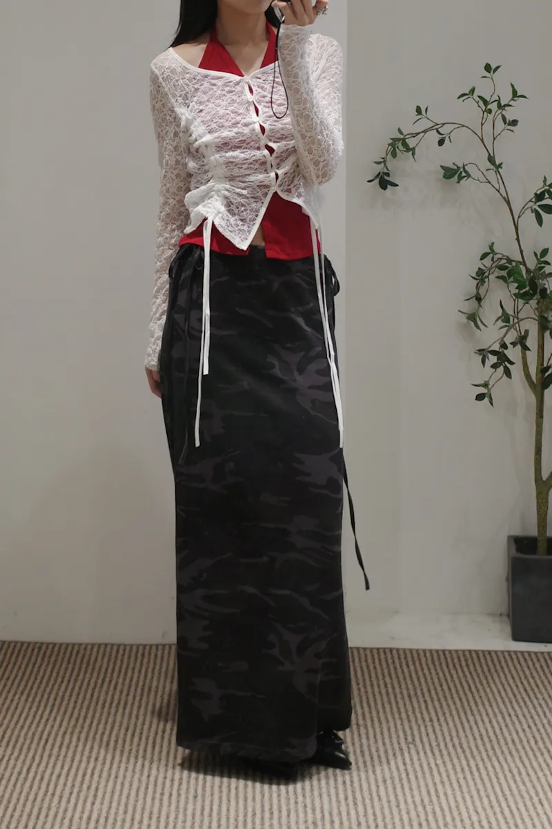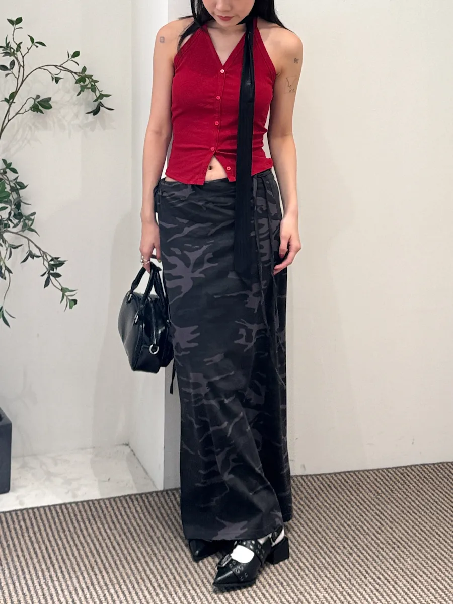 兩側腰邊有綁繩調節,單邊開衩,微彈性