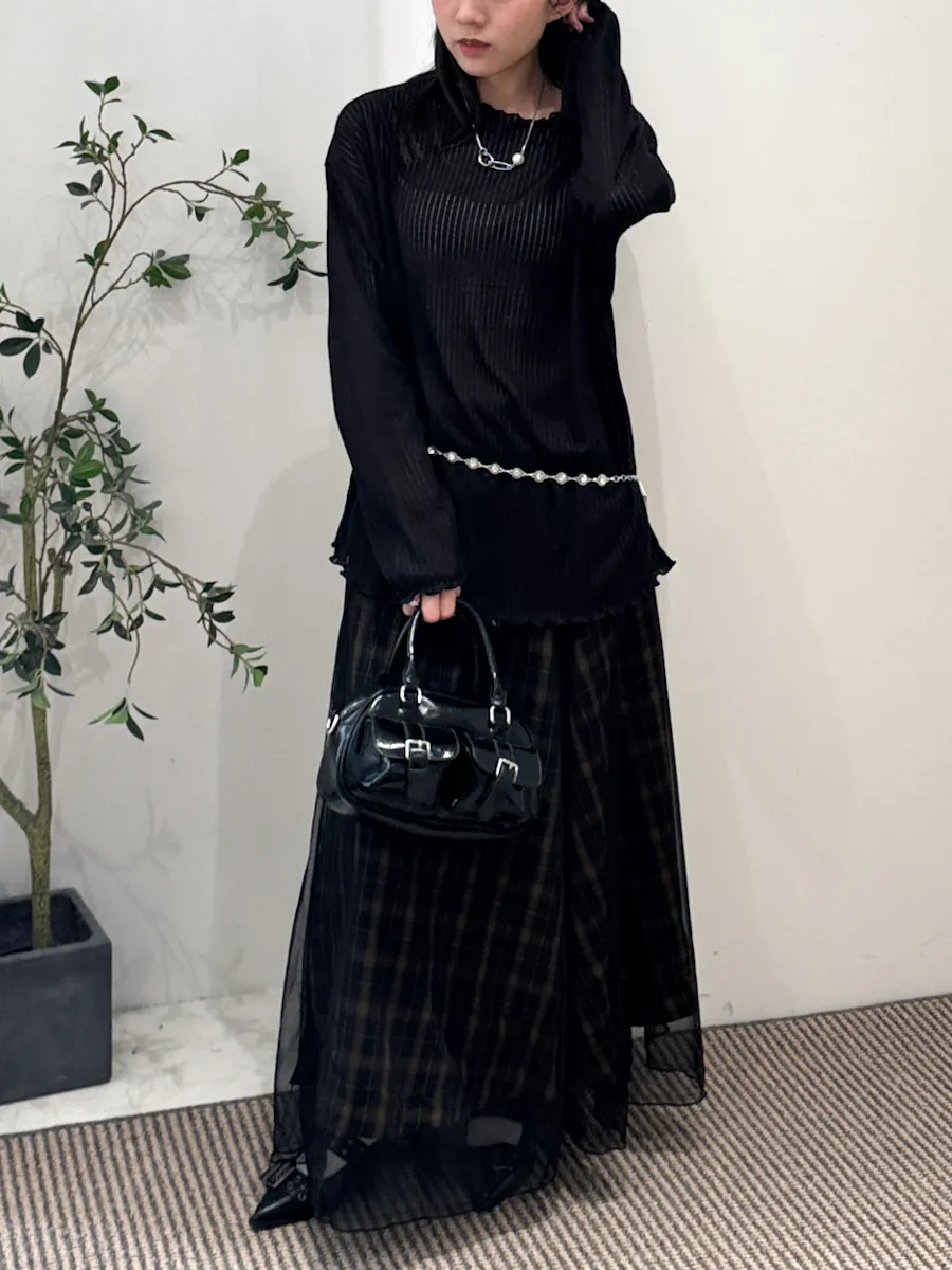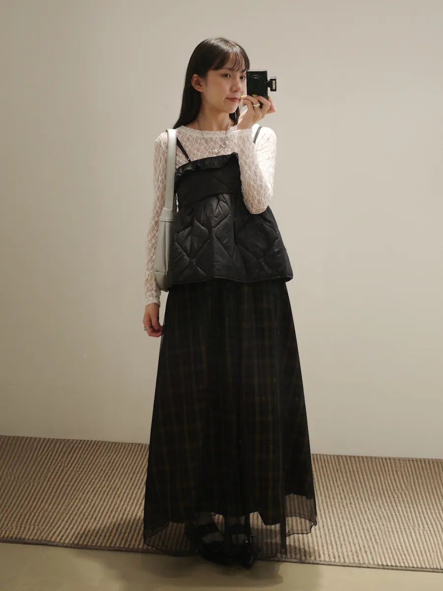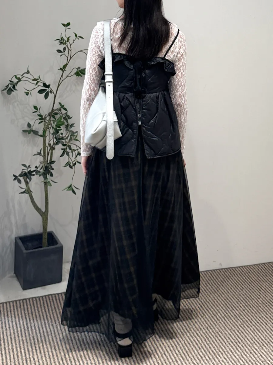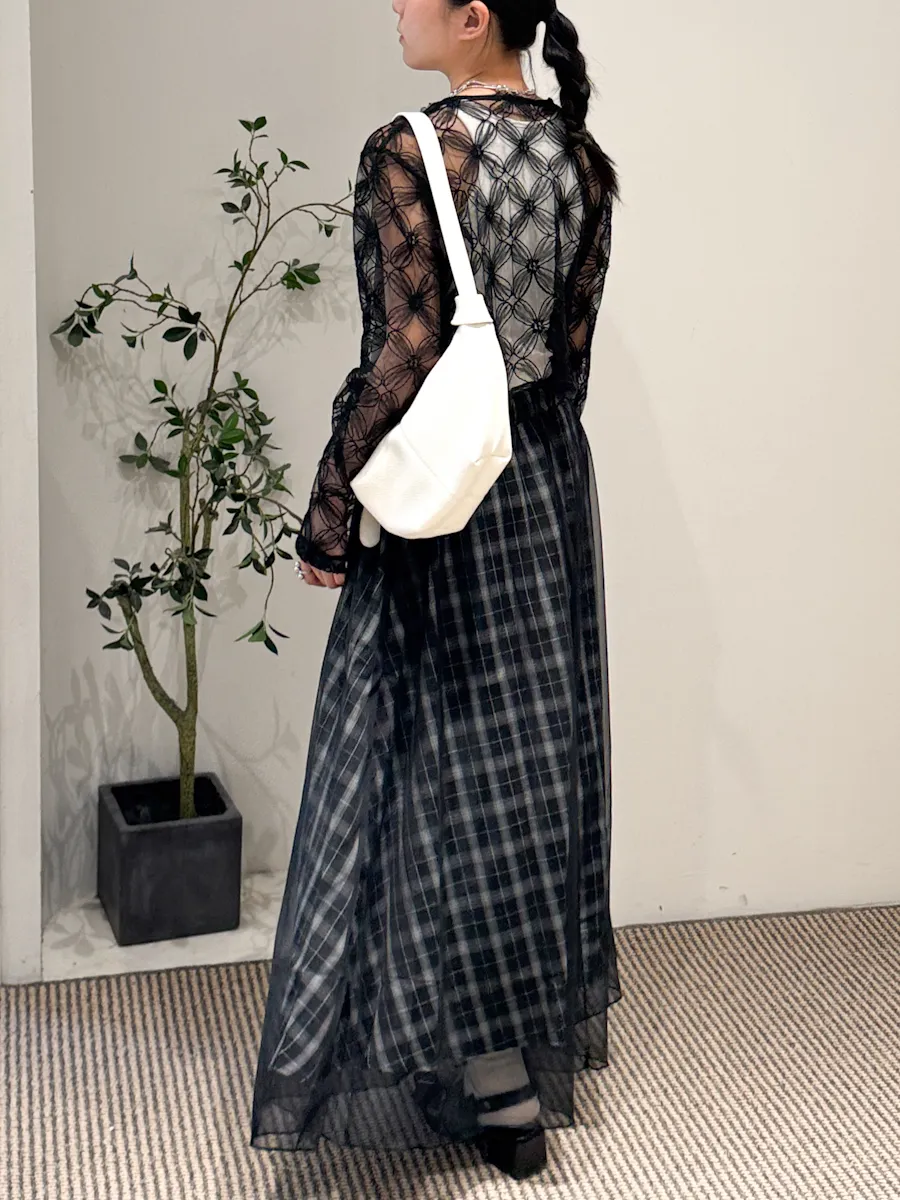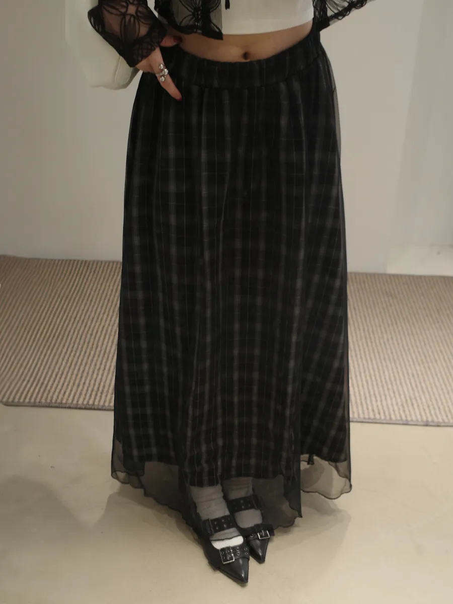 格紋散襬雙層長裙 2color