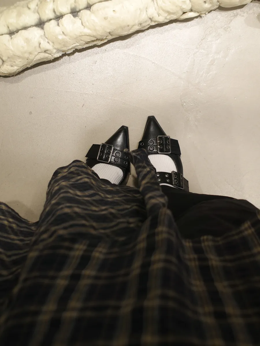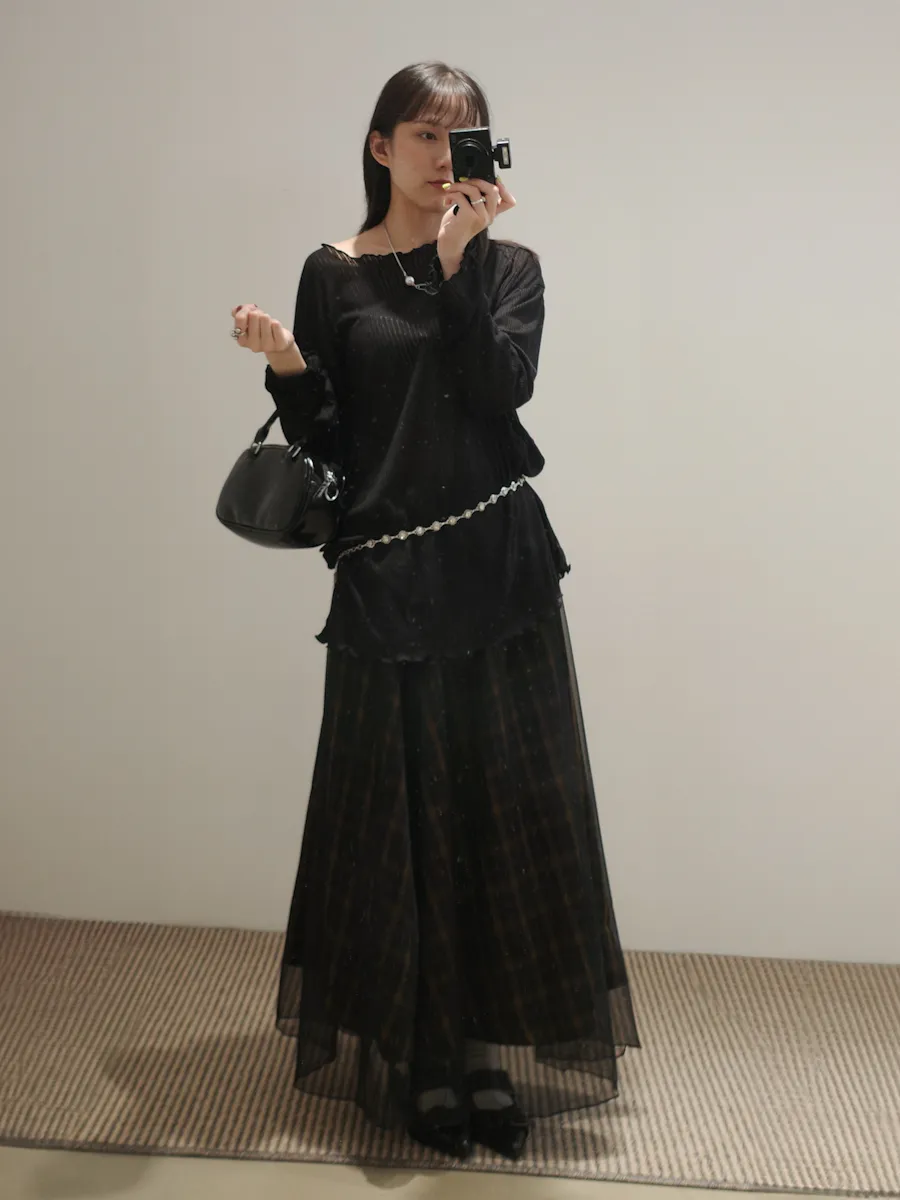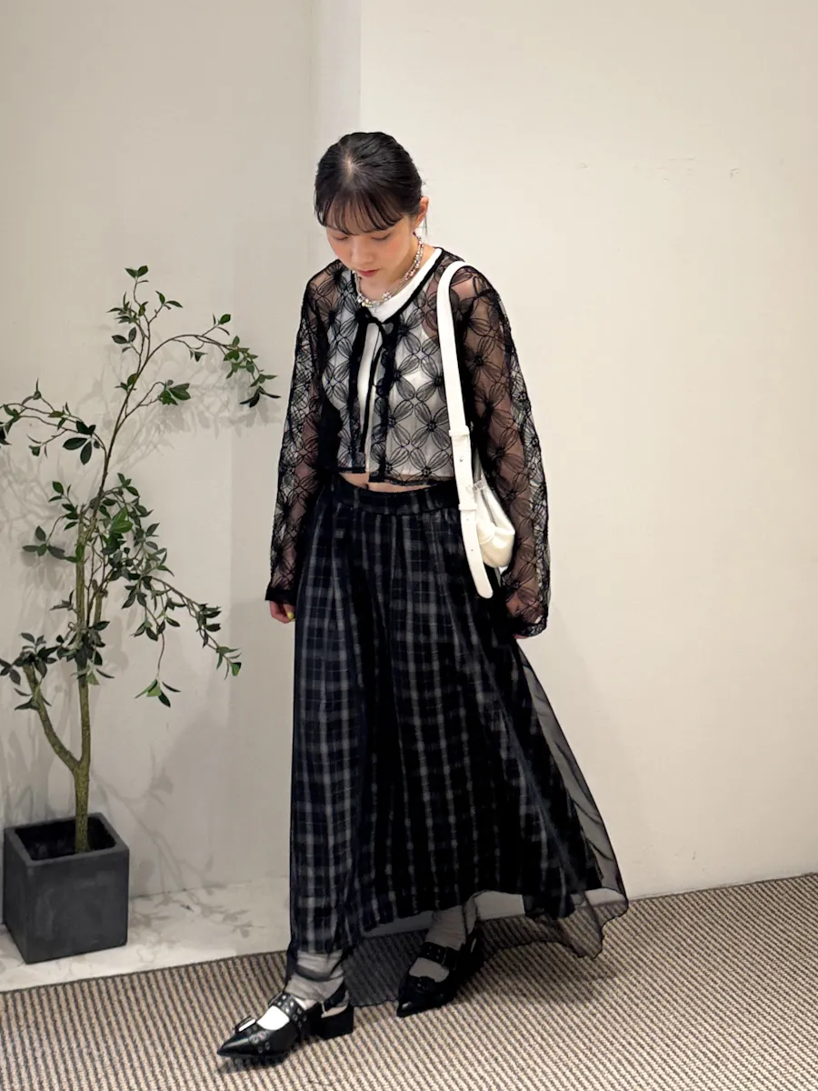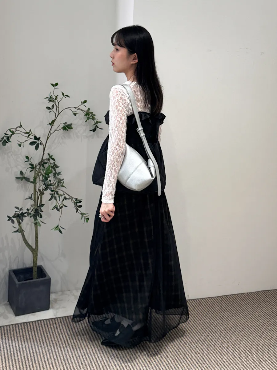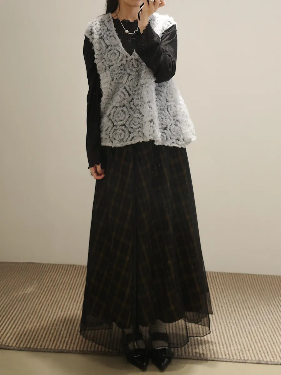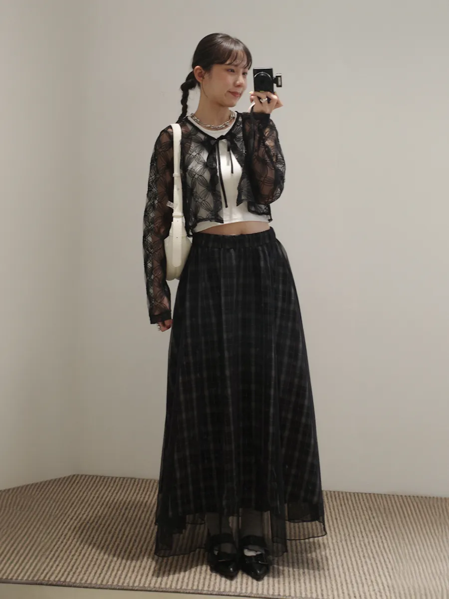 格紋散襬雙層長裙 2color
