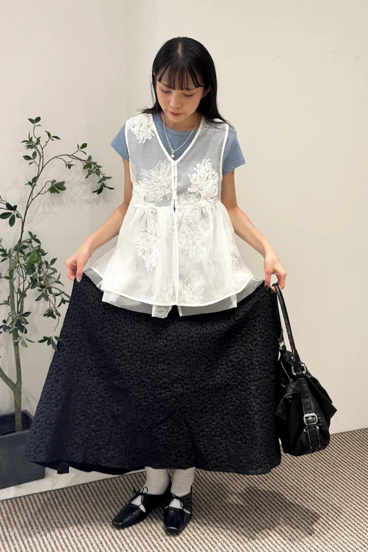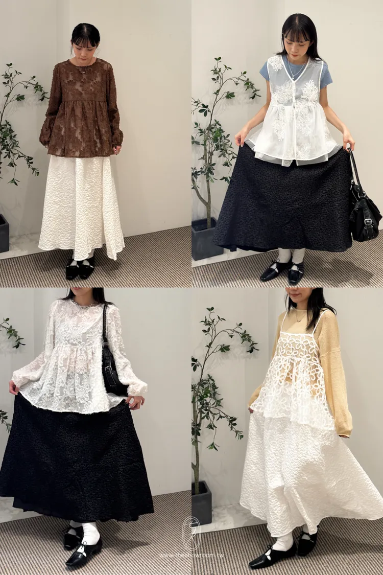 立體雕花澎澎半身長裙 2color