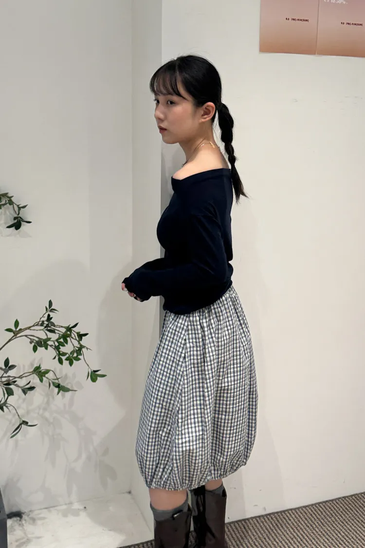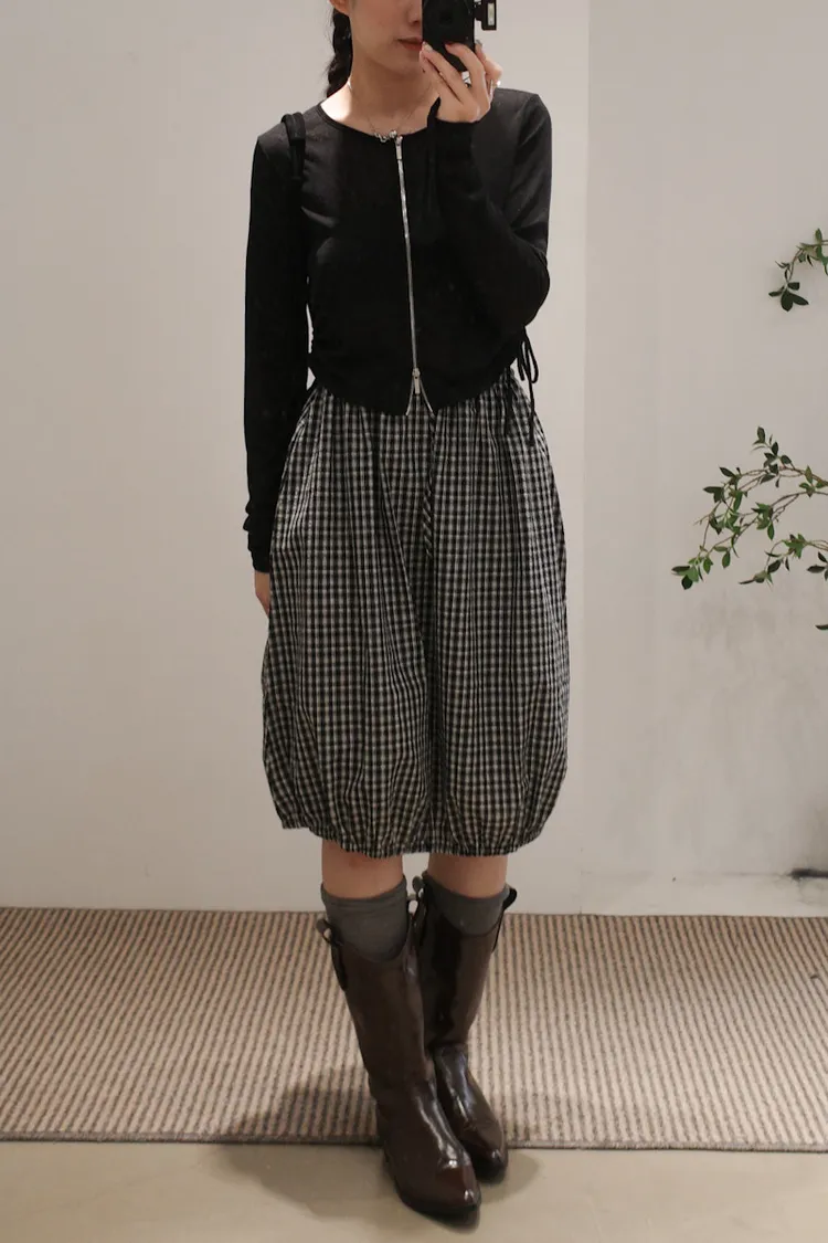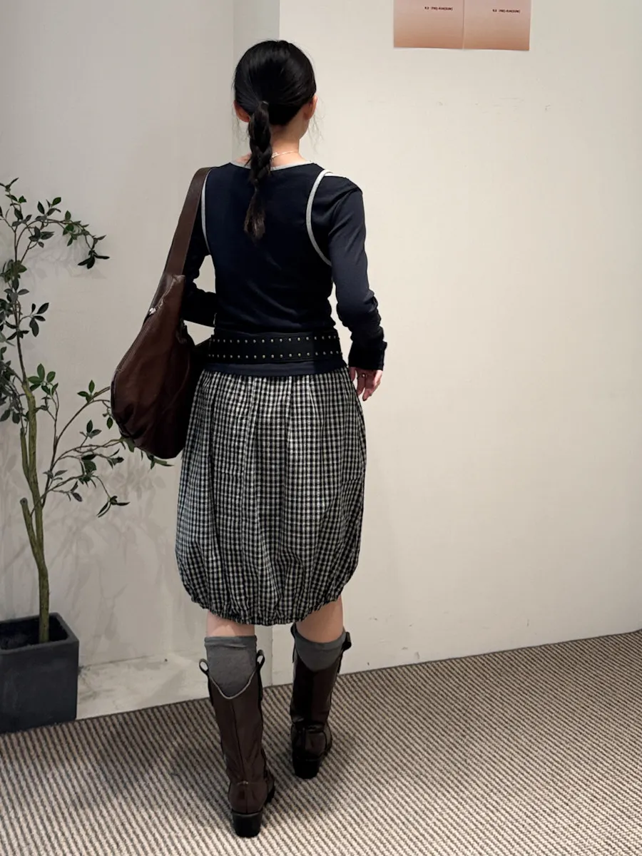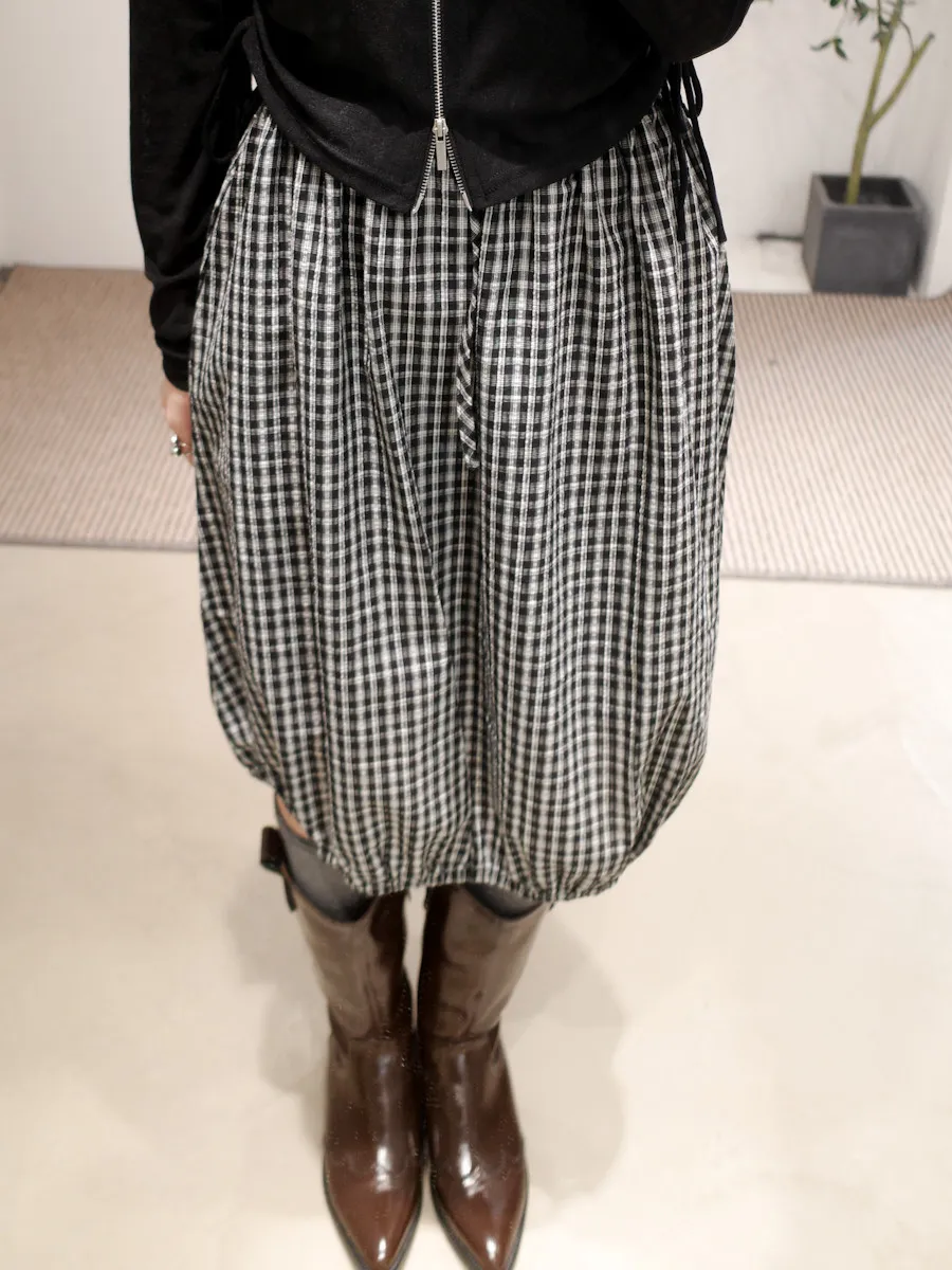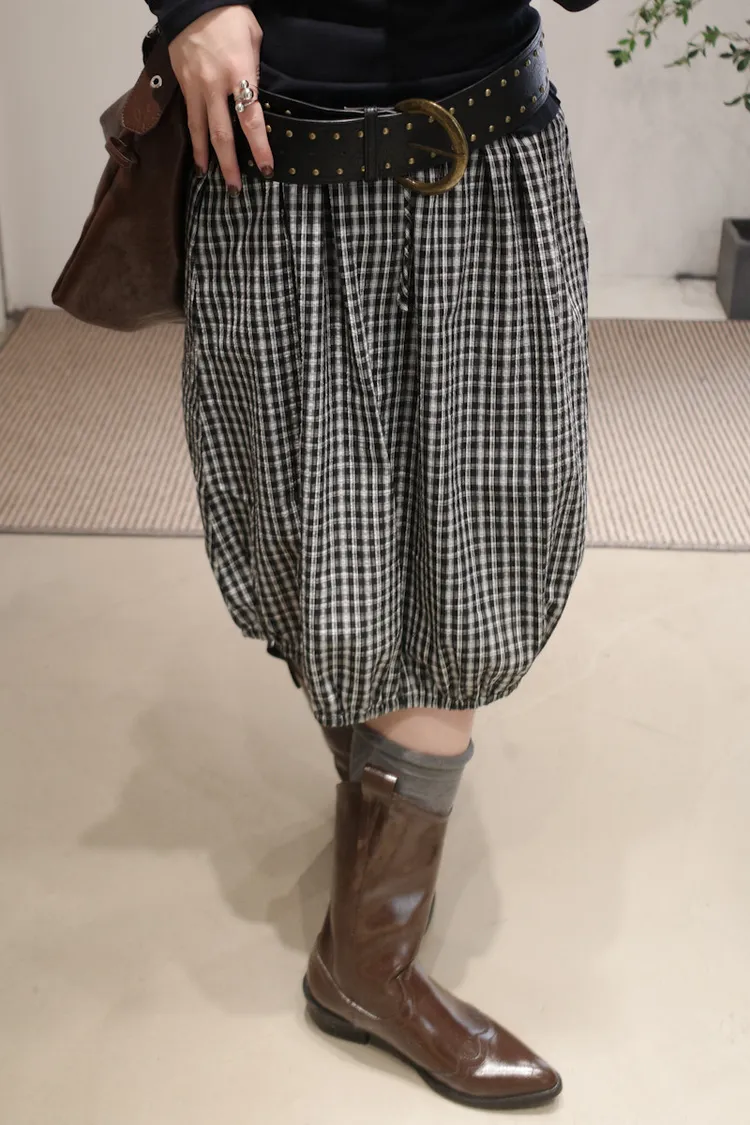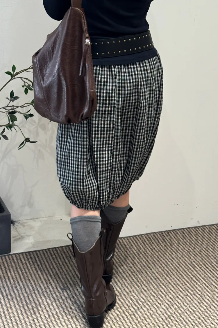 可日可韓格紋花苞五分短裙 2color