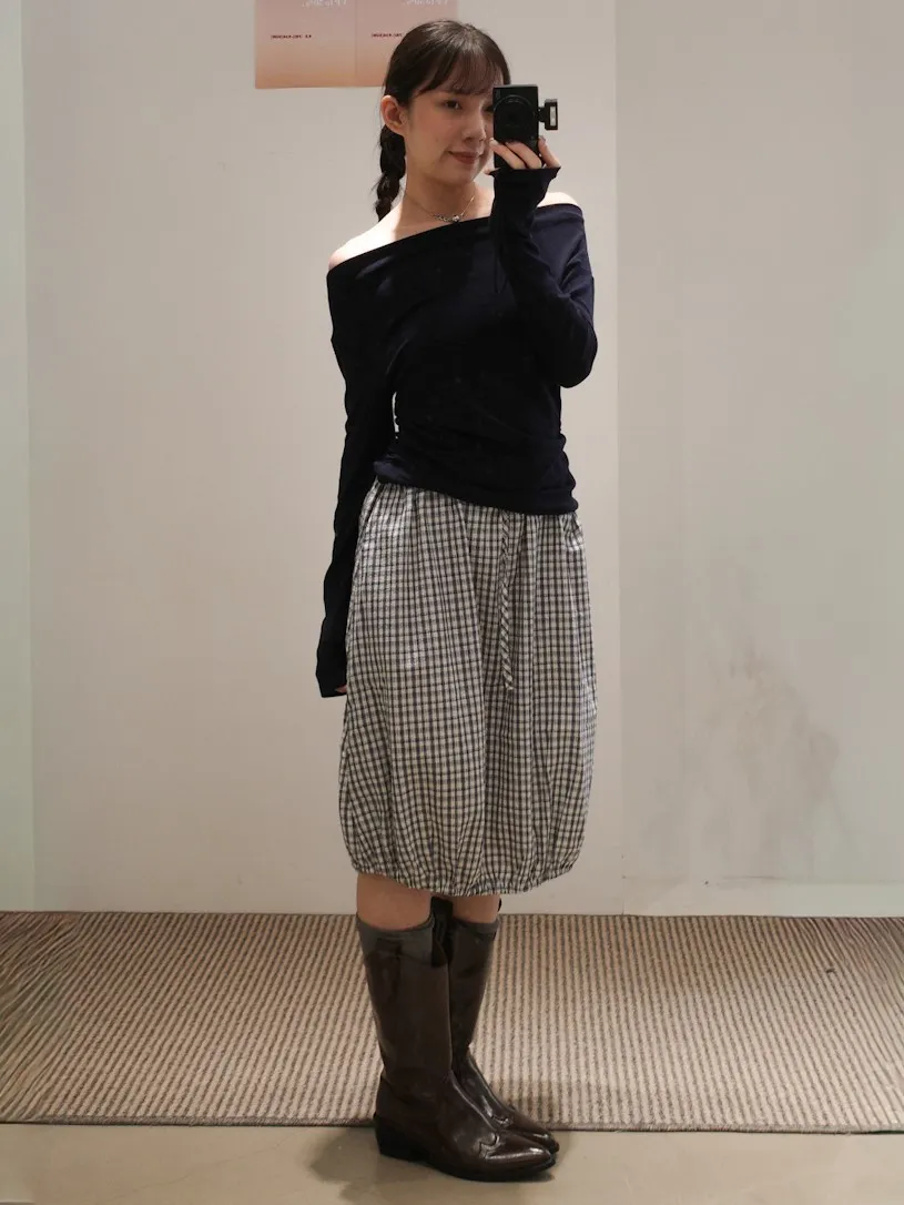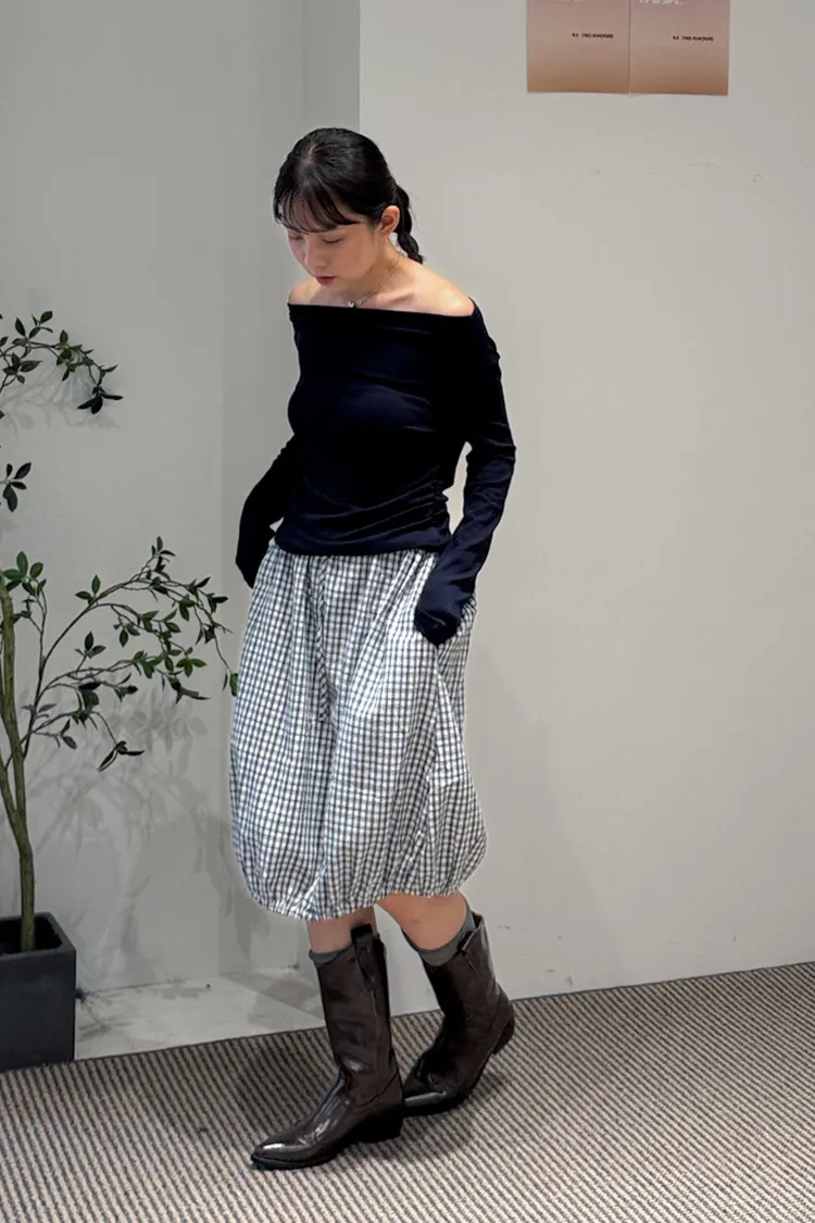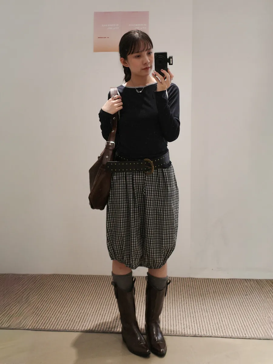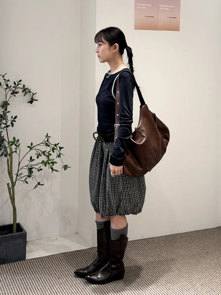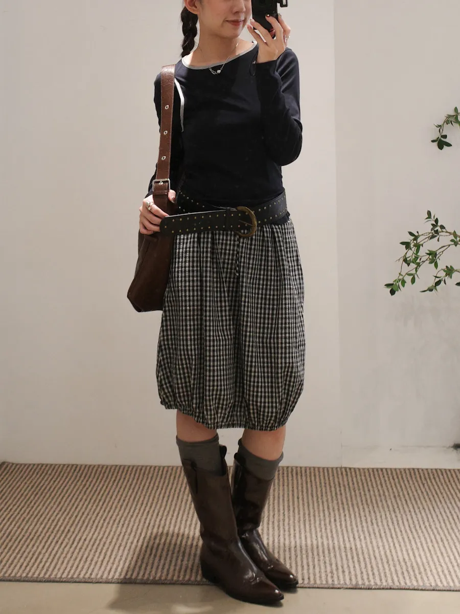 可日可韓格紋花苞五分短裙 2color