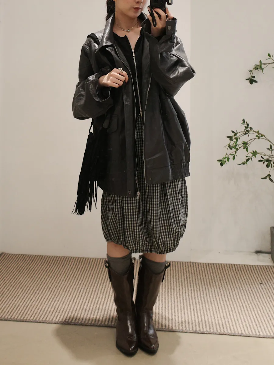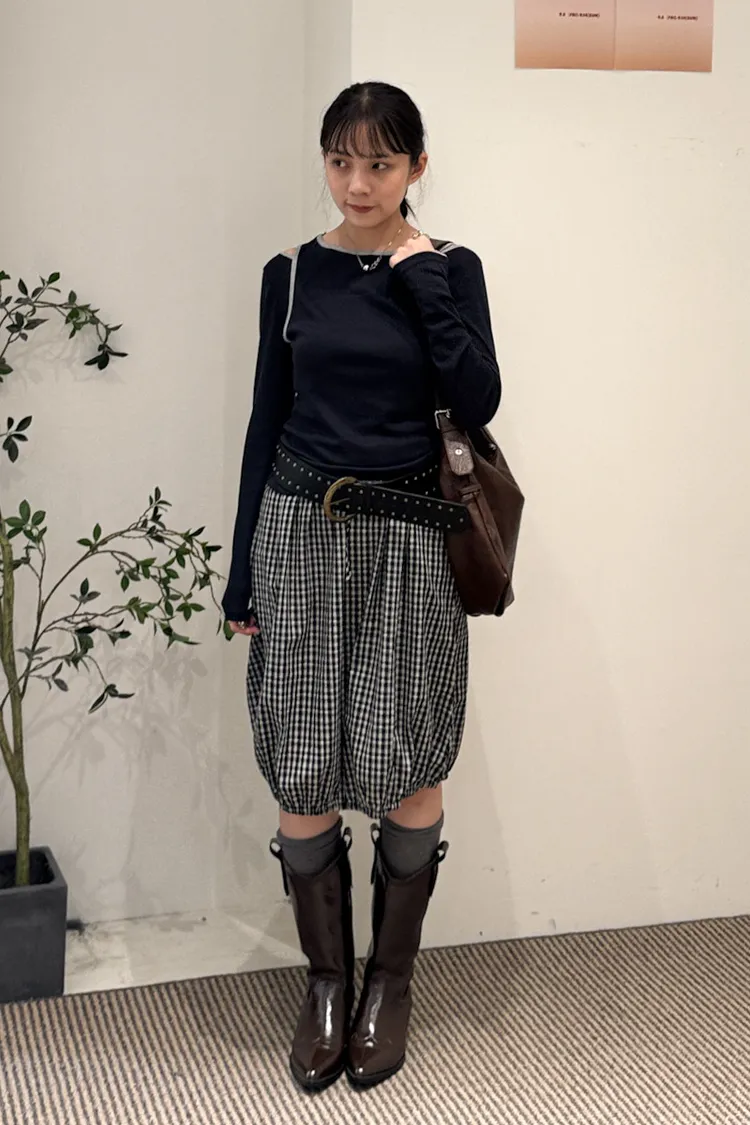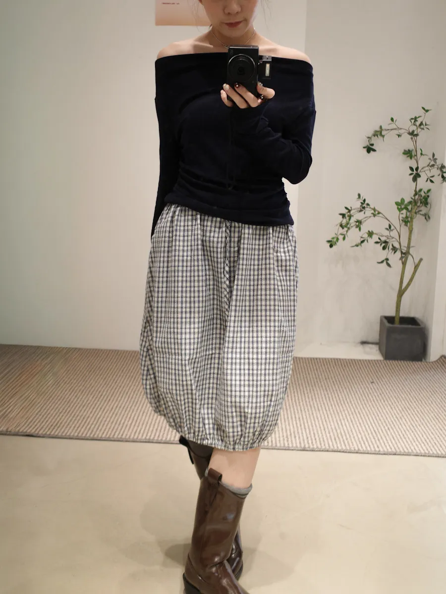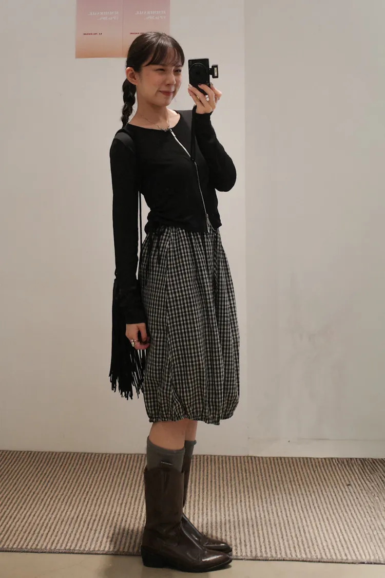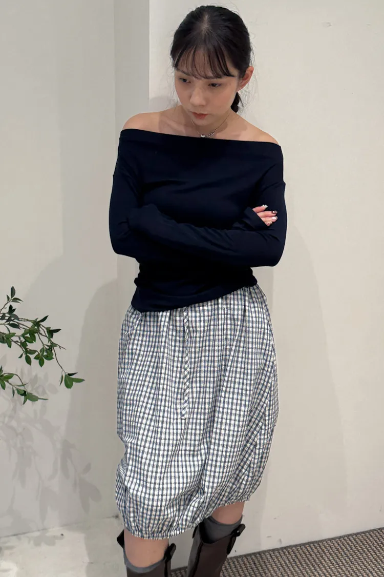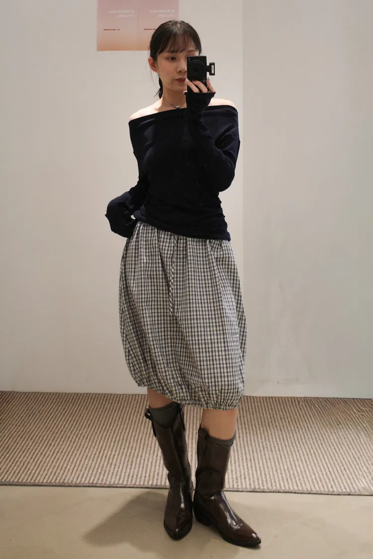 可日可韓格紋花苞五分短裙 2color