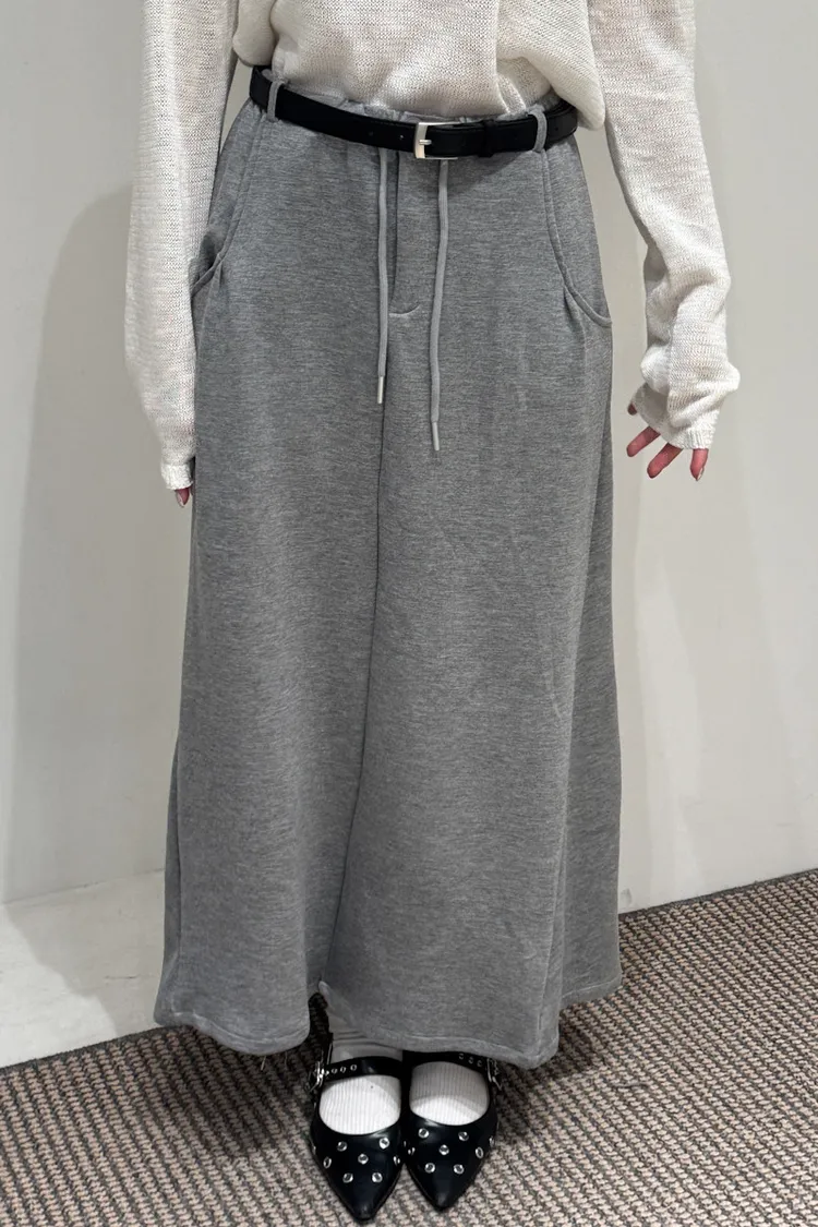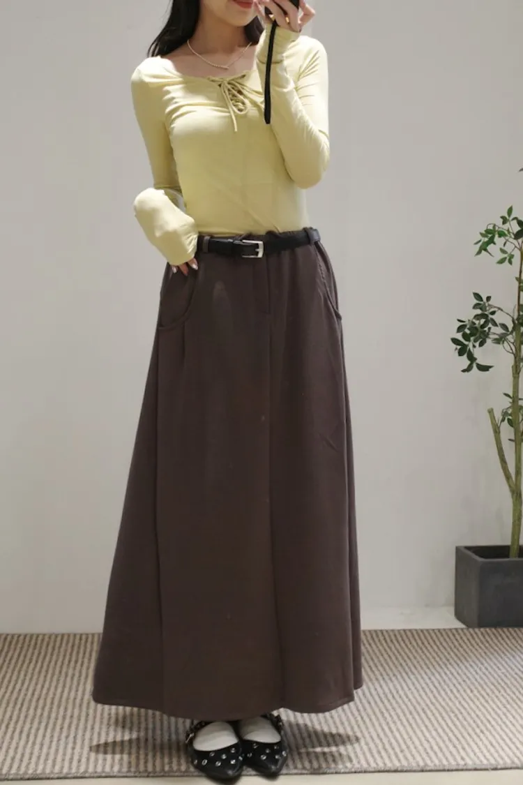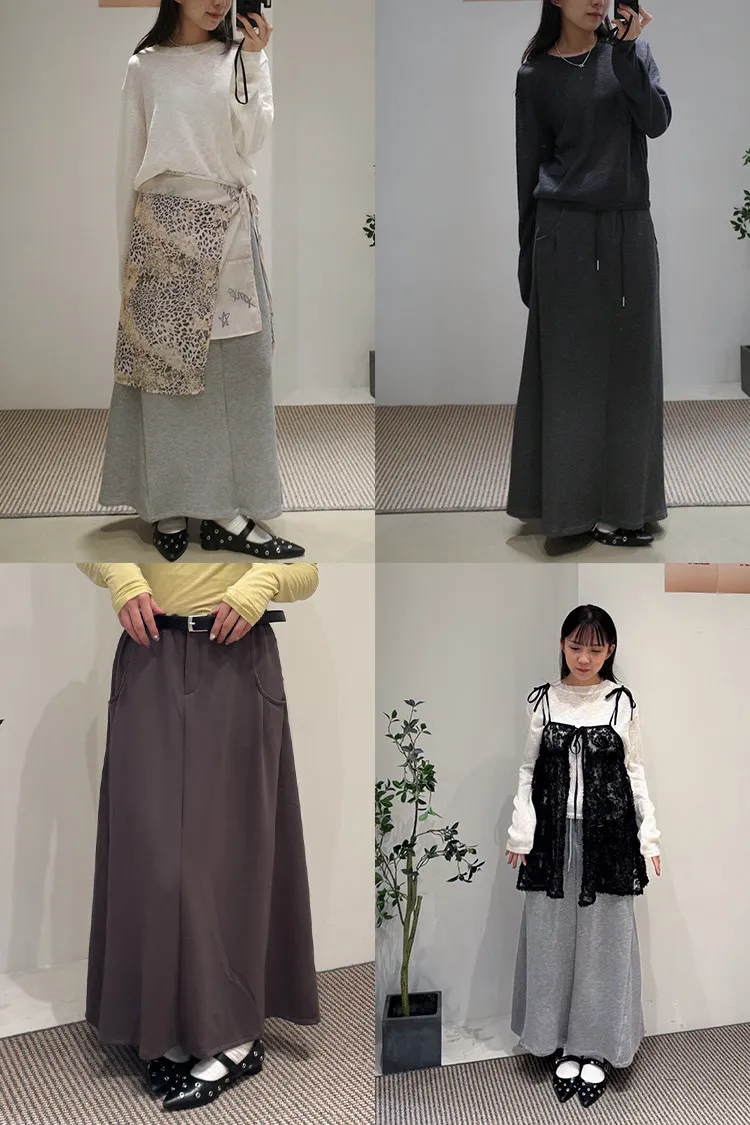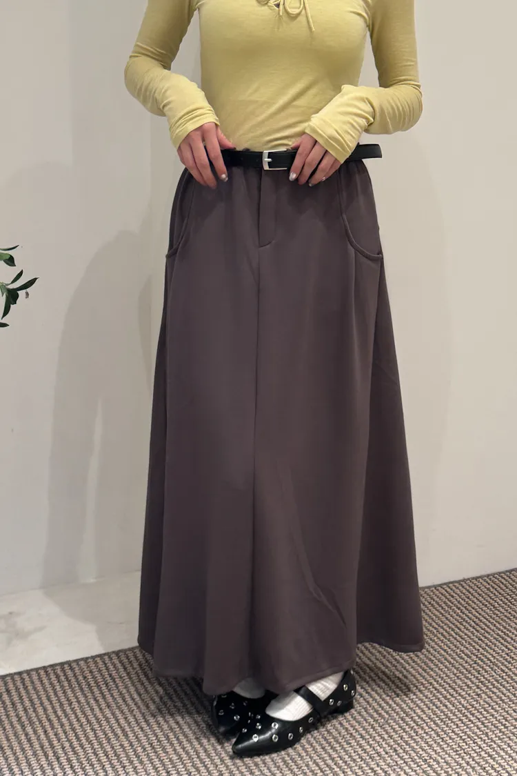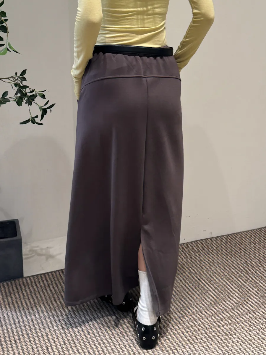 必收!太空棉柔軟後開岔長裙附皮帶 3color