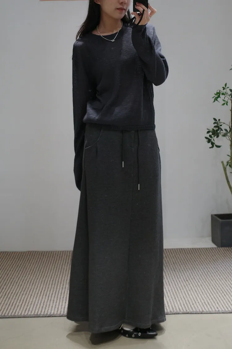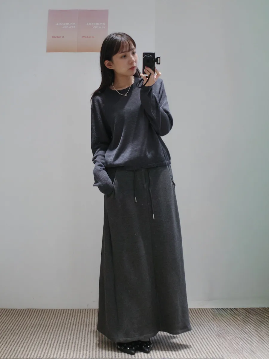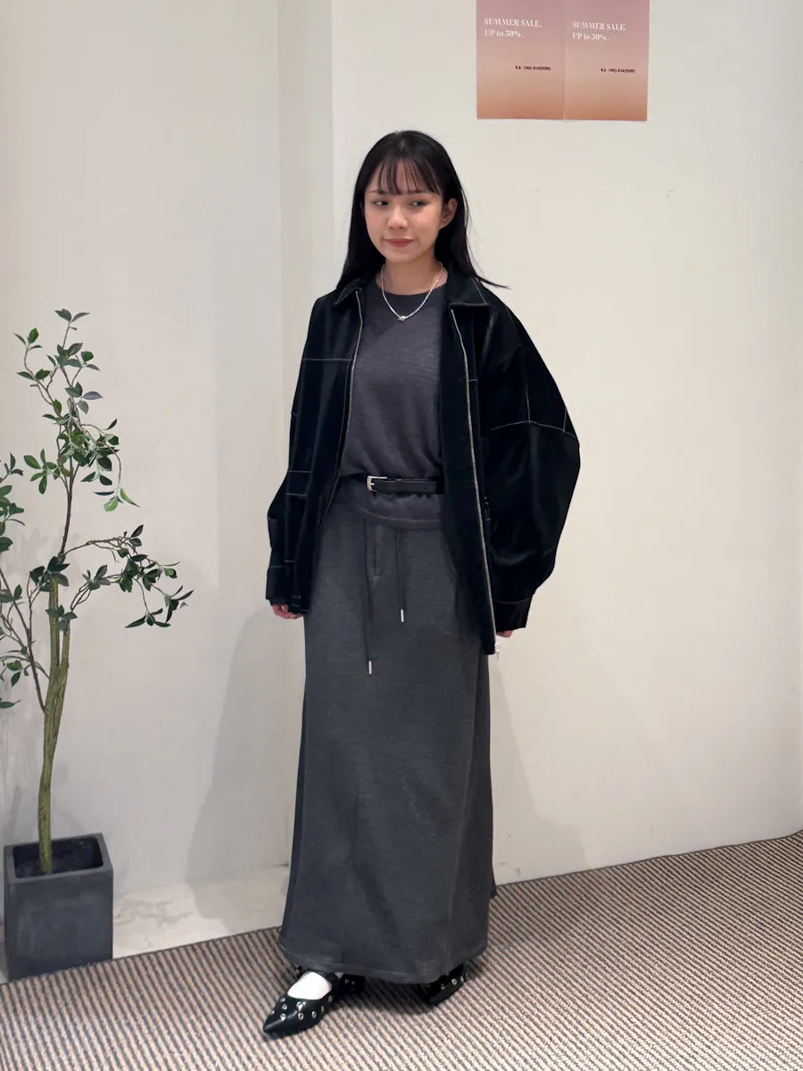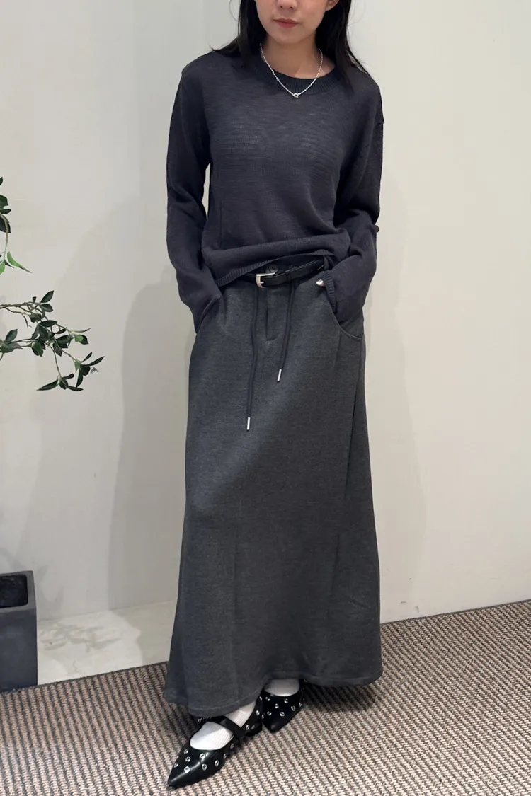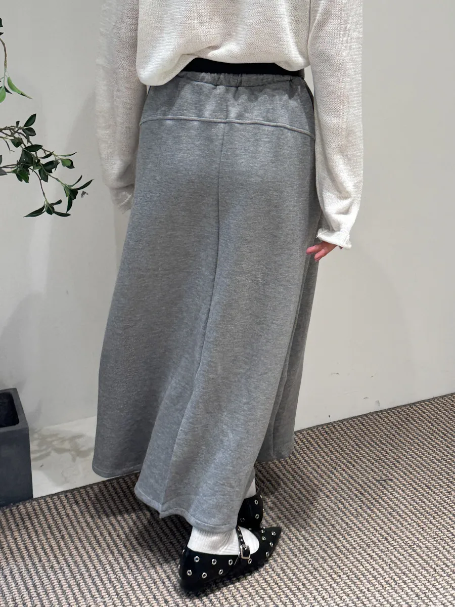 必收!太空棉柔軟後開岔長裙附皮帶 3color