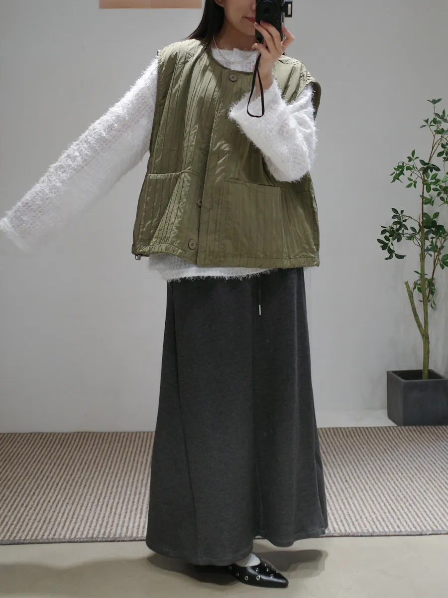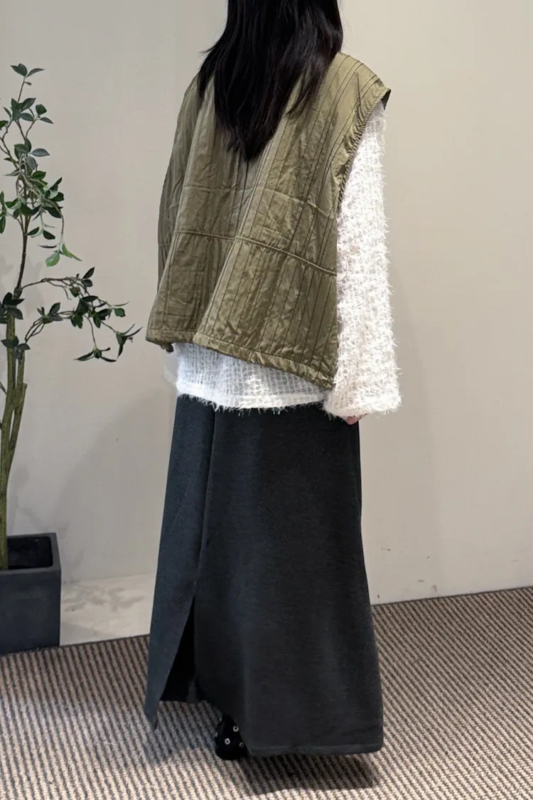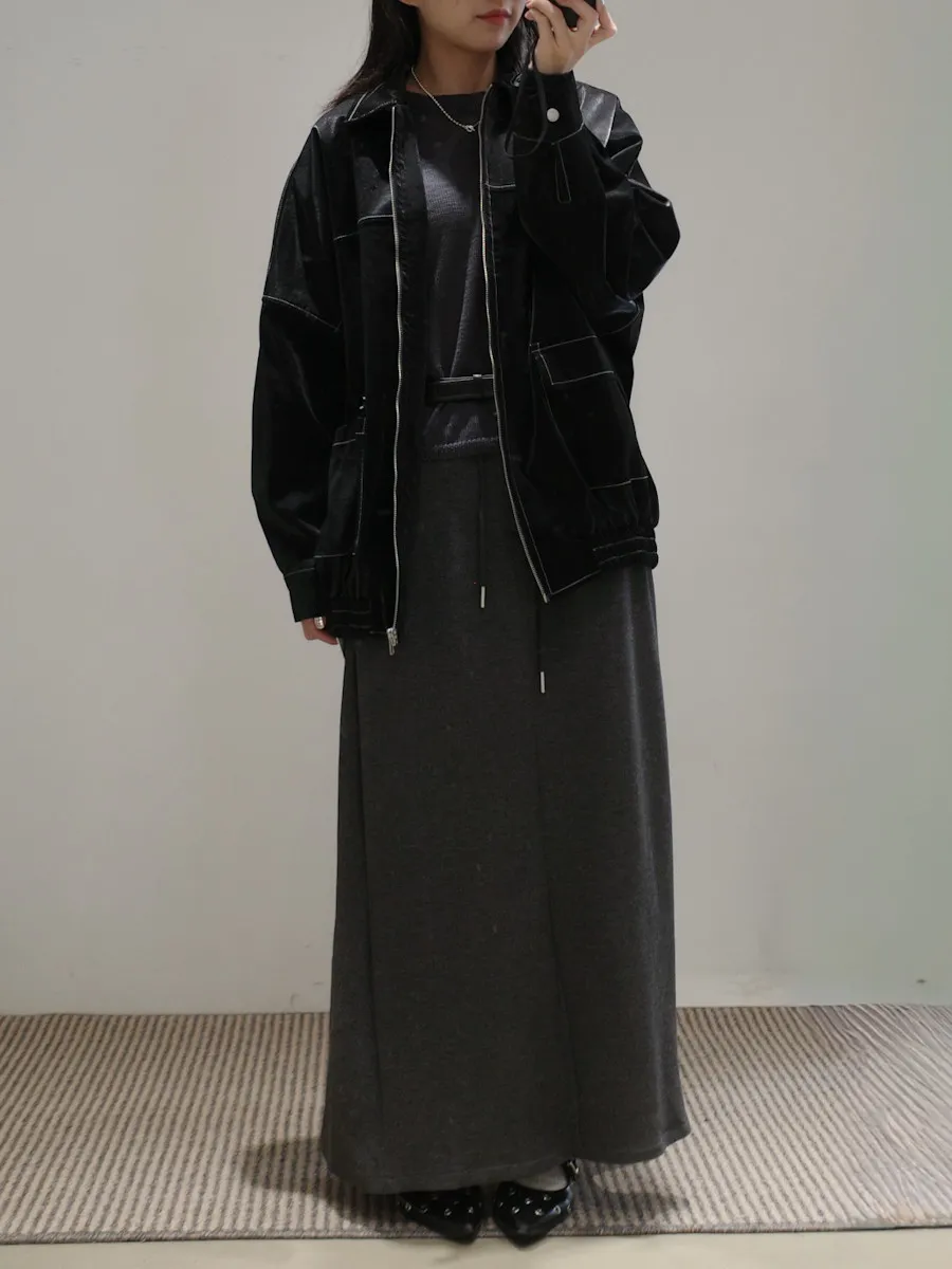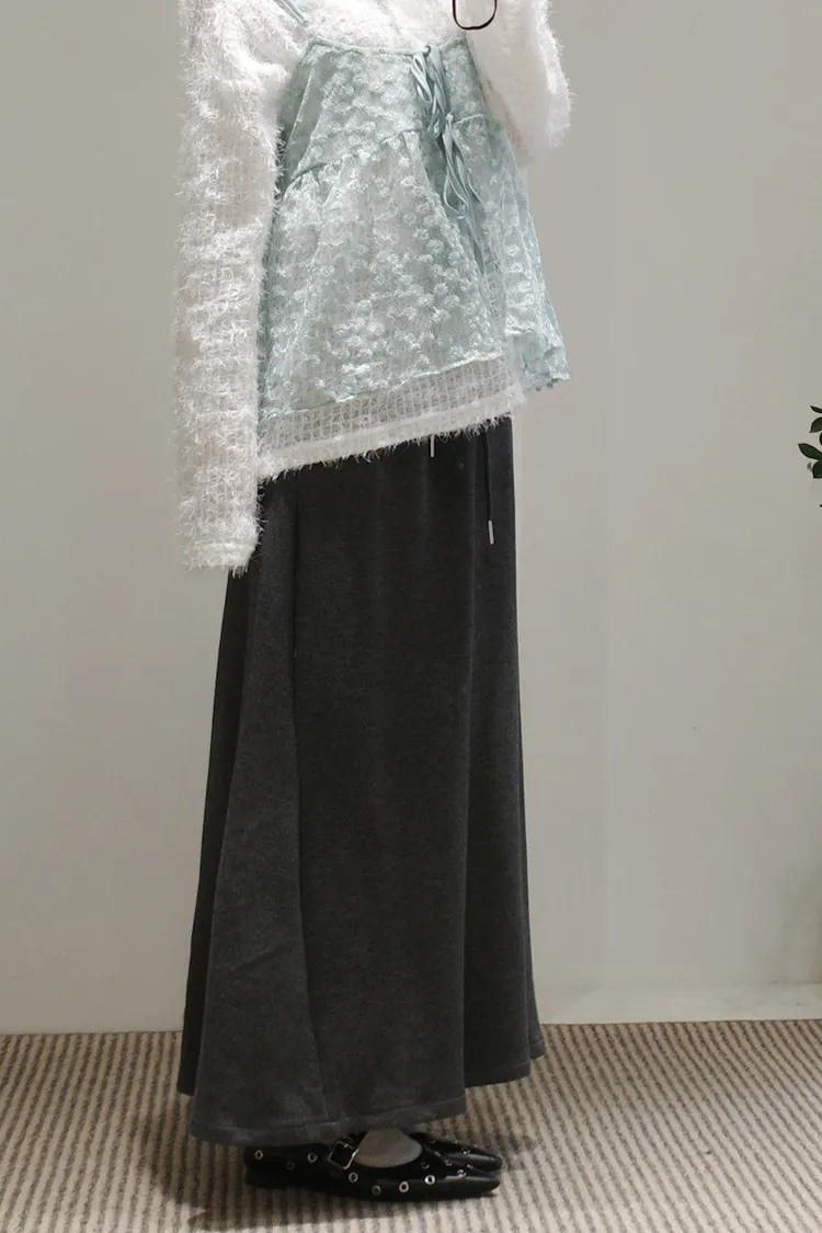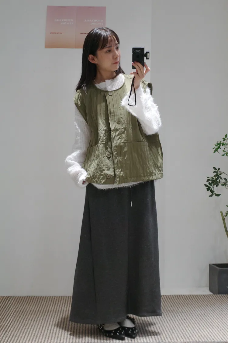 必收!太空棉柔軟後開岔長裙附皮帶 3color