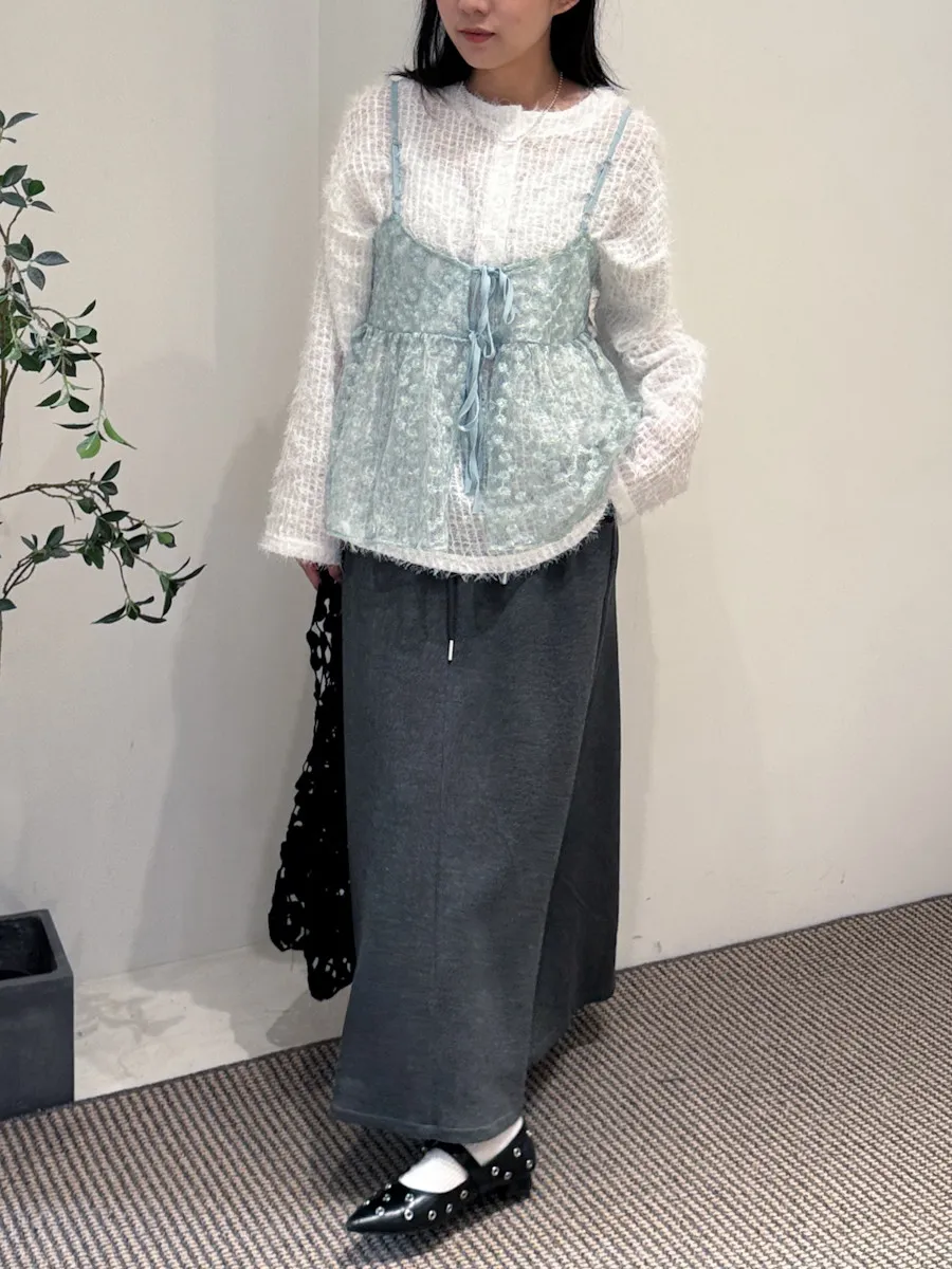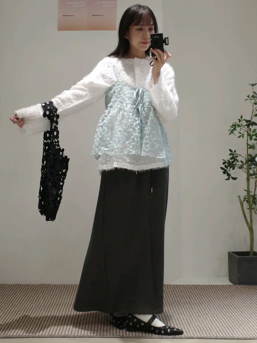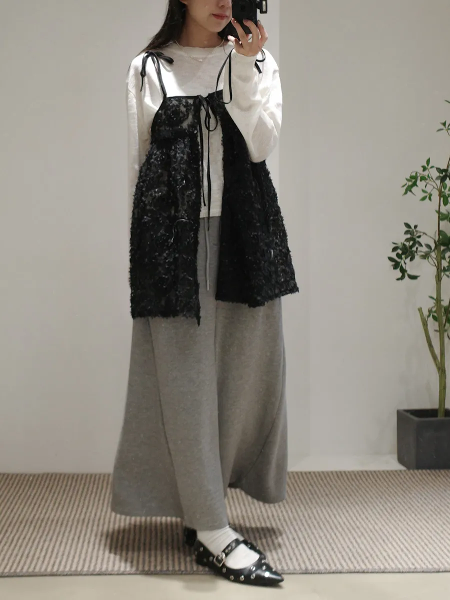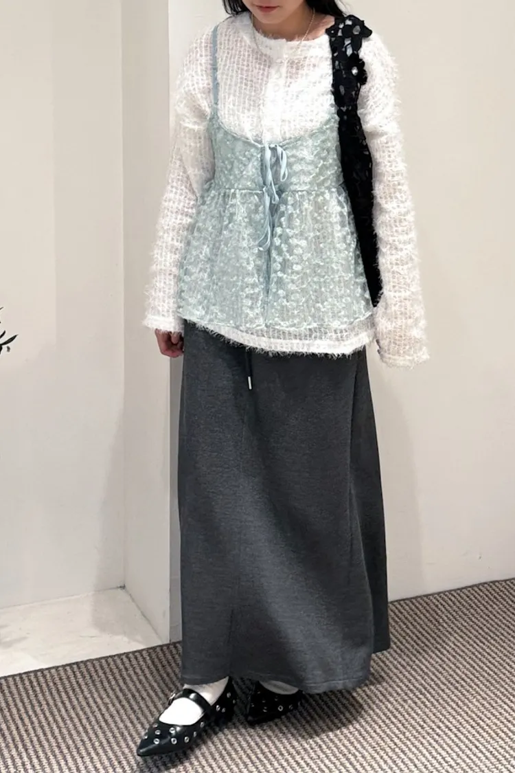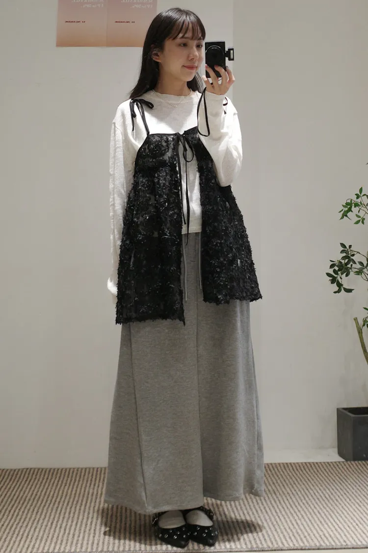 必收!太空棉柔軟後開岔長裙附皮帶 3color