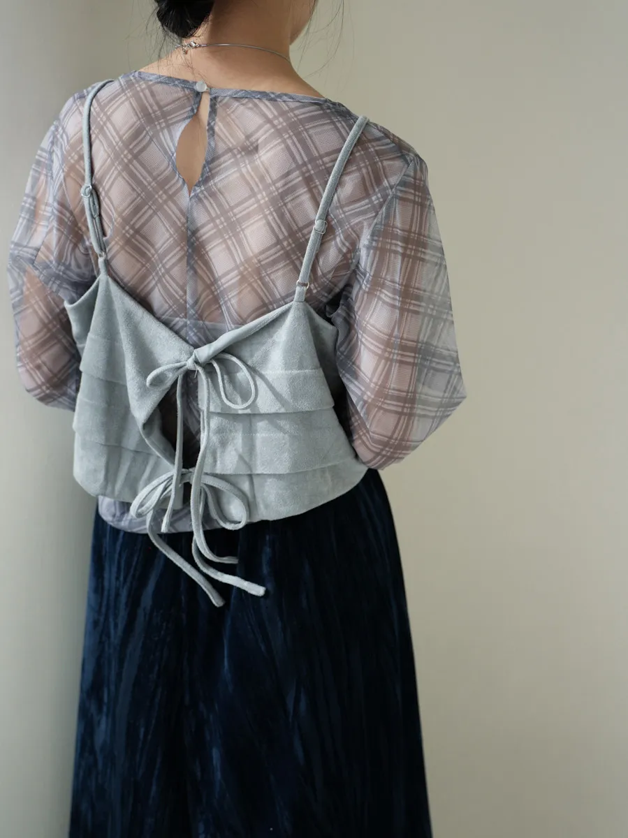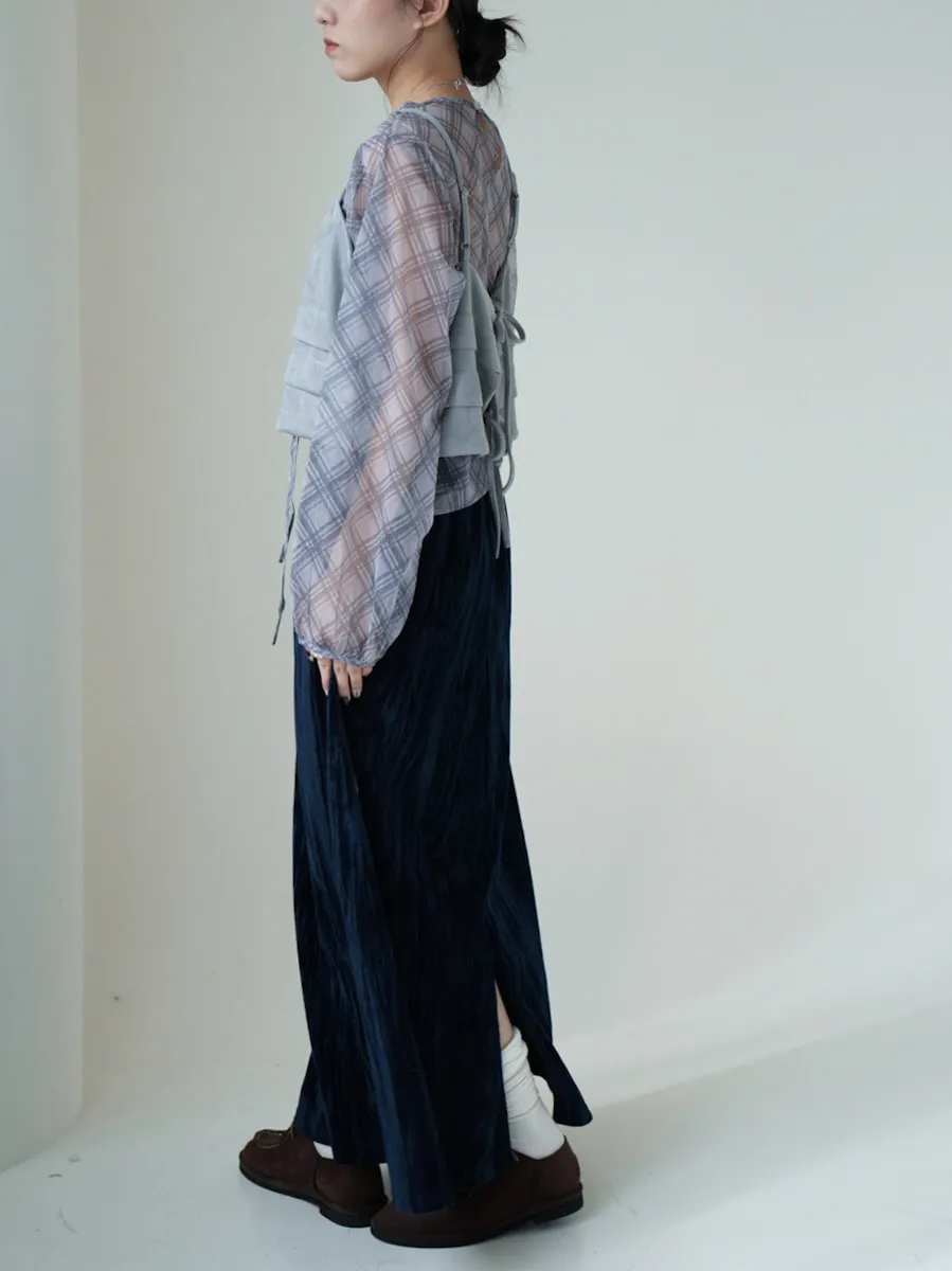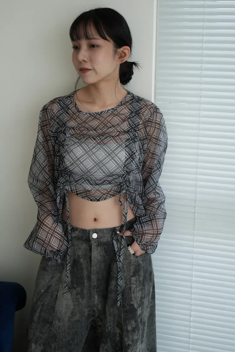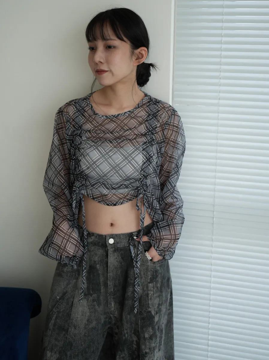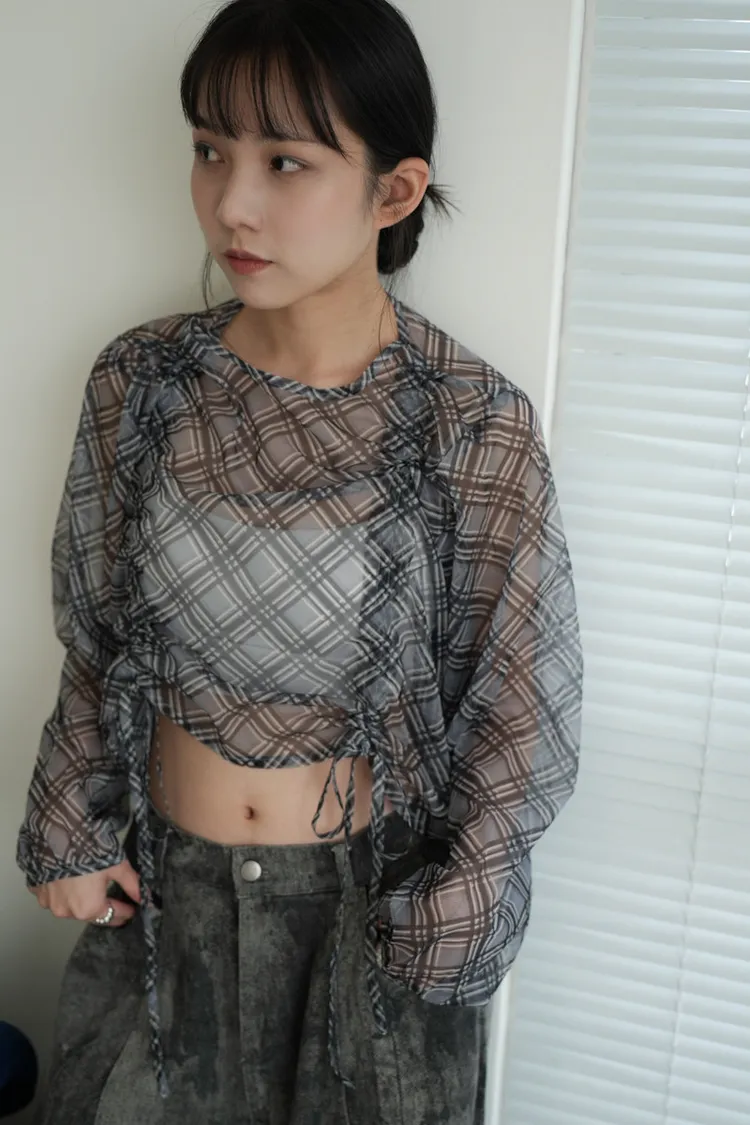 微彈性,胸前兩側有抽繩可拉皺,手袖縮口,後頸單釦