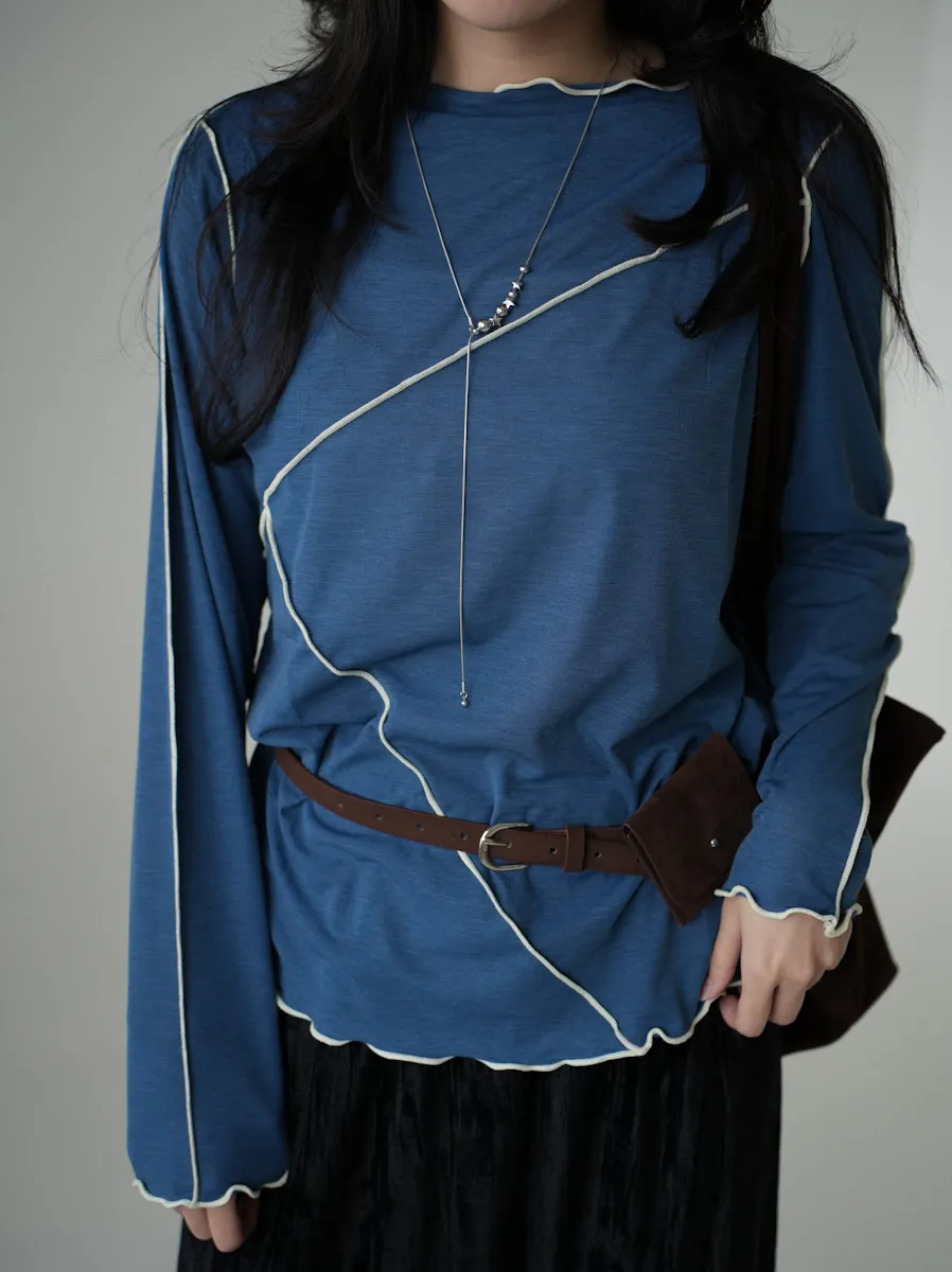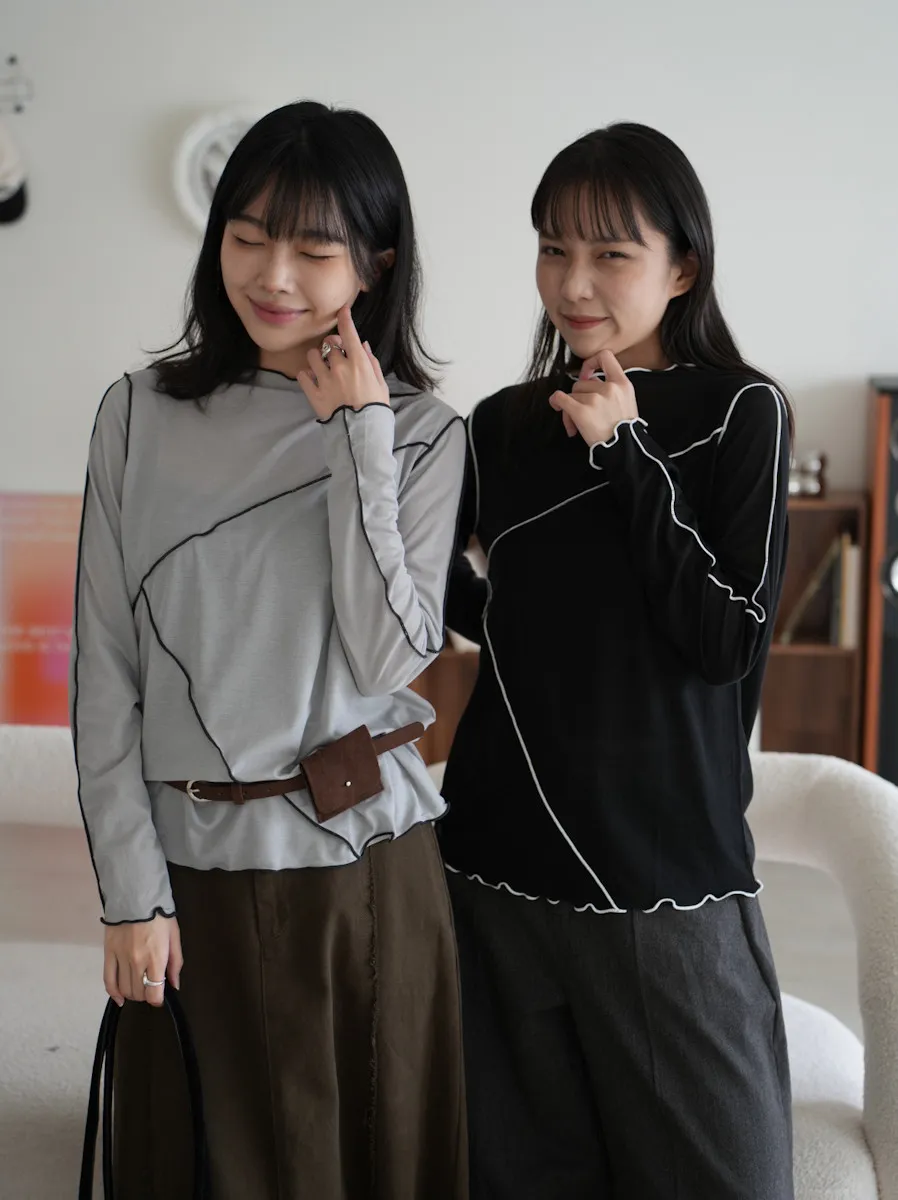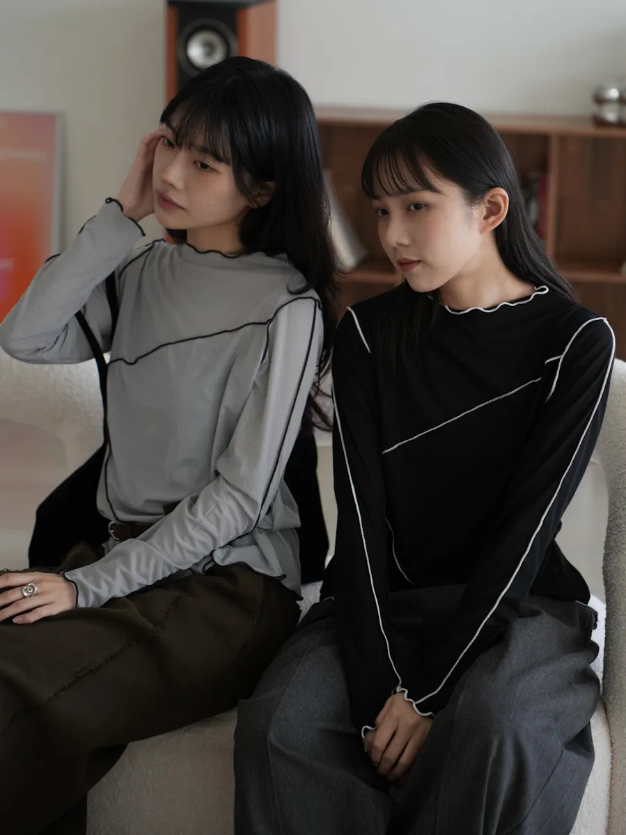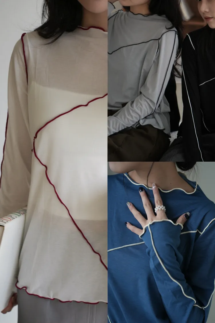 日韓同時獲得 斜線滾邊打底上衣 4color