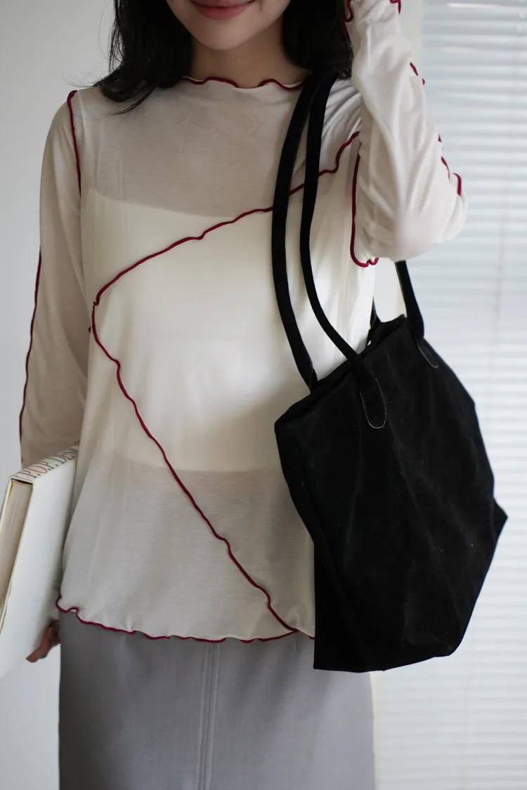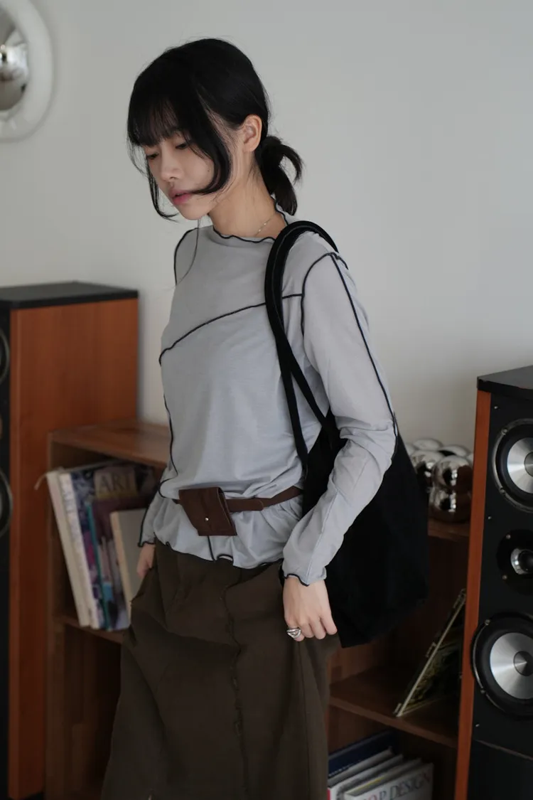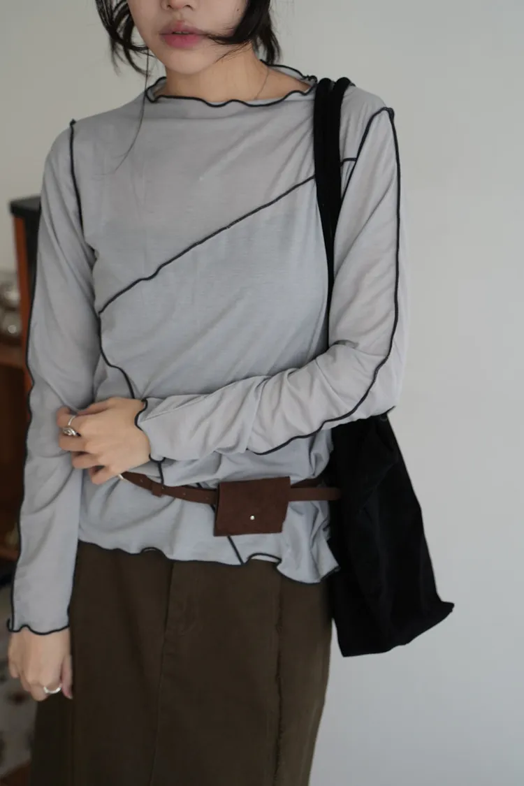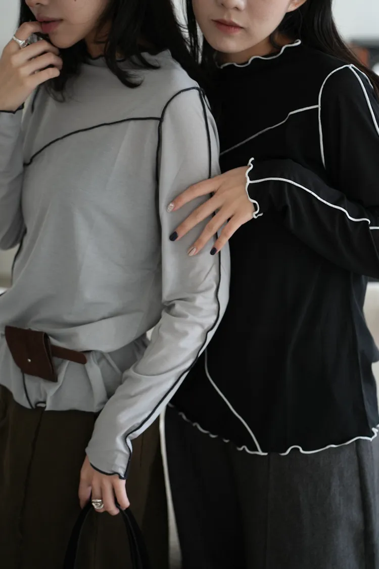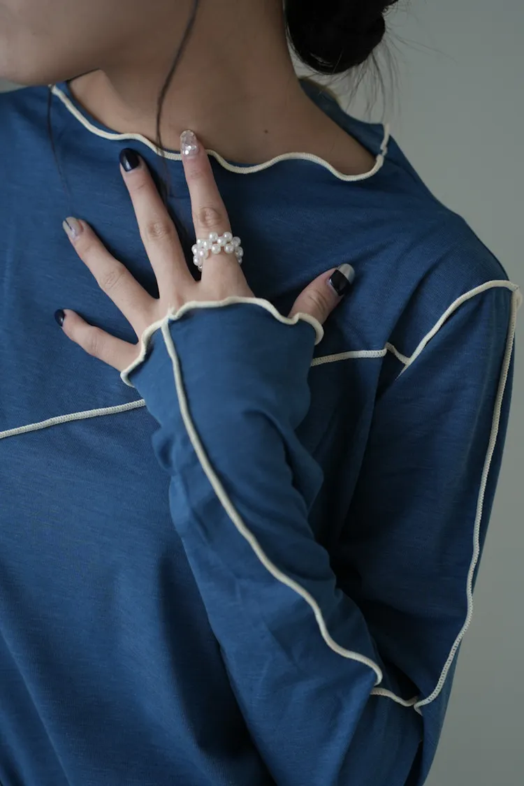 日韓同時獲得 斜線滾邊打底上衣 4color